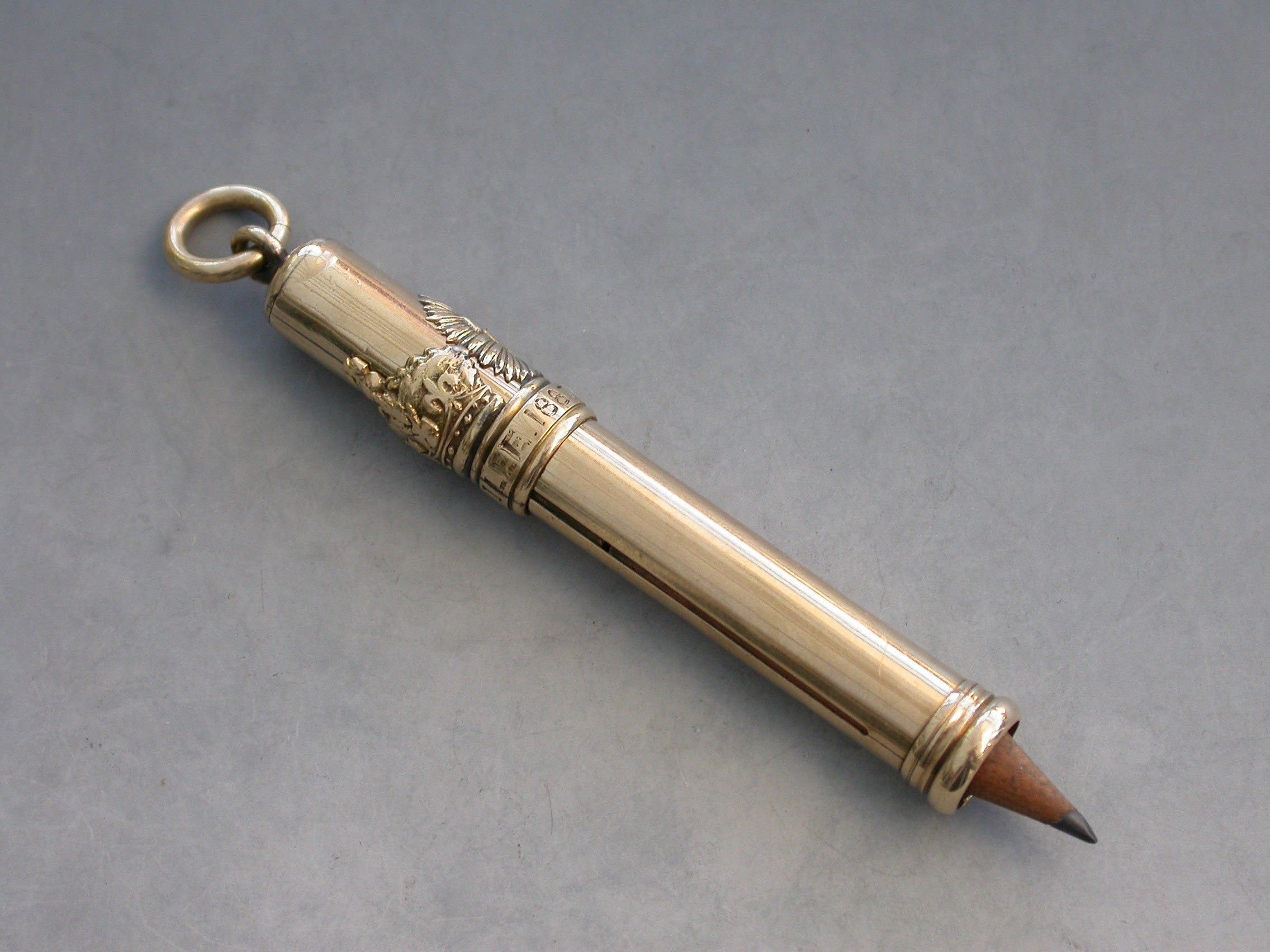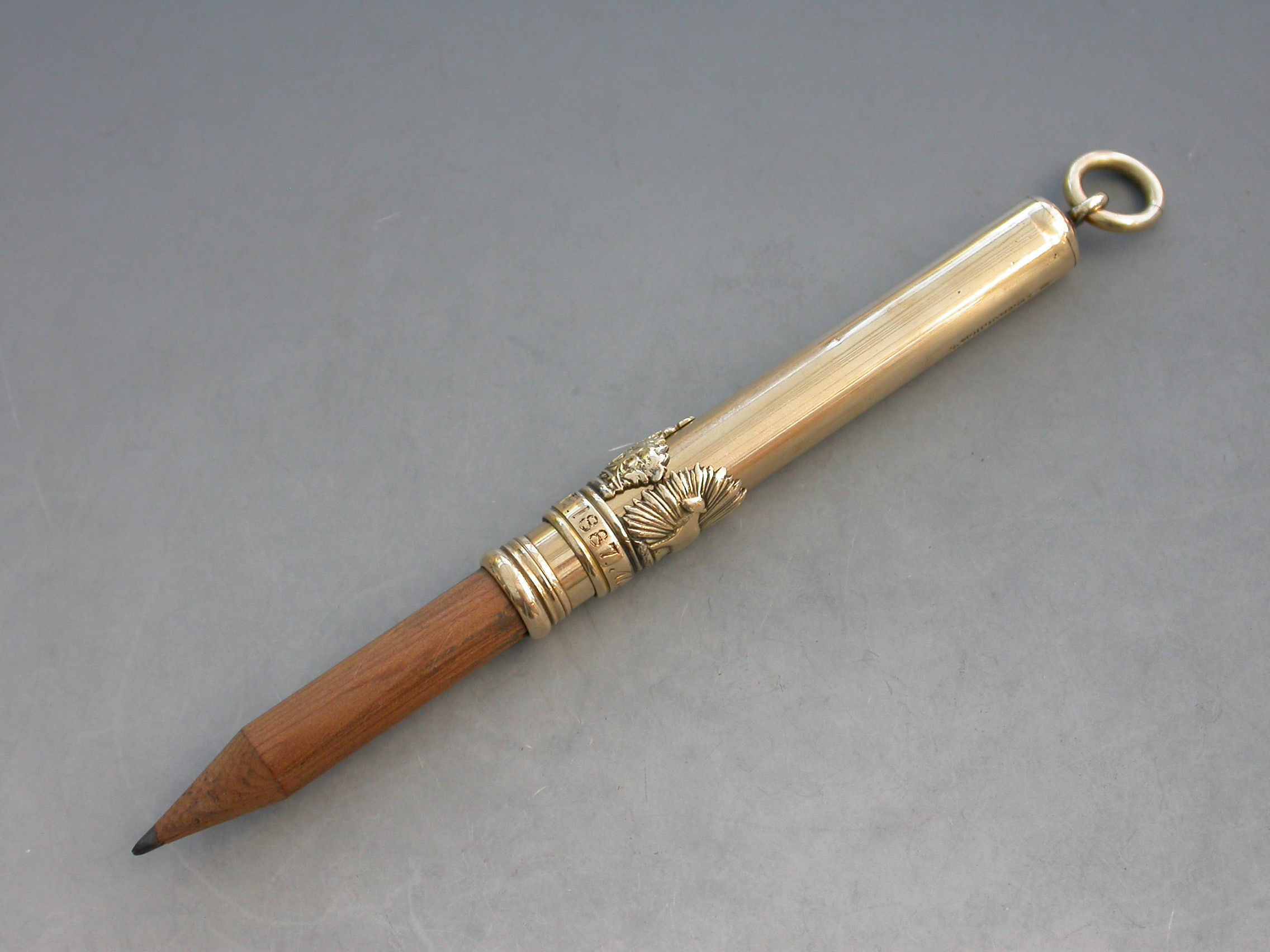 10 carat Gold Sliding Cedar Pencil Holder Queen Victoria Golden Jubilee & Merchant Taylors Company Interest