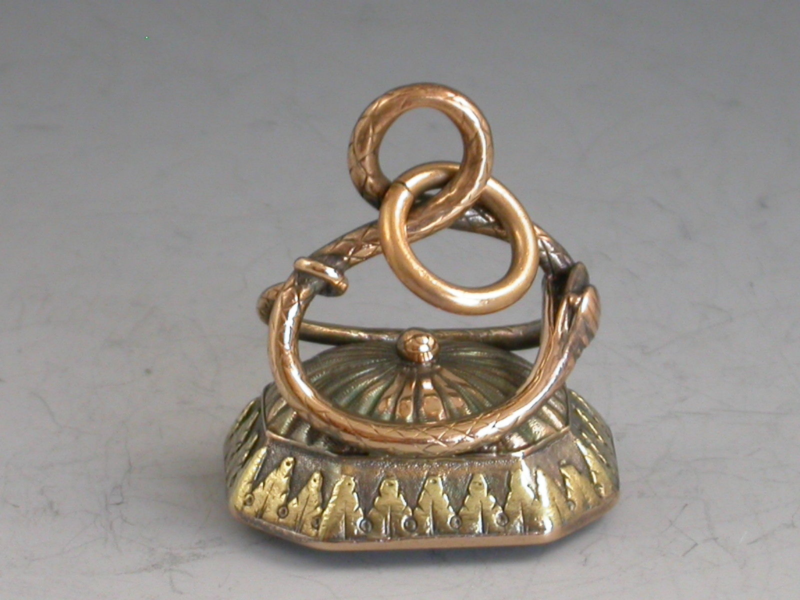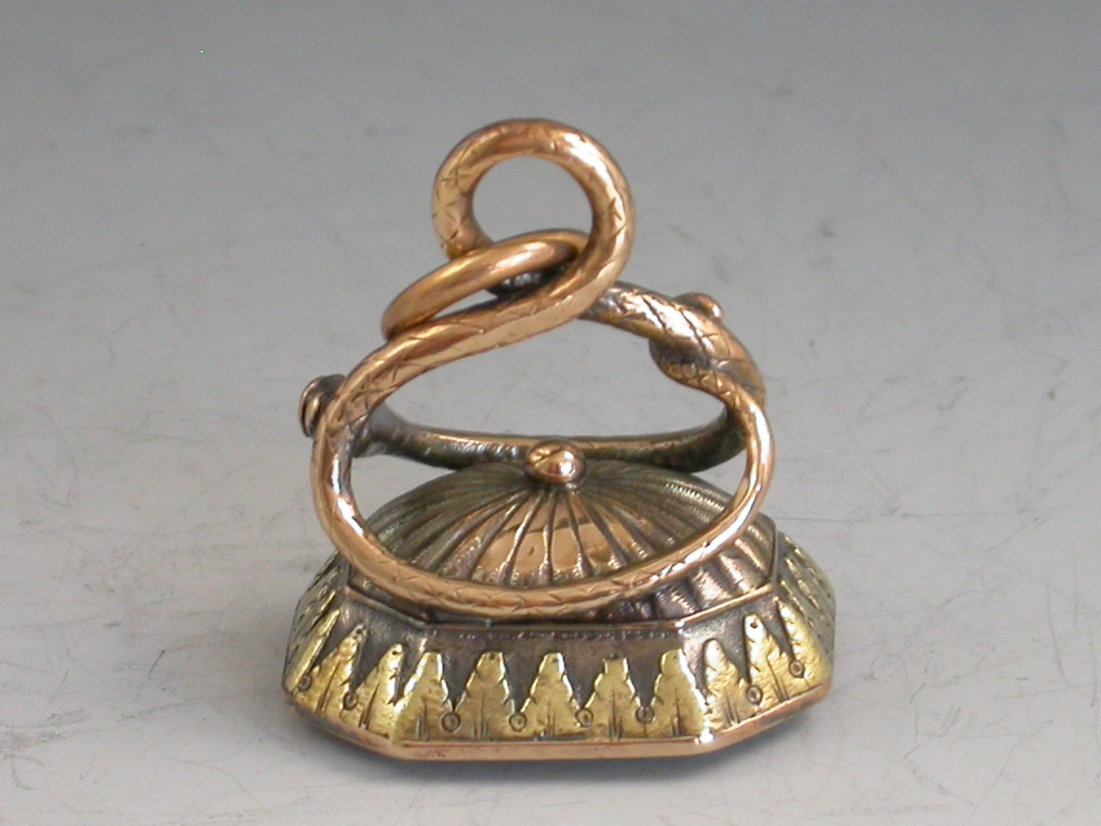 19th Century 2 Colour Gold Armorial Fob Seal 'Snake' Arms of Tremayne
