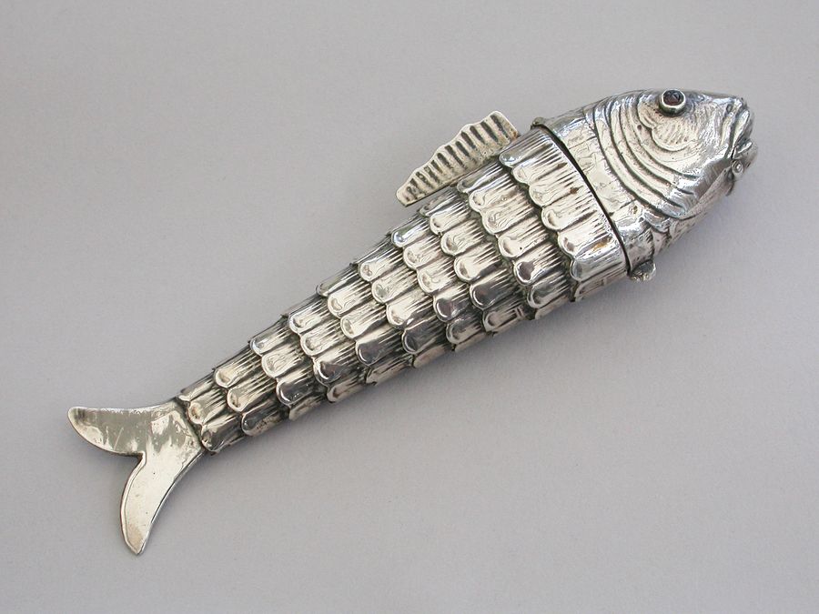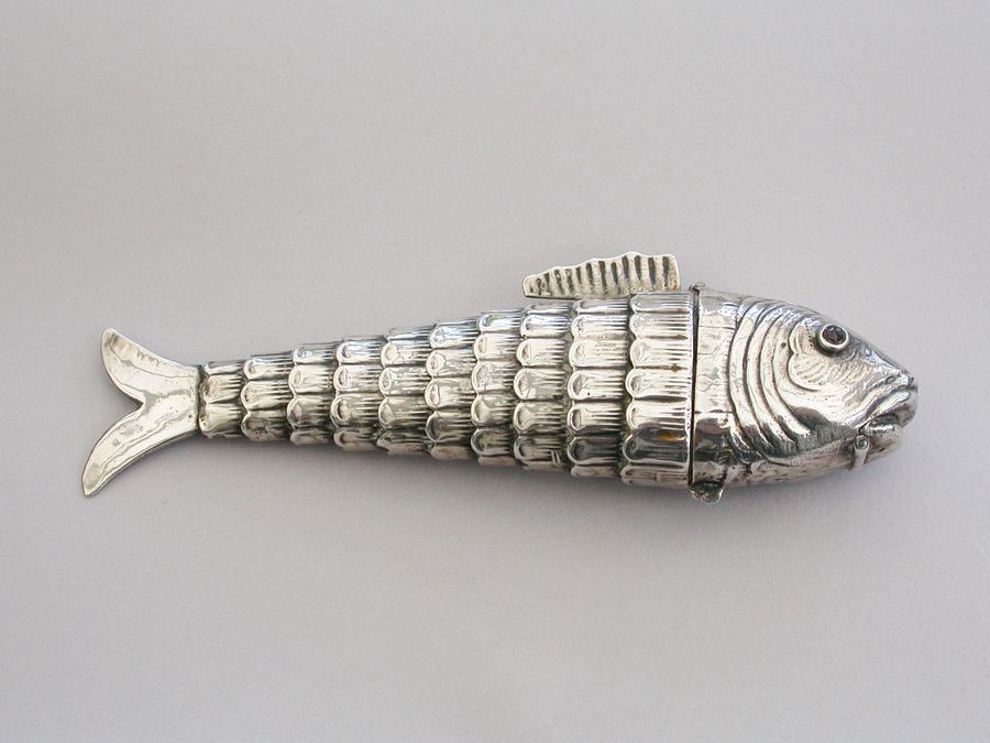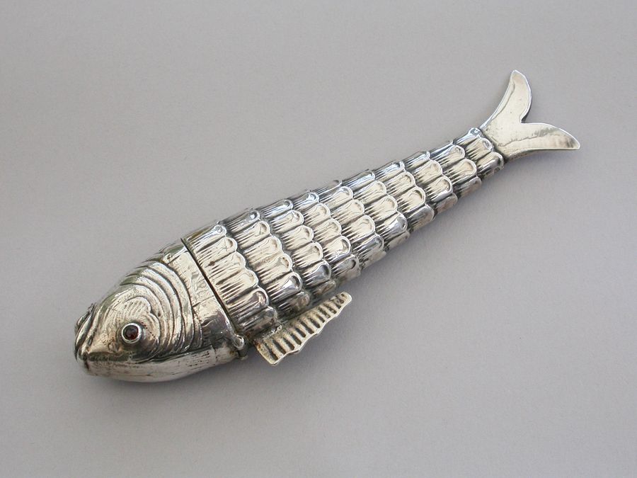 19th Century Imported German Novelty Silver Articulated Fish Spice Box