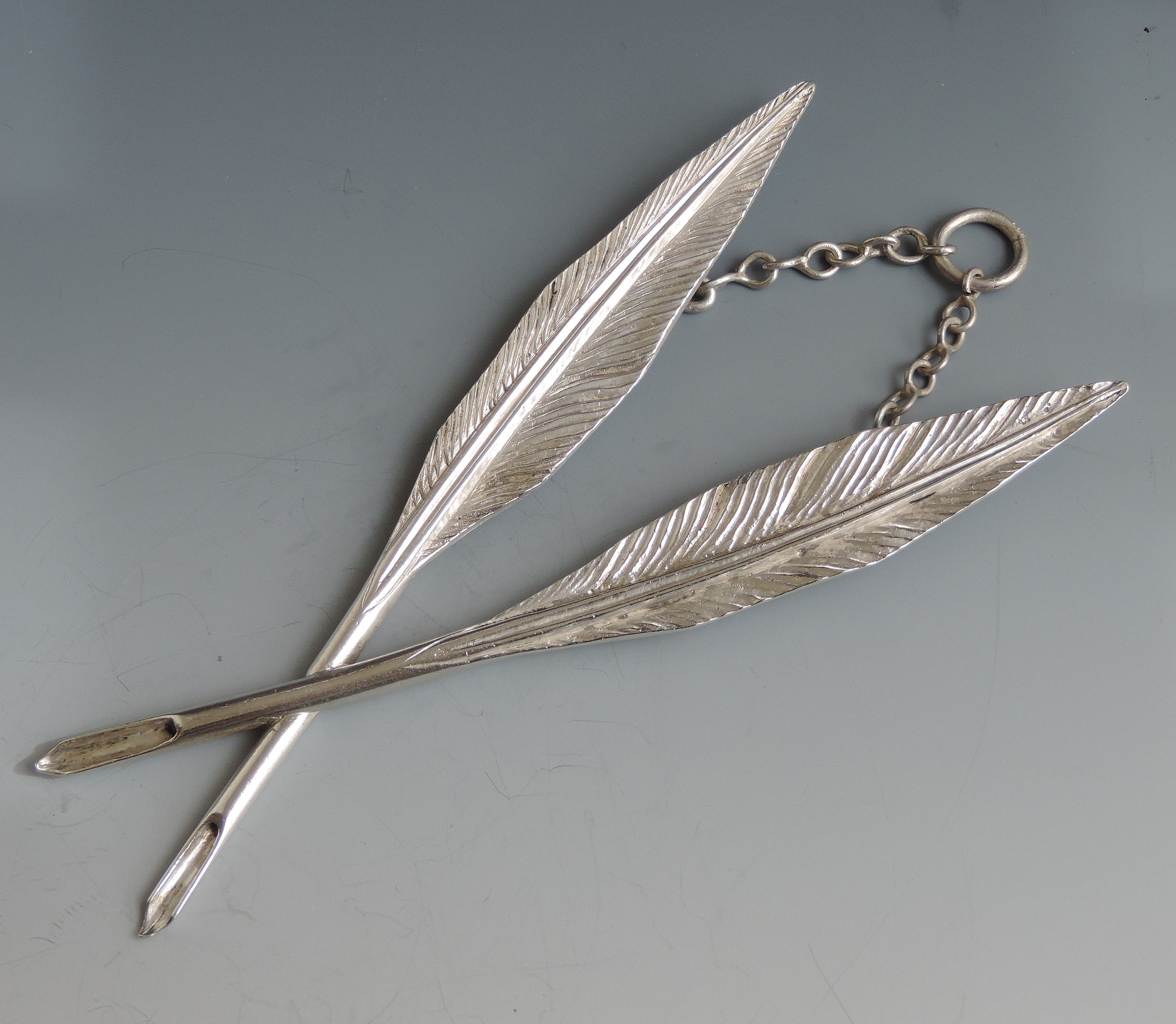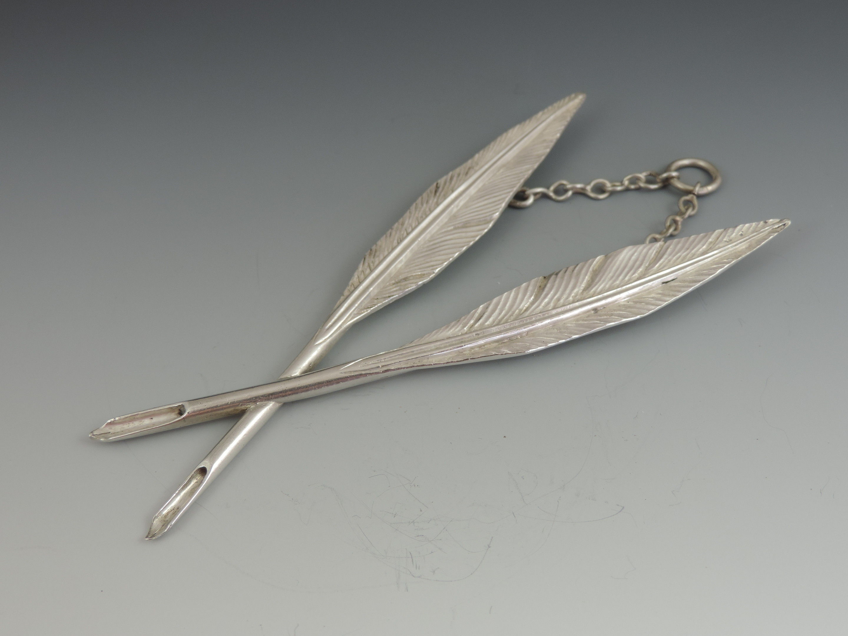 19th Century Masonic Silver Crossed Quills Secretaries Jewel