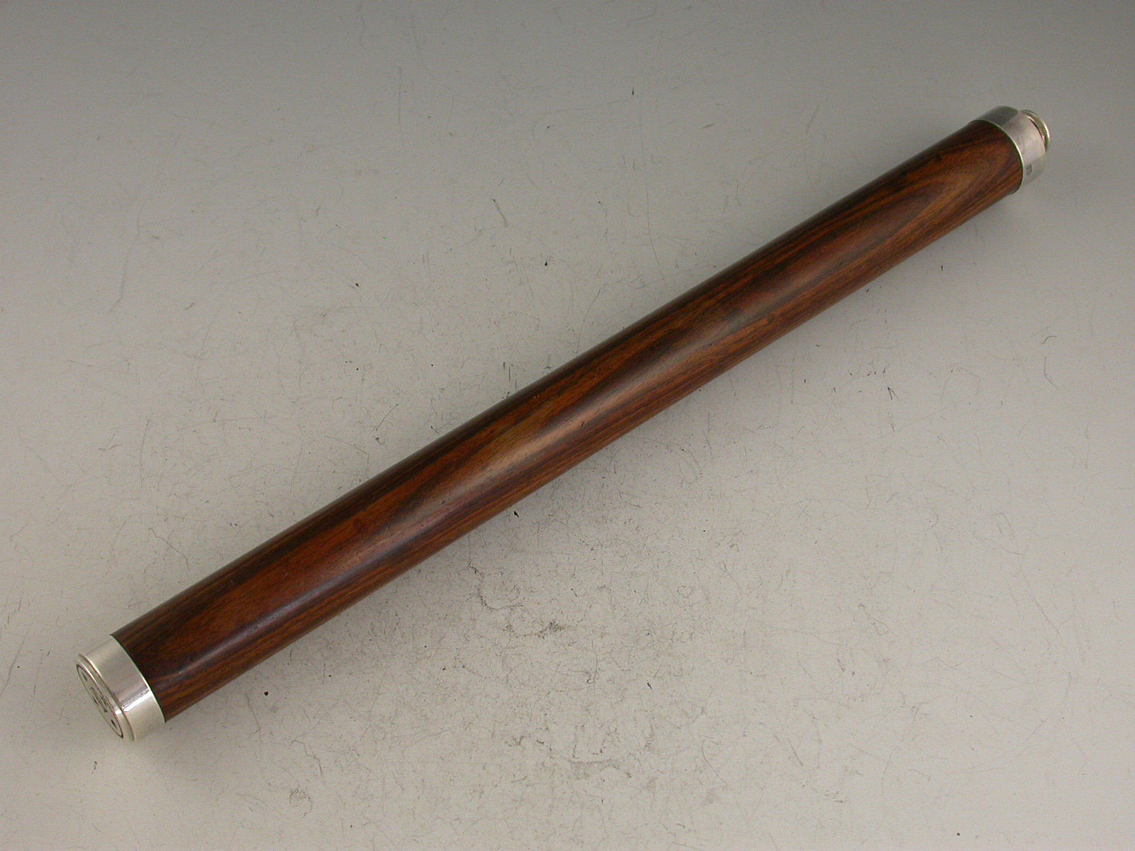 An unusual 19th century silver mounted Lignum Vitae Ruler, mounted on one end with a Seal and on the other end with a collar and a pull out Propelling Pencil.