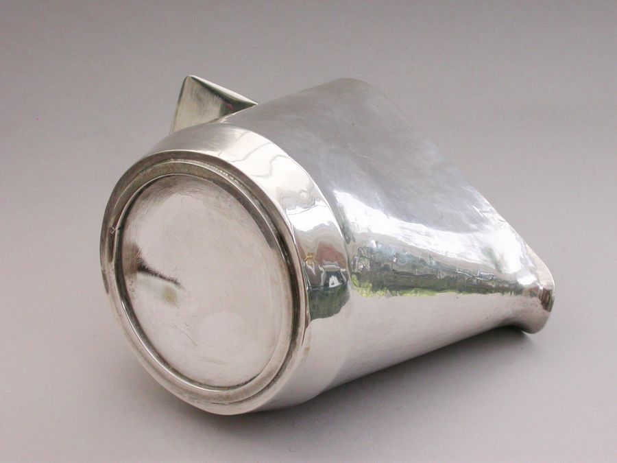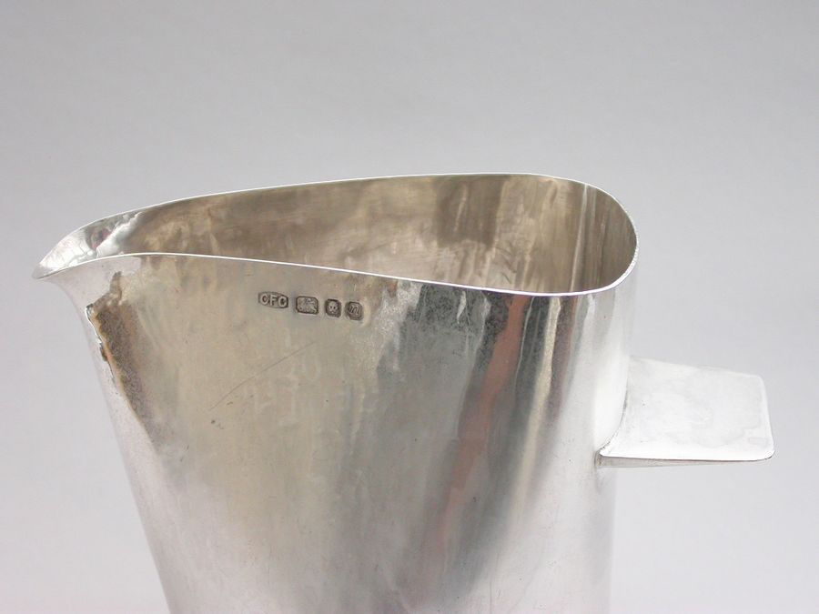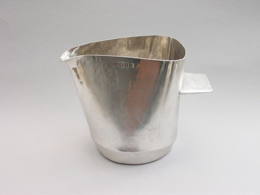 A 20th Century Post War hammered Silver Jug with tab handle and plain base rim.