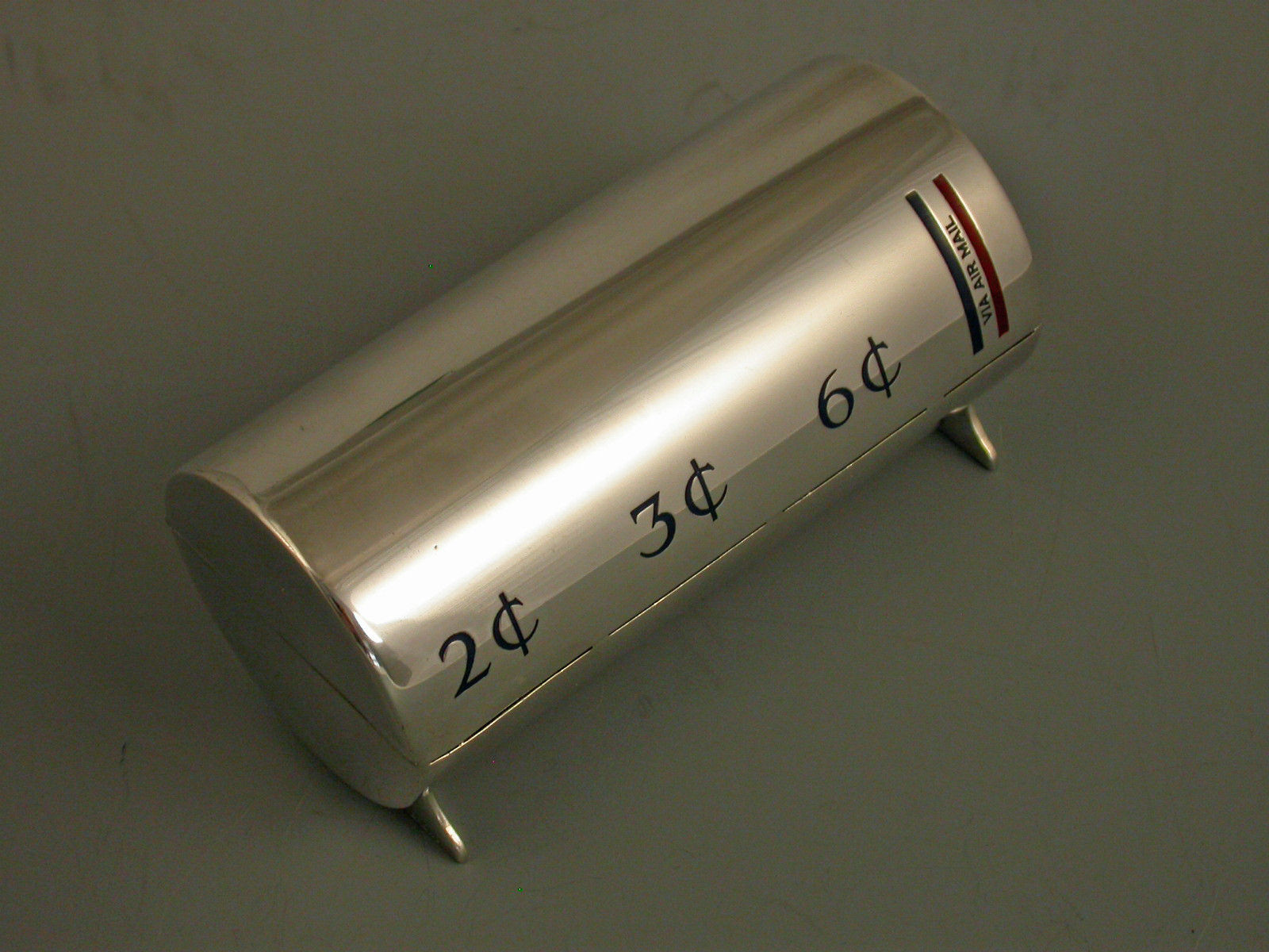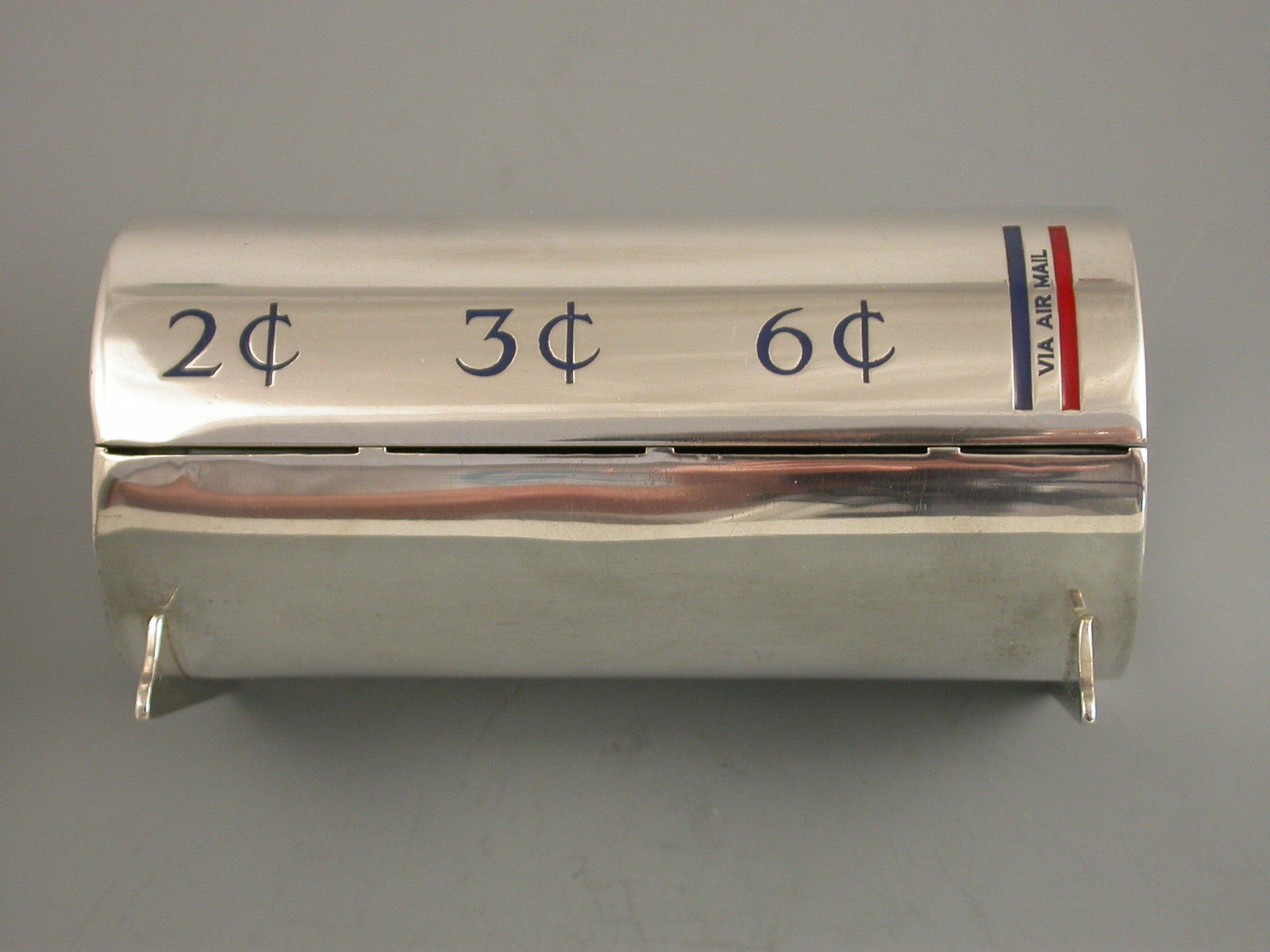 American Sterling Silver & Enamel 4 Compartment Stamp Roll Dispenser 'Airmail'