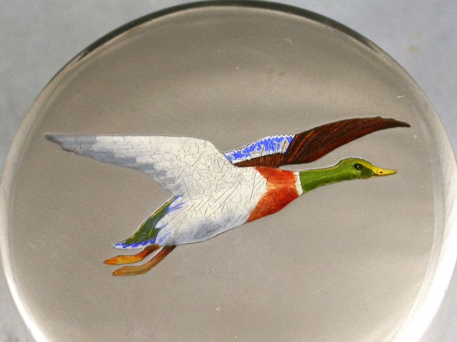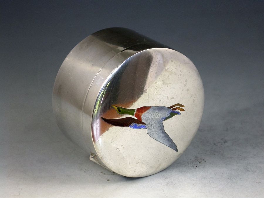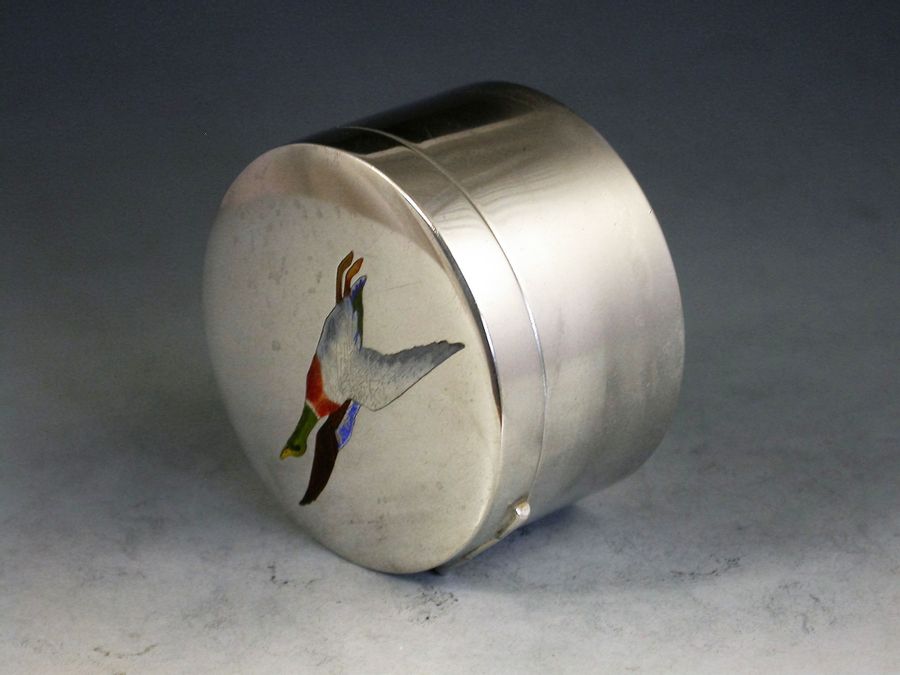 American Sterling Silver & Enamel 'Mallard' Stamp Box