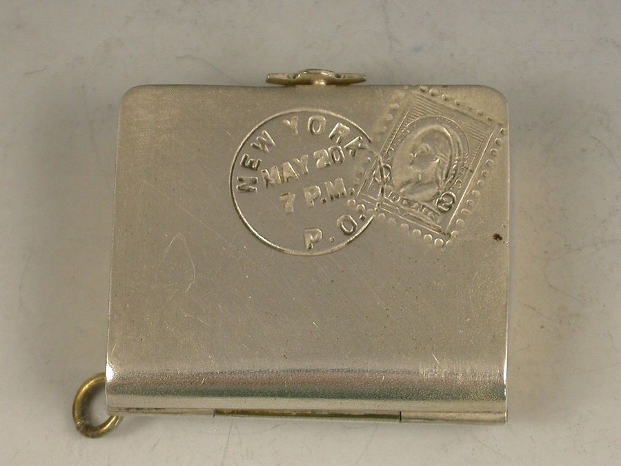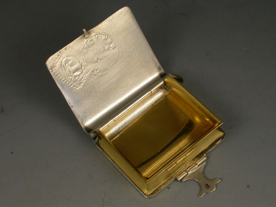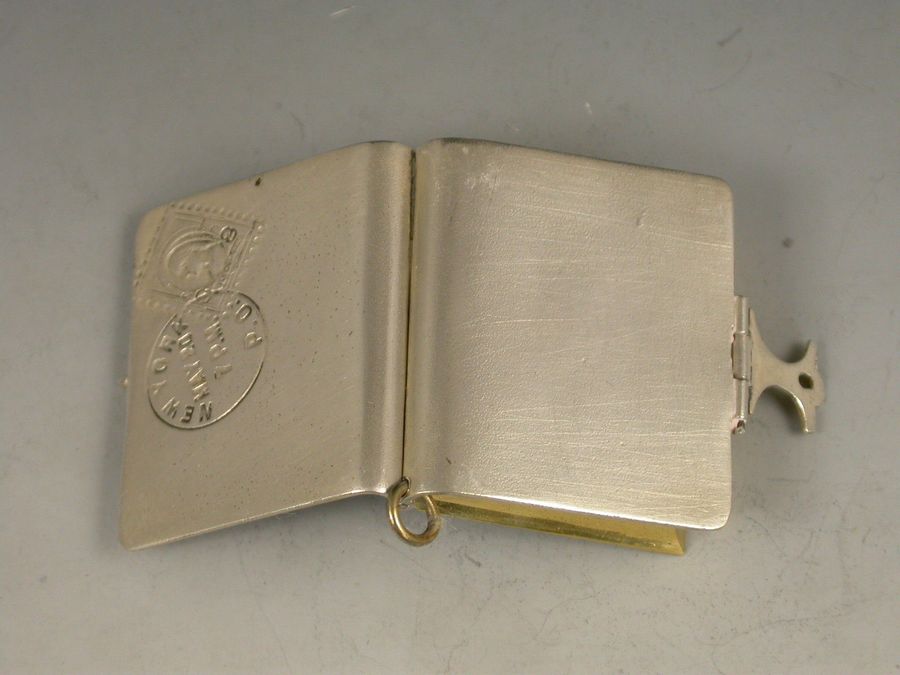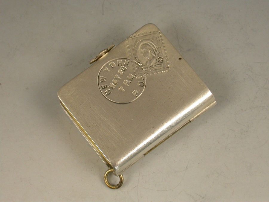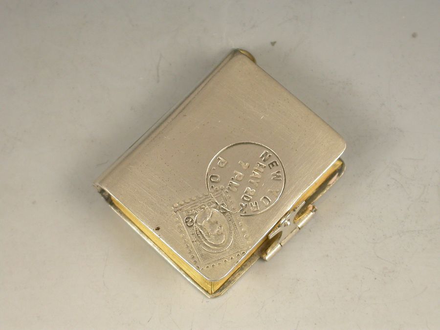 Antique American Novelty Silver Plated Book Form Stamp Case