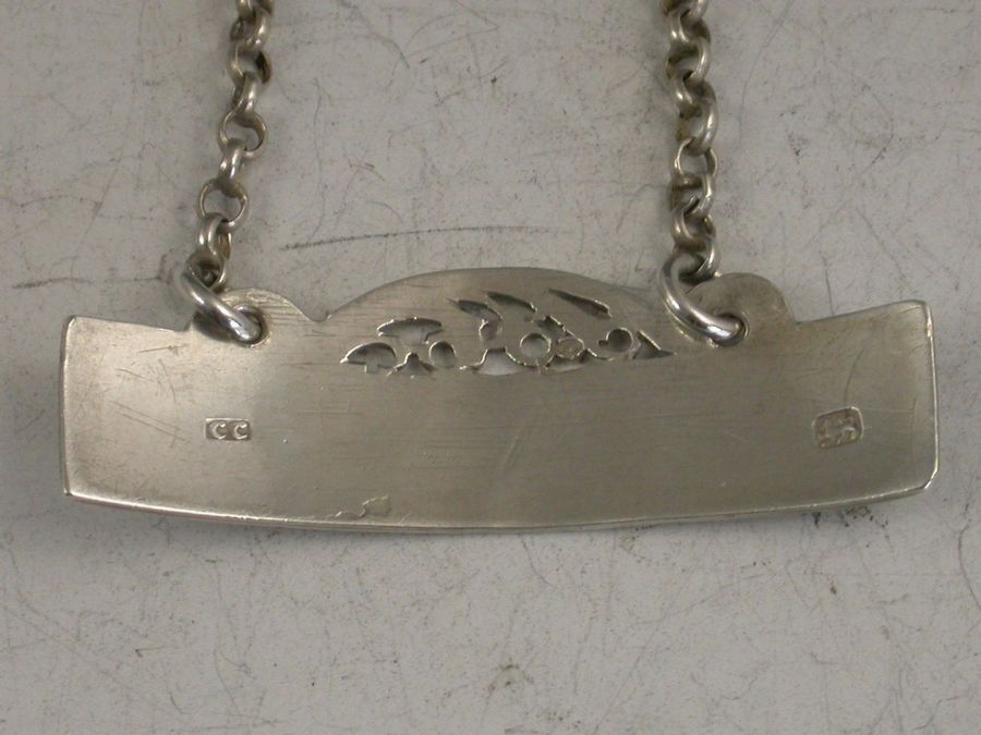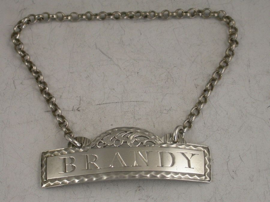 Antique Silver Fret Domed Wine Label 'Brandy' Double Lion Passant Mark