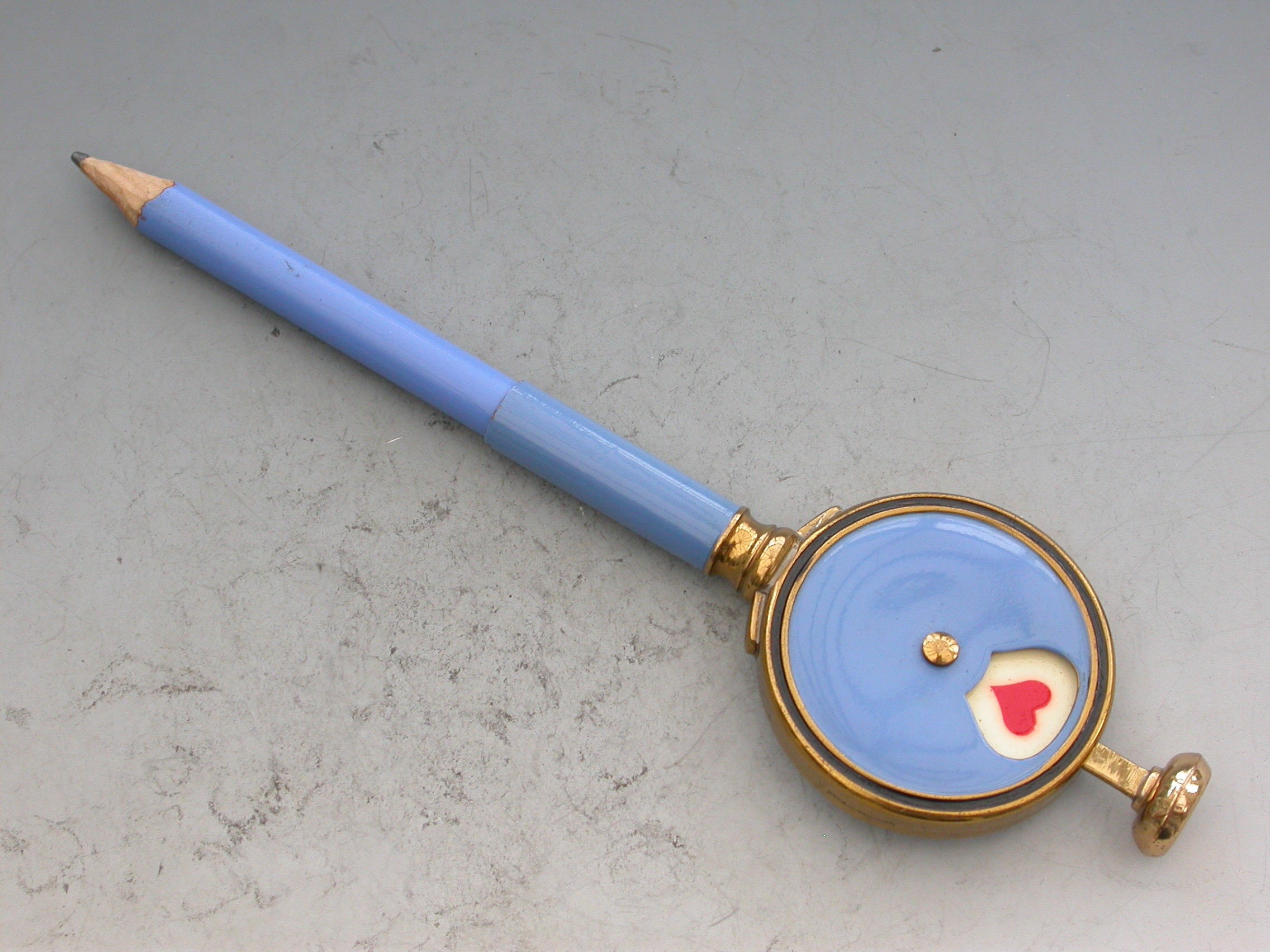 Art Deco Gilt Metal & Sky Blue Enamel Trumps Marker / Pencil