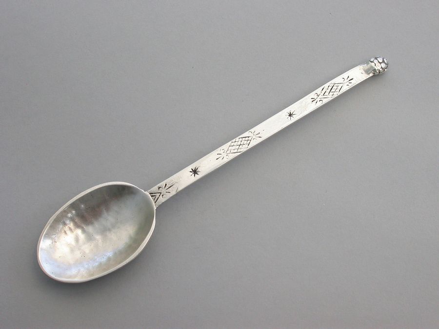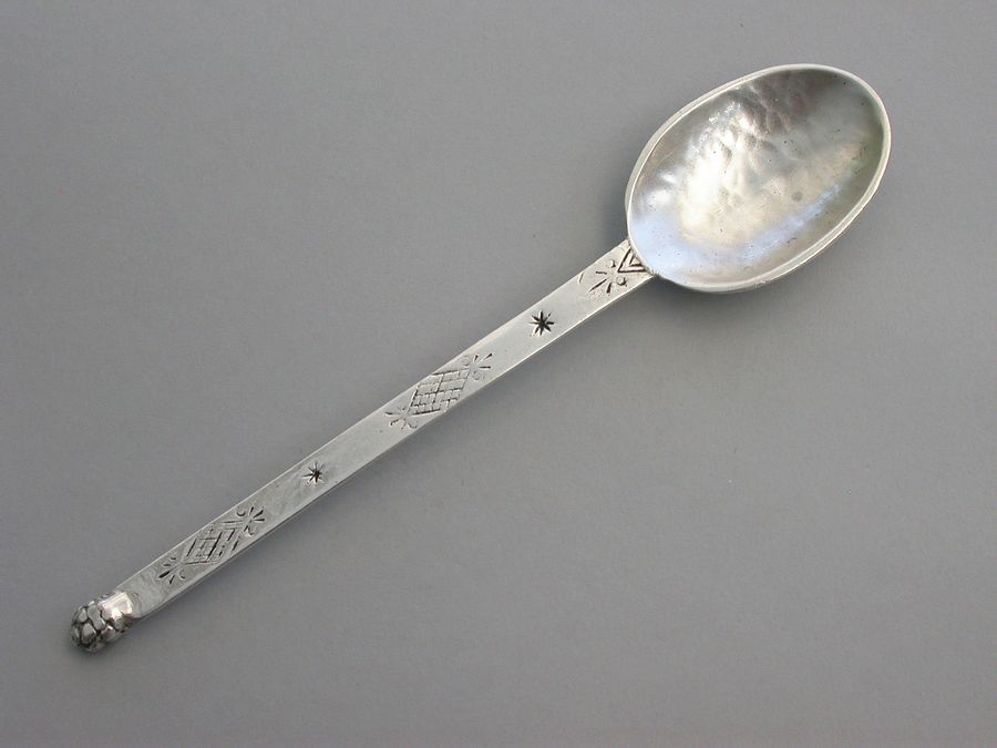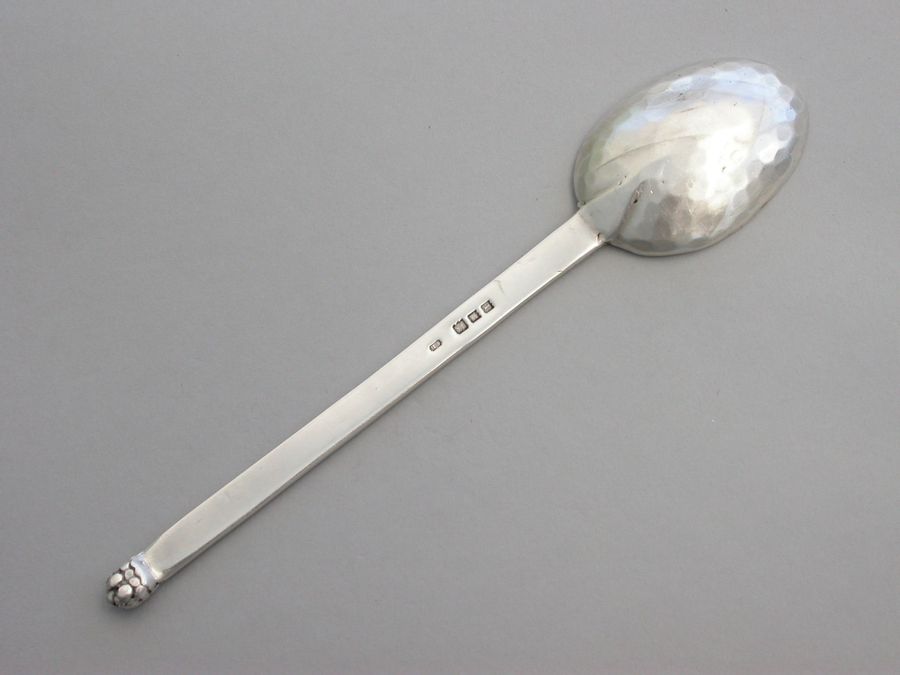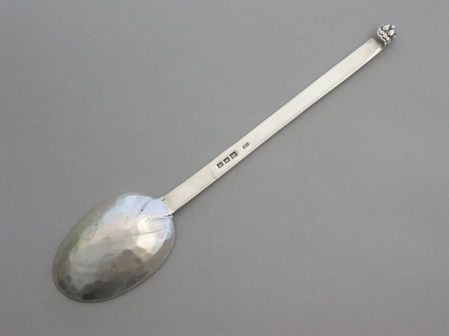 A rare Arts & Crafts hammered silver Spoon, the flat handle chased with Celtic motifs.