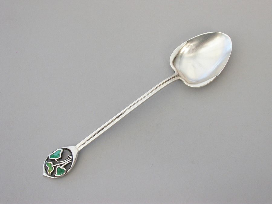 Arts & Crafts Silver & Enamel Teaspoon - Archibald Knox CYMRIC