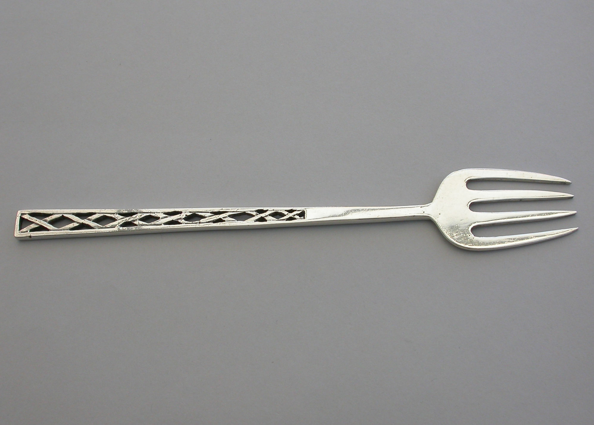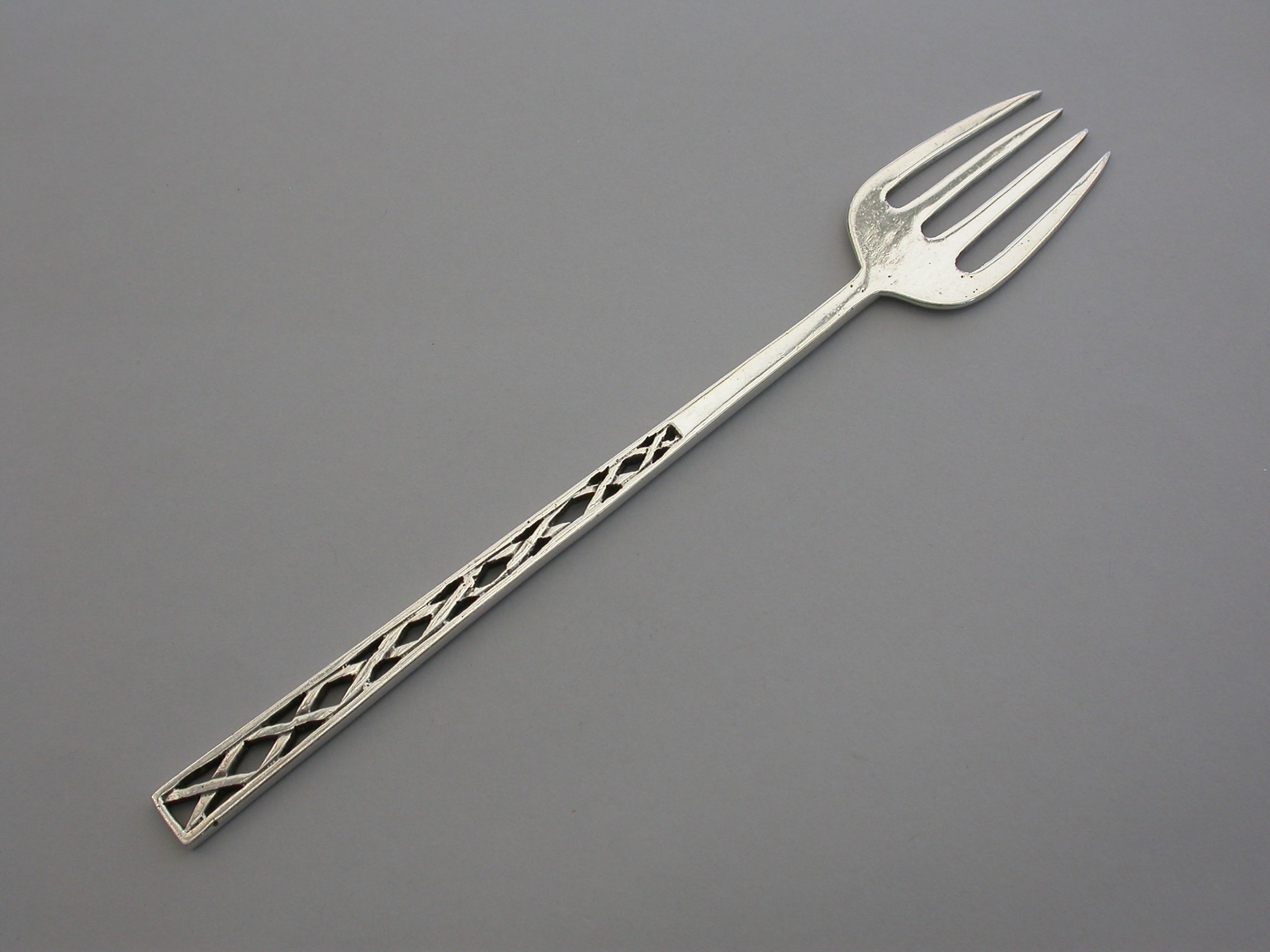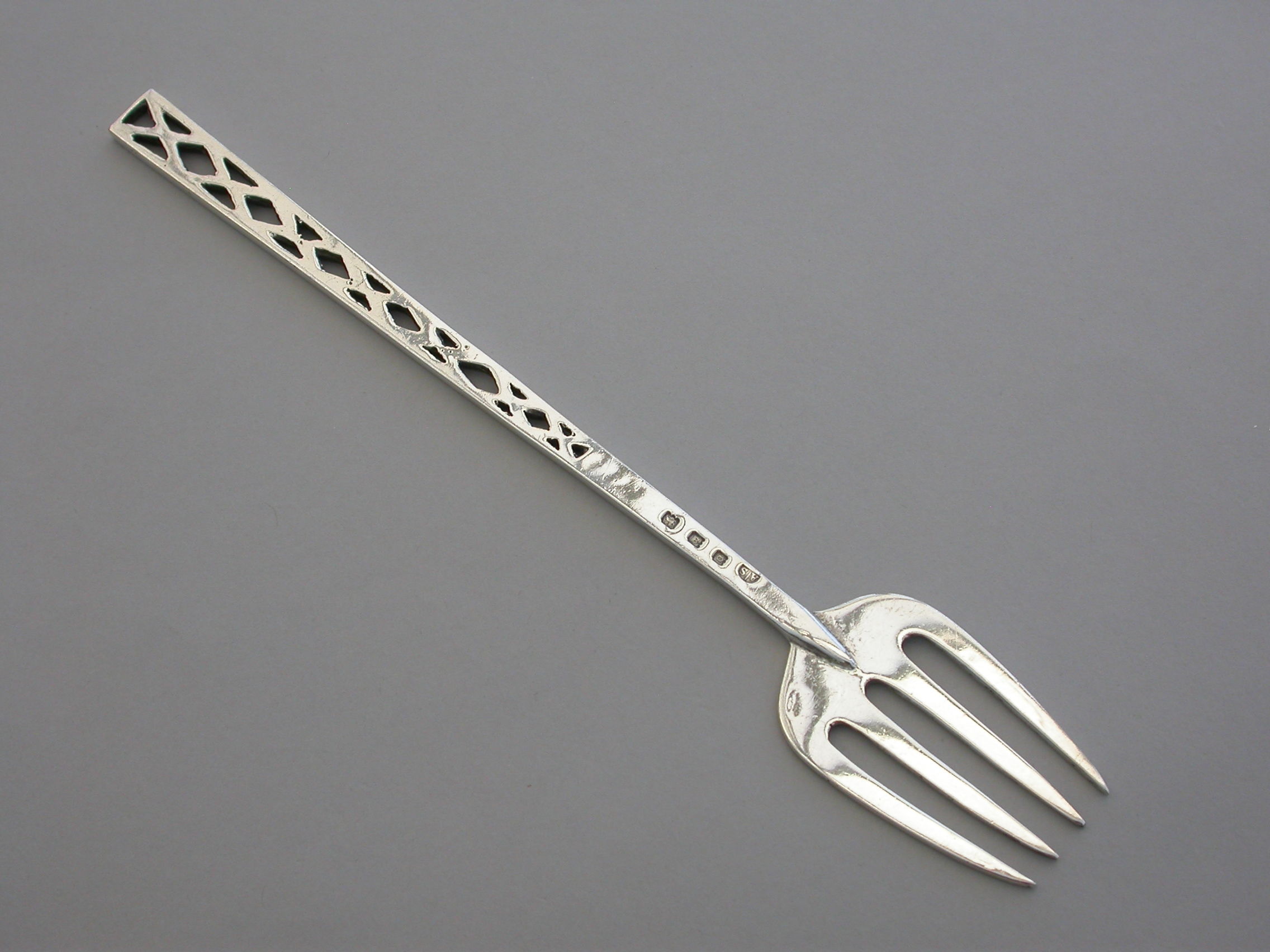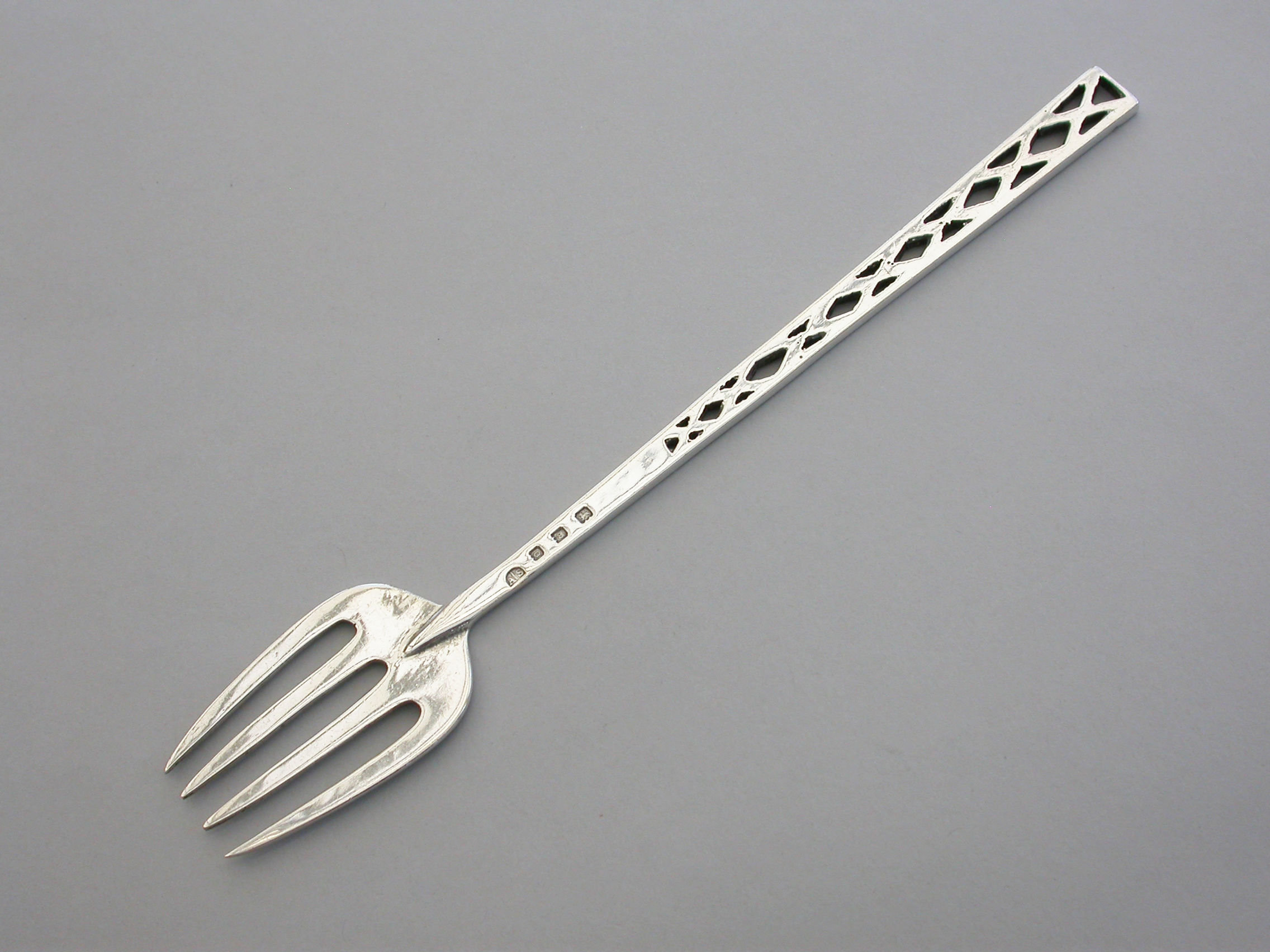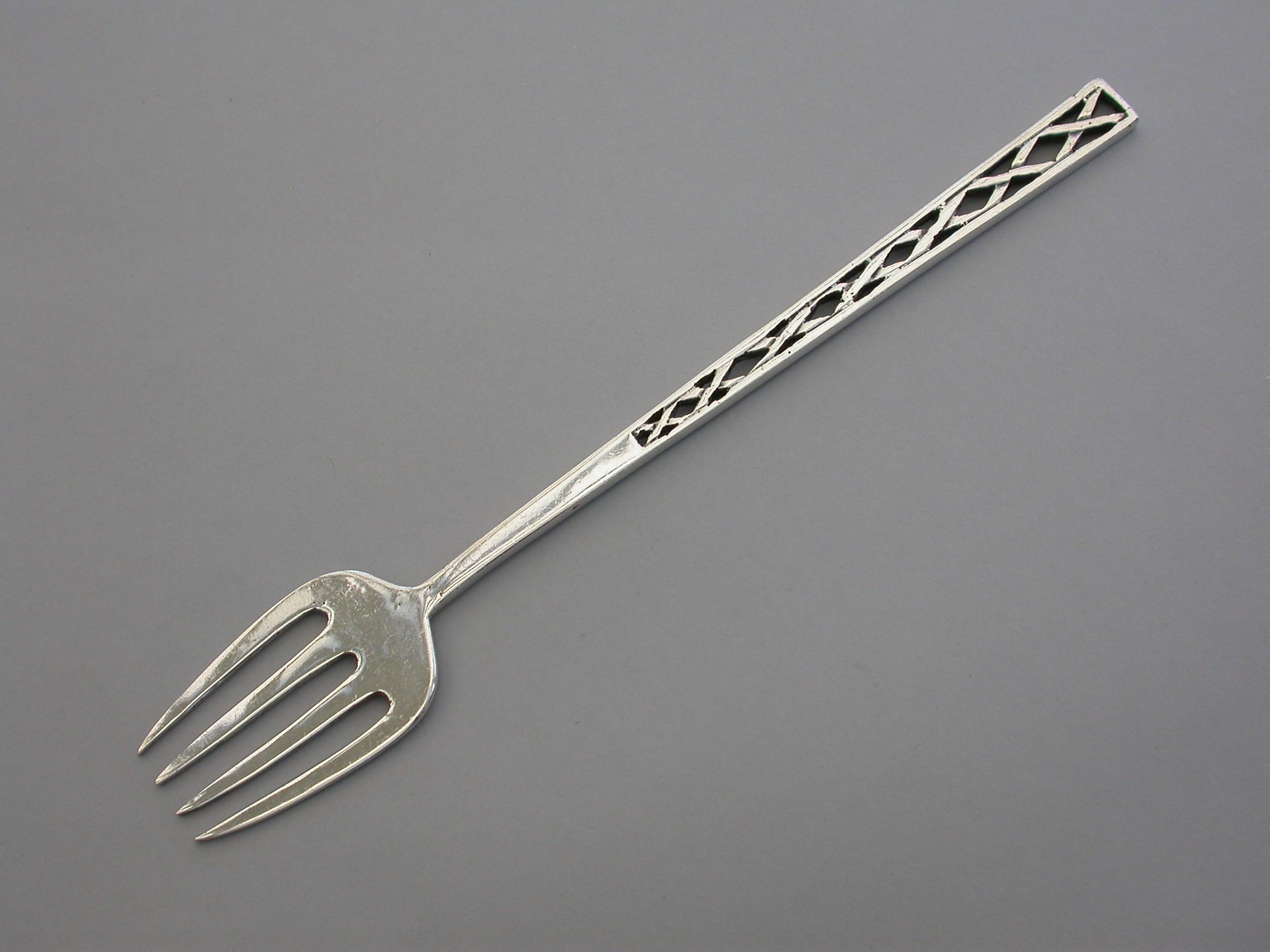 An early 20th century Arts and Crafts style silver Serving Fork with pierced handle.