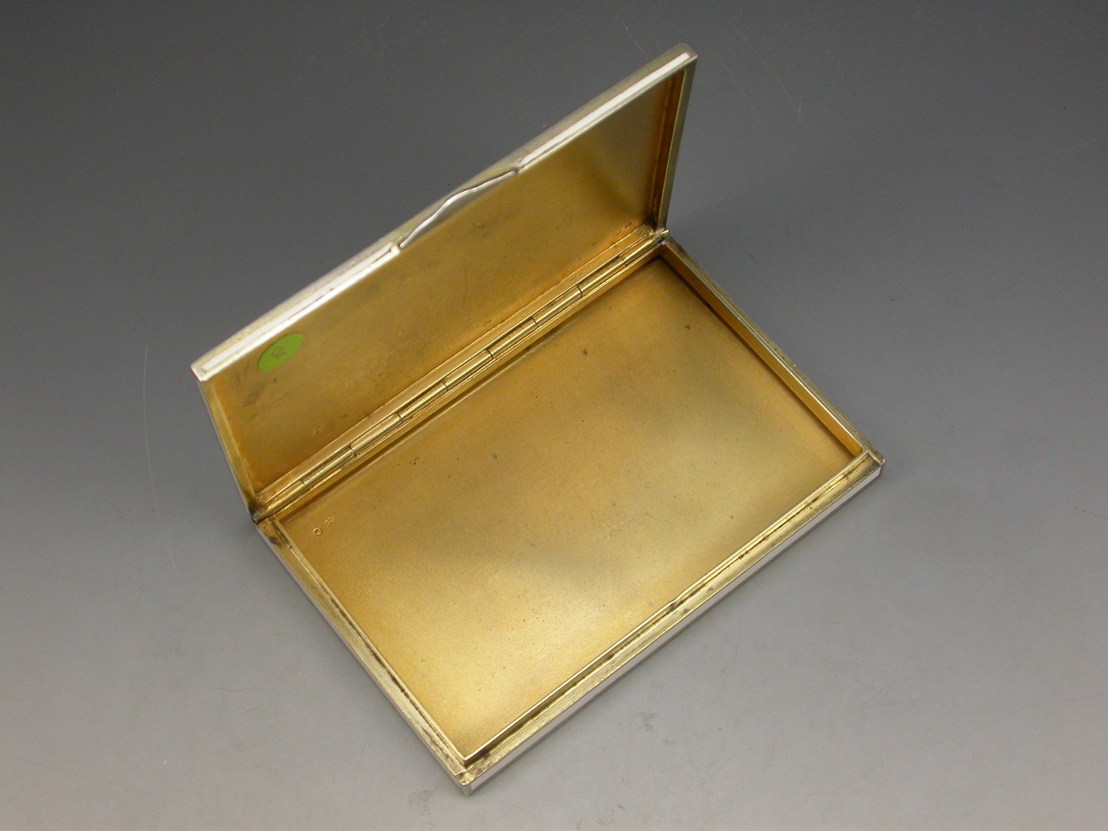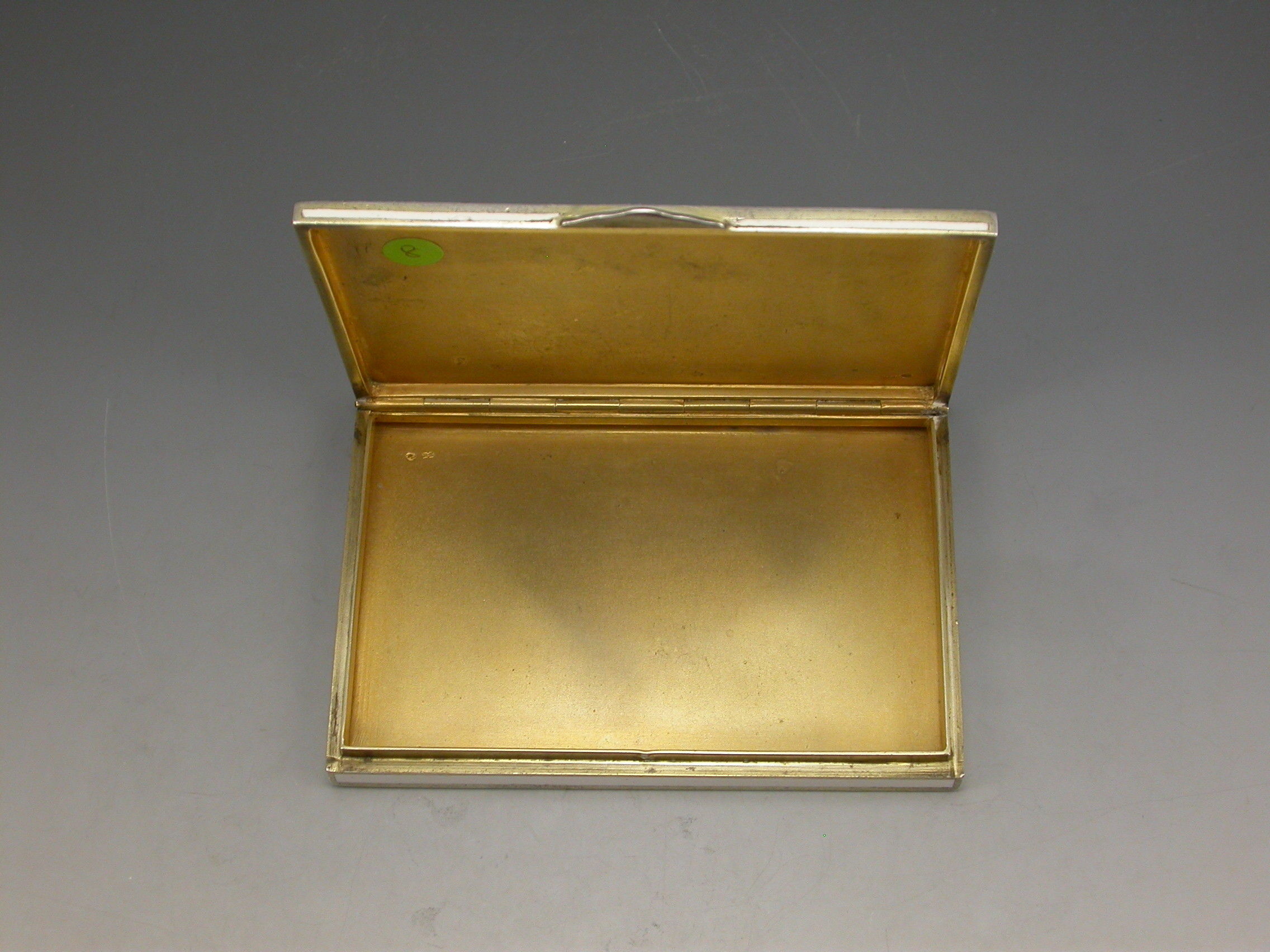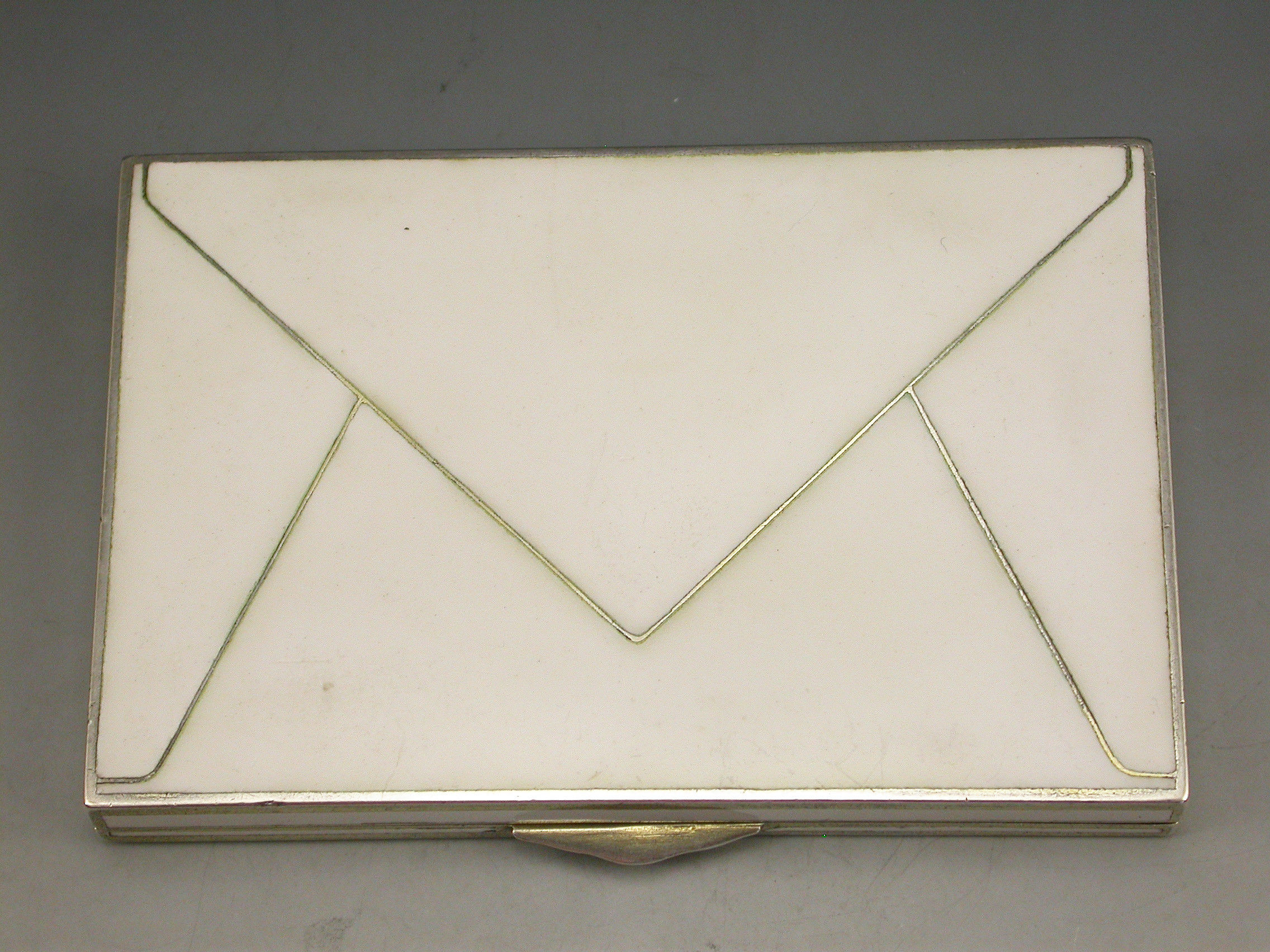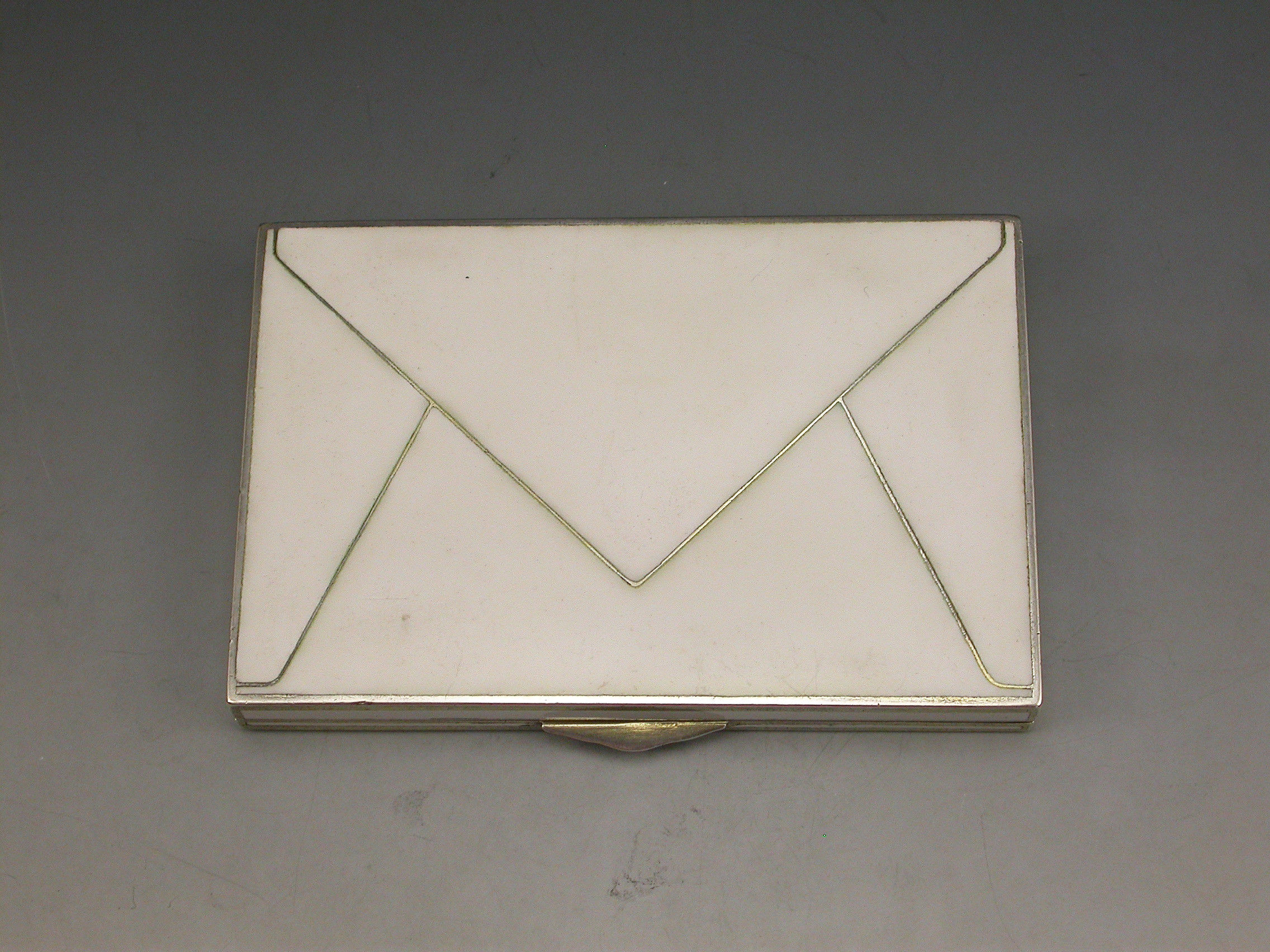 A very fine early 20th century Austrian silver and enamel Cigarette Case made in the form of an envelope with white enamel base and sides, the lid decorated with a classical scene depicting a lady with attendants and a baby, silver gilt interior.