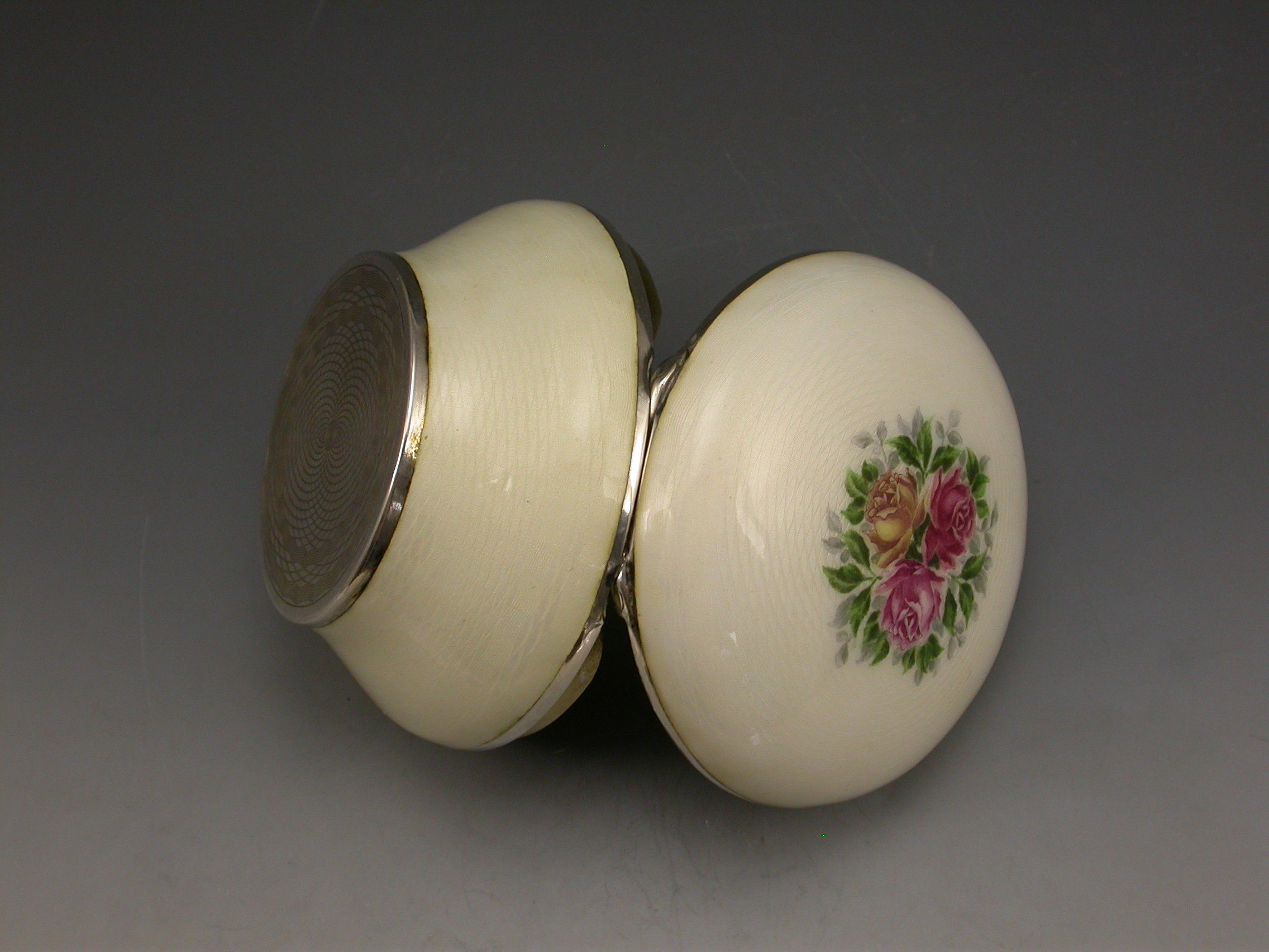 A good early 20th century Austrian silver and enamel Compact of circular form with hinged lid and silver gilt interior, the cover finely enamelled with a bunch of roses.