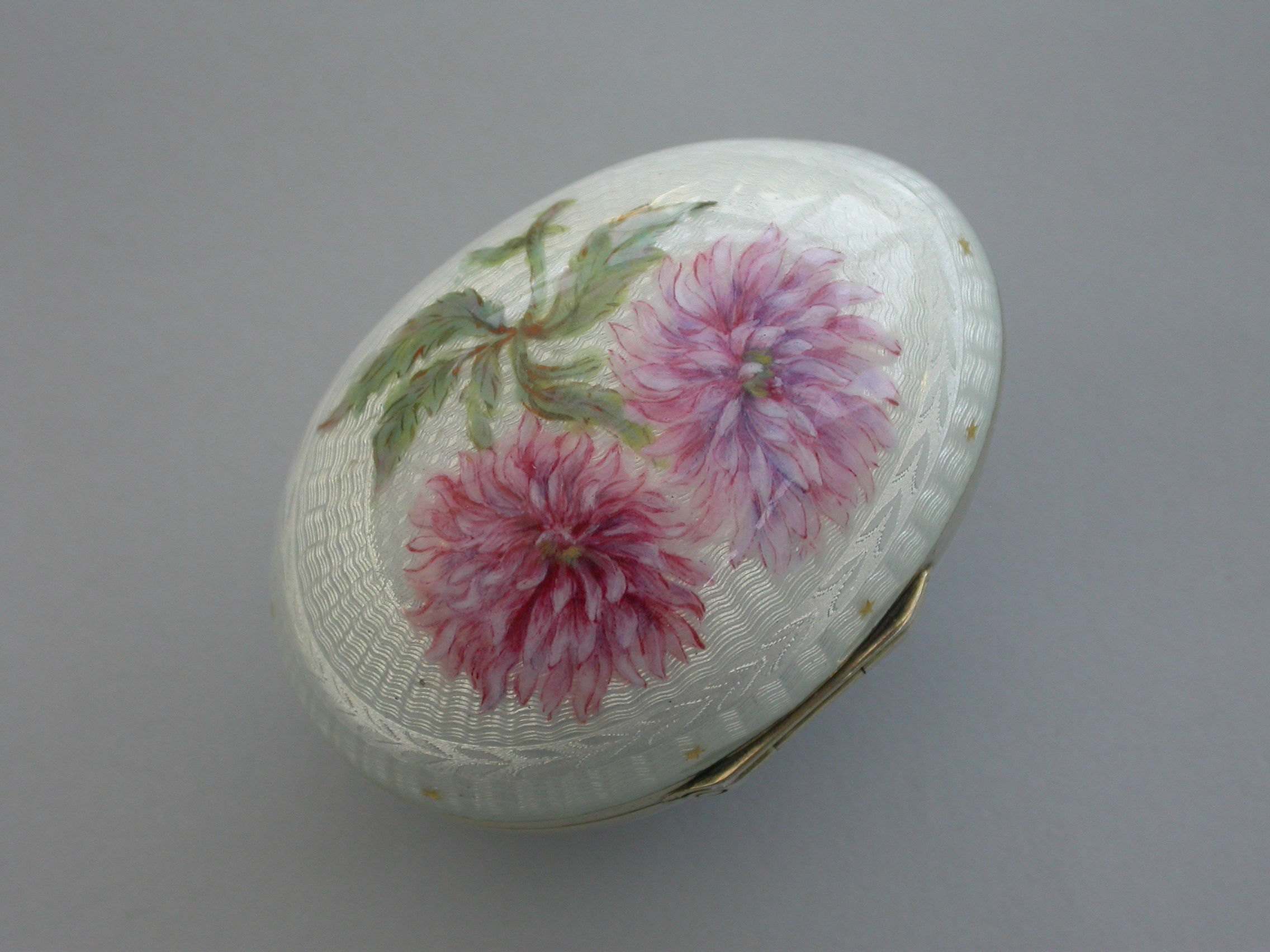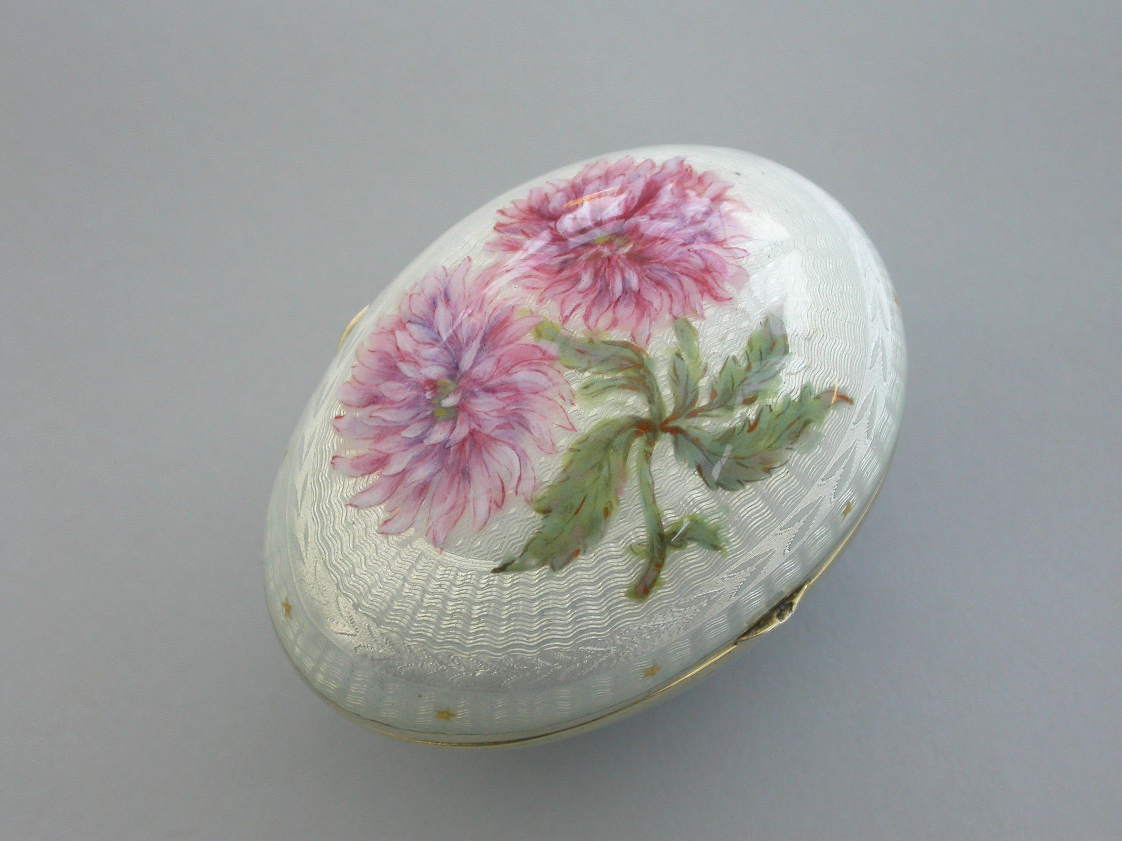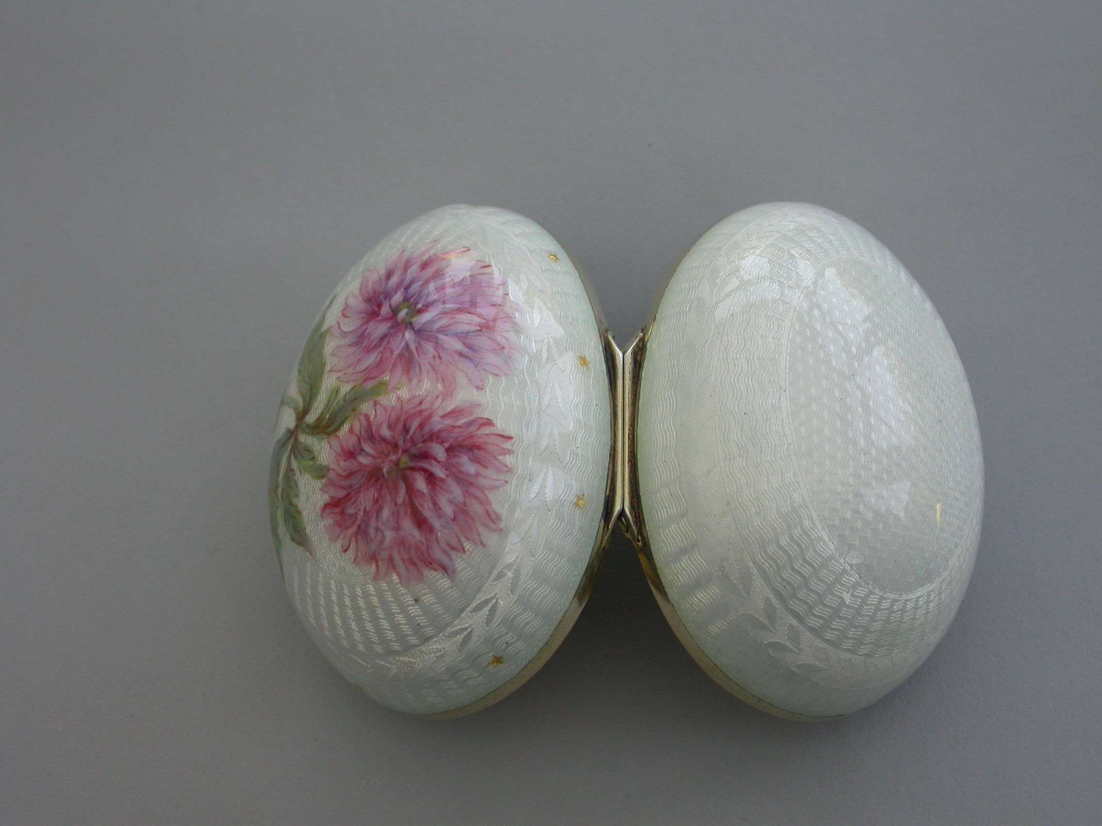 Austrian Silver & Guilloche Enamel Egg Shaped Box 'Peonies'