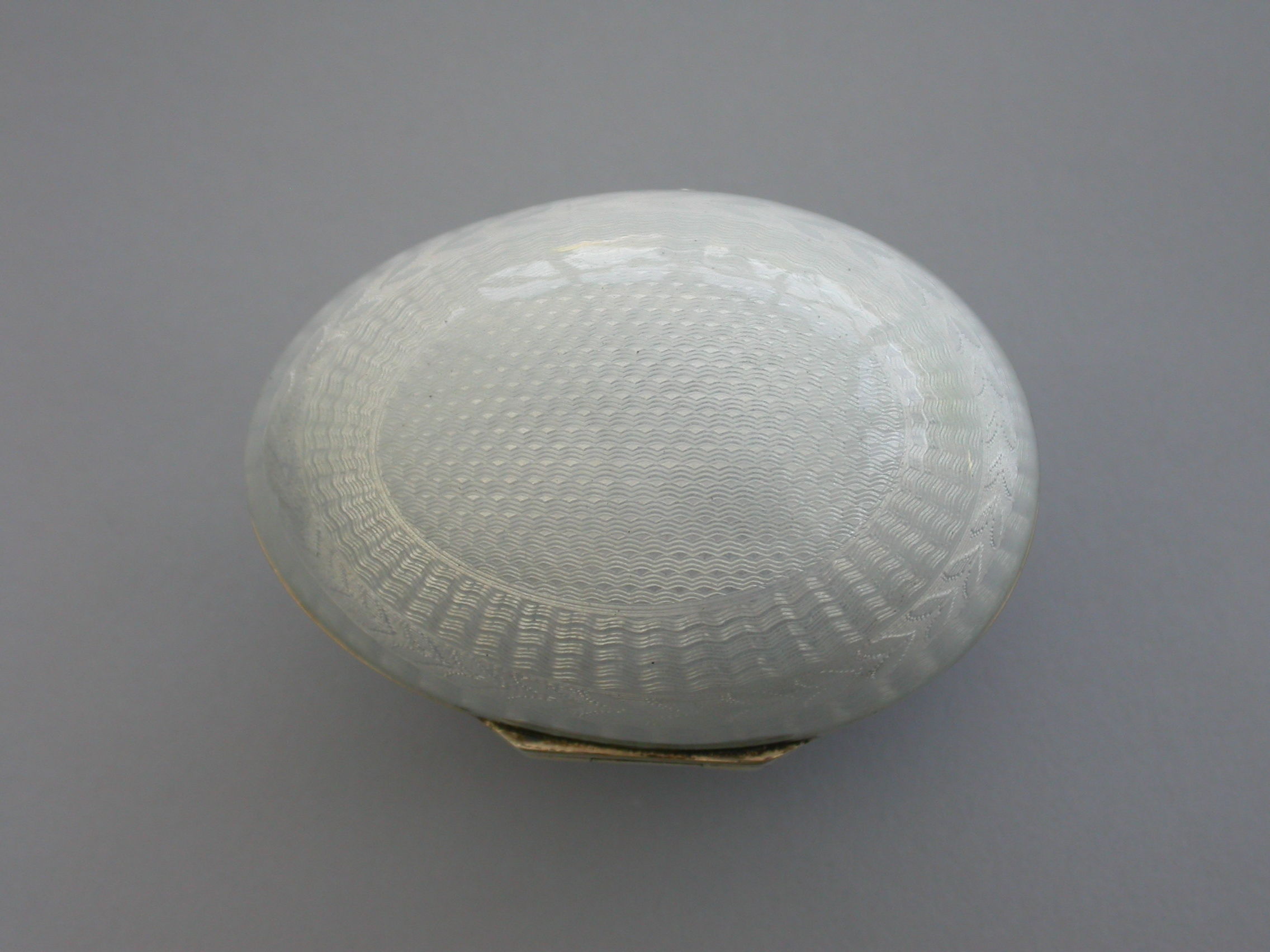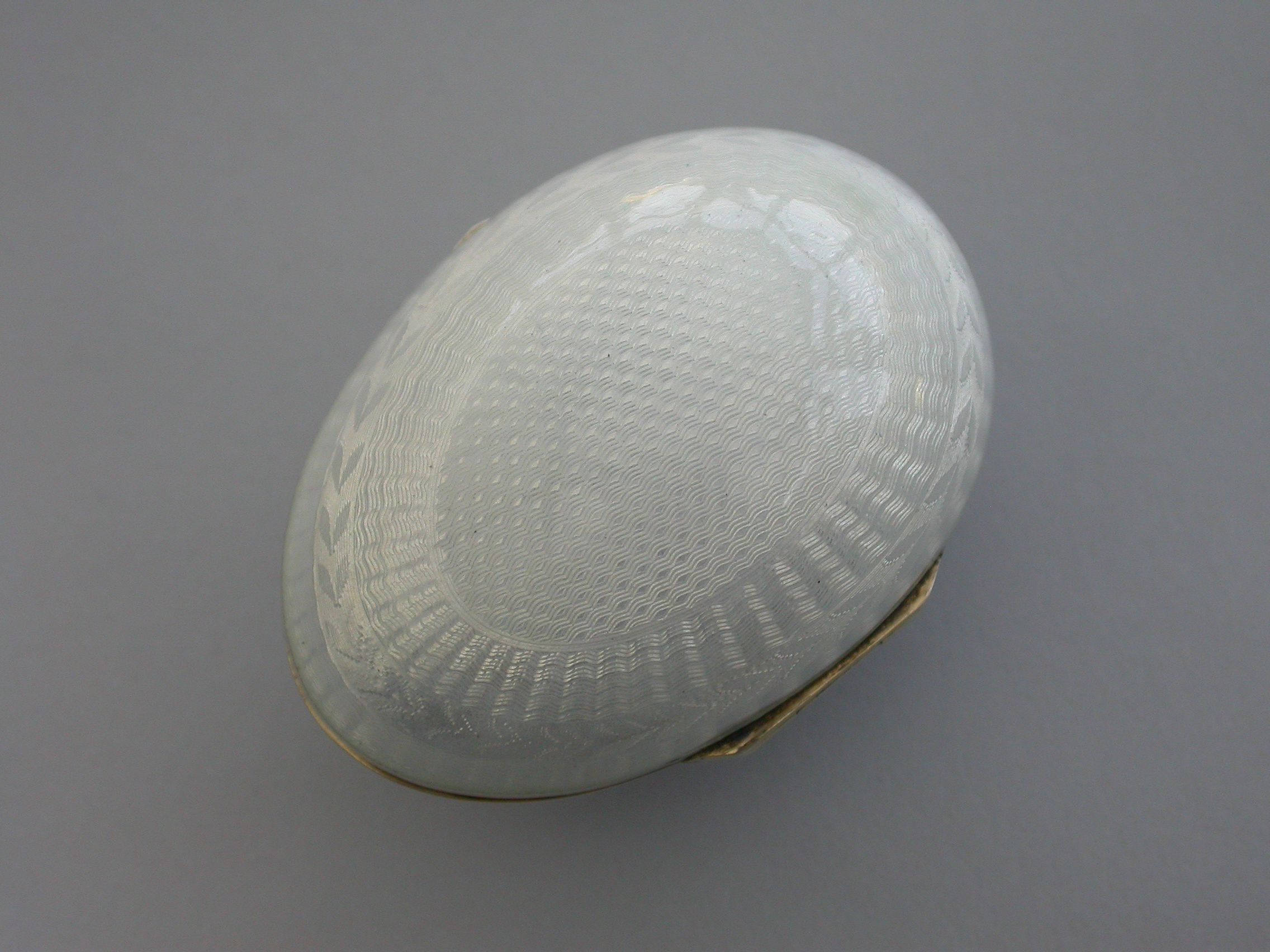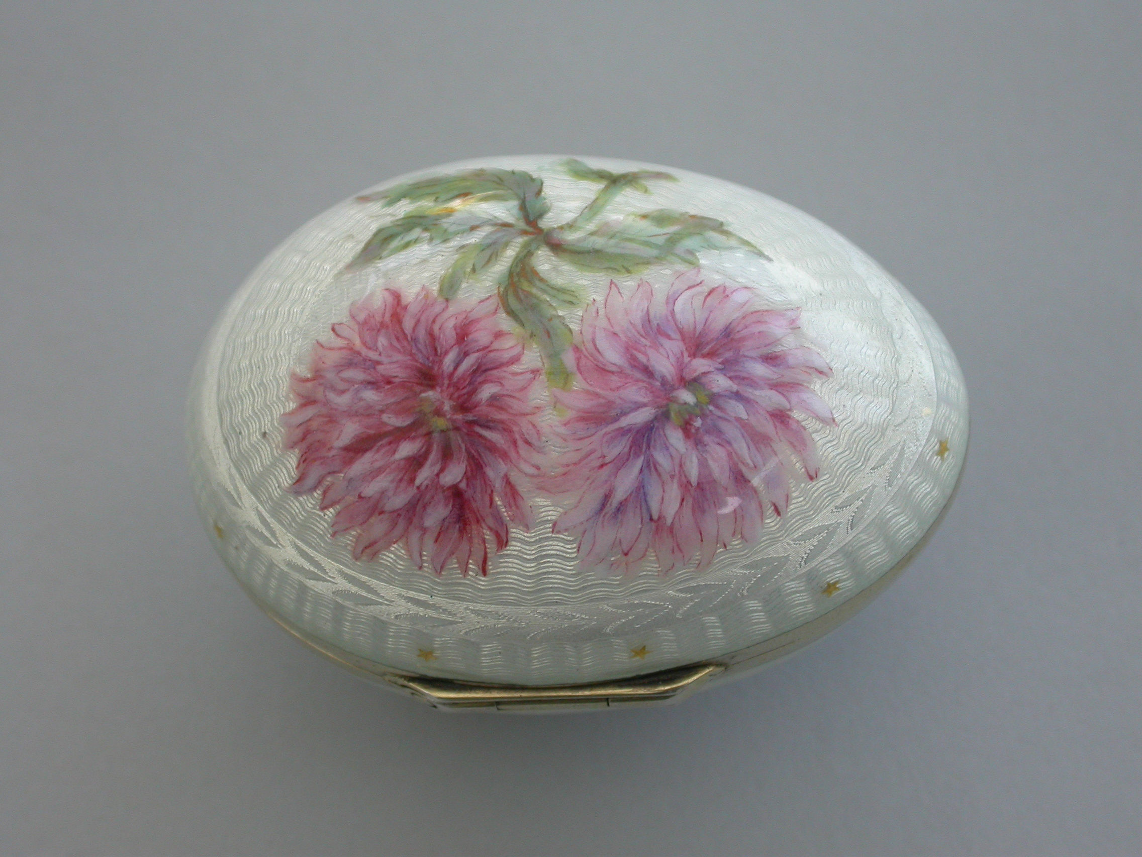 Austrian Silver & Guilloche Enamel Egg Shaped Box 'Peonies'