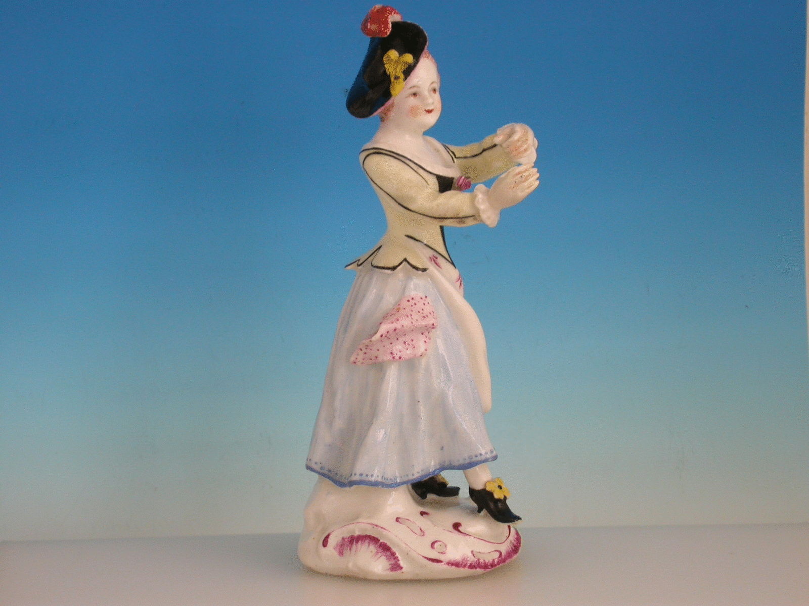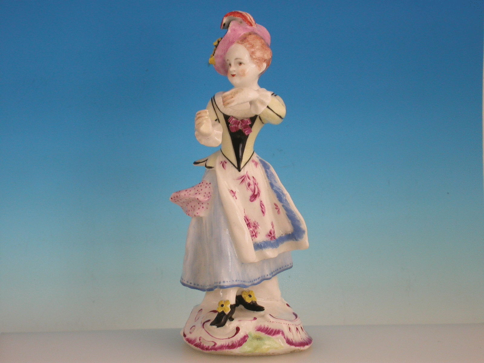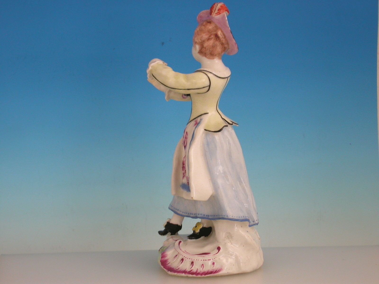 A fine Bow figure of a 'New Dancer', depicting an early example of this model on a low scroll moulded base, (most examples being of a later date are on raised bases), finely painted in polychrome enamels.