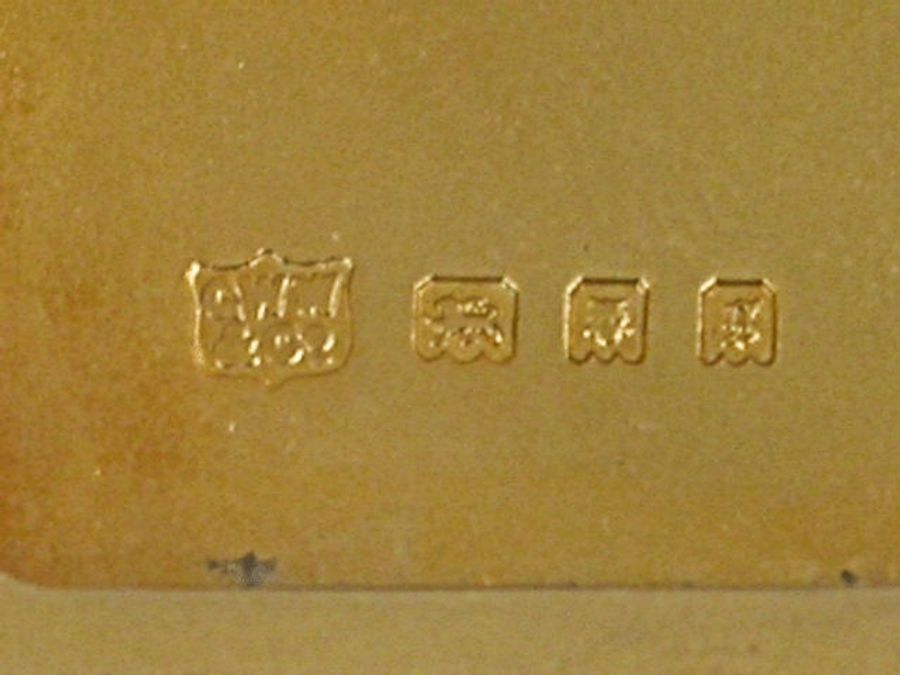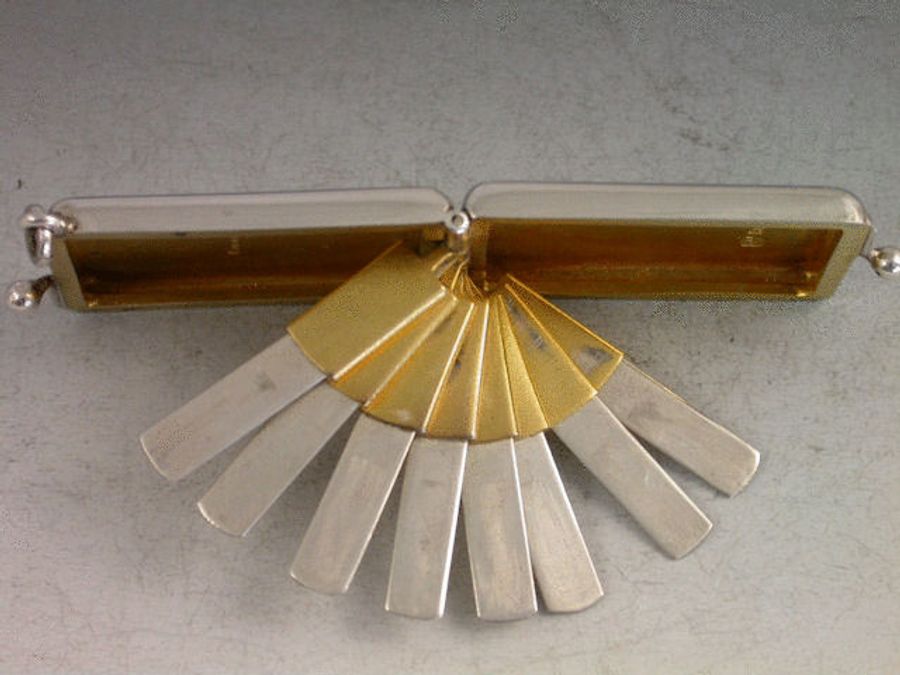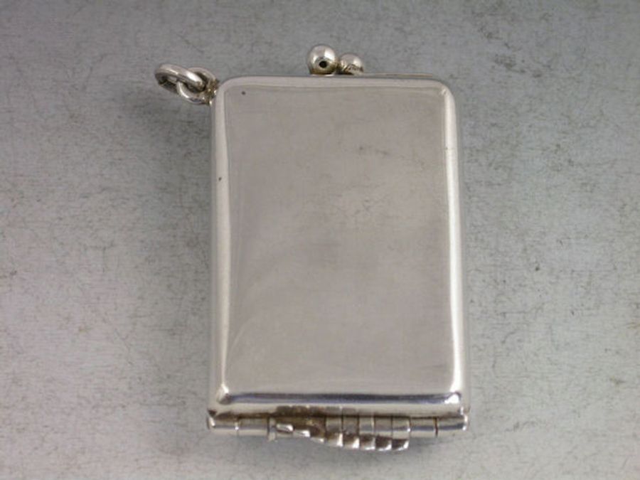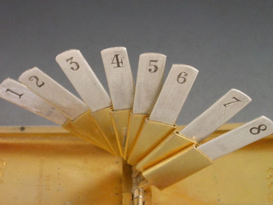 An early 20th century silver Butt Marker of plain rounded rectangular form with twin clasp closure and attached suspension ring, silver gilt interior, the ingenious multi-barrelled hinge opening to produce the 8 numbered steel pegs in a cascading fan pattern.