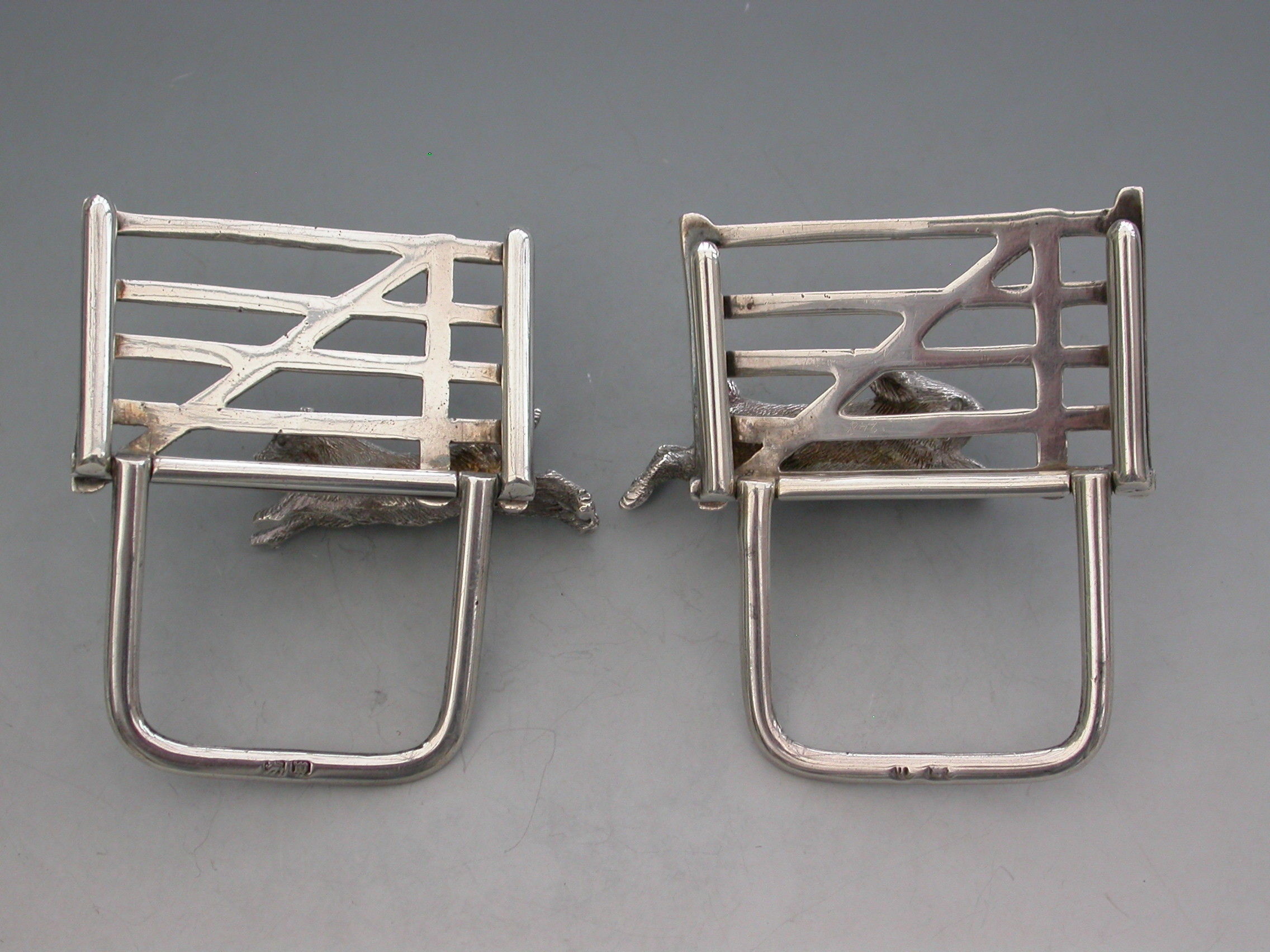 Cased Pair Victorian Rabbit & Terrier Silver Menu Holders