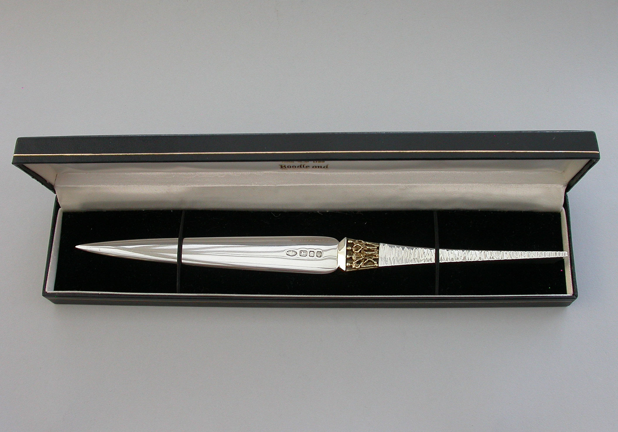 Cased Post War Silver & Parcel Gilt Letter Opener