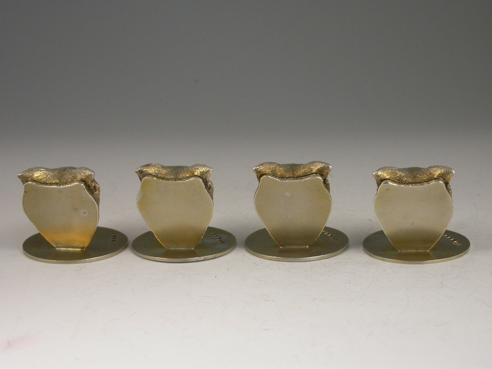 Cased Set 4 George V Cast Silver Gilt Fox Head Menu Holders