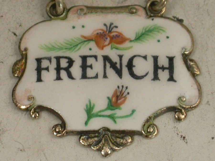 Cased Set 4 Mid 20th Century Enamel Spirit Labels