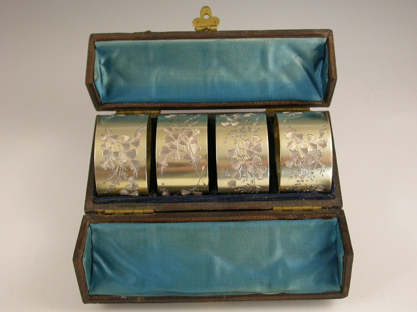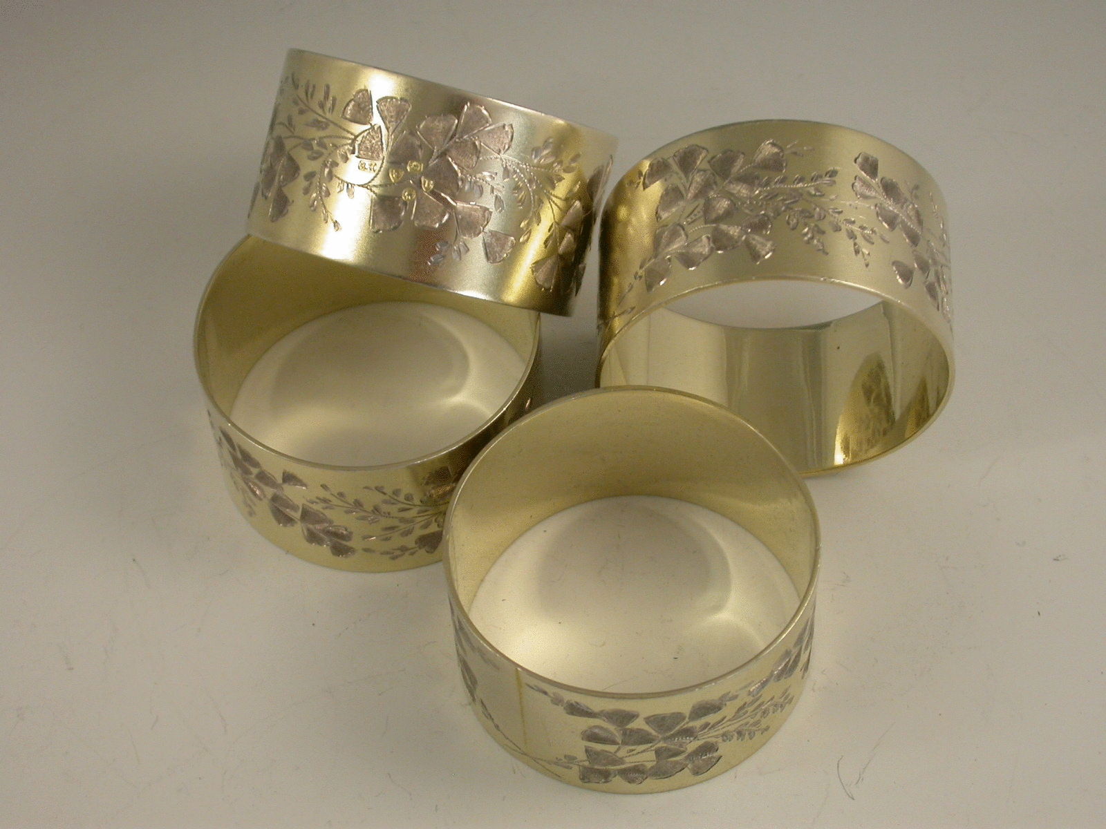 Cased Set 4 Victorian Parcel Gilt Napkin Rings