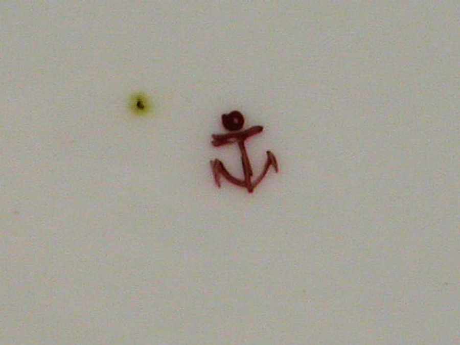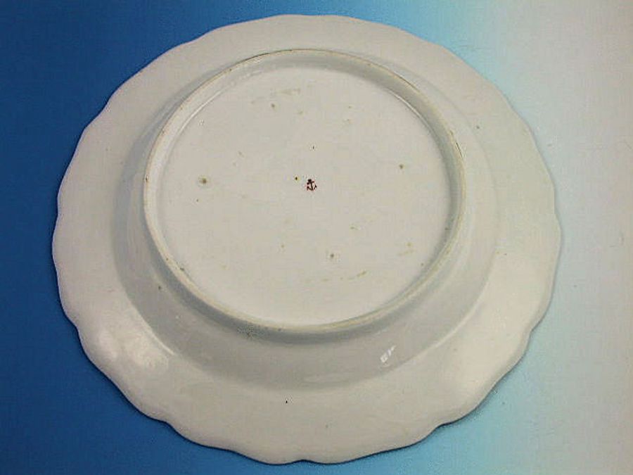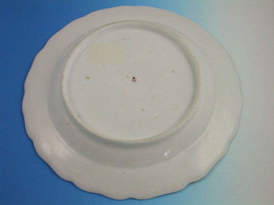A fine Chelsea Brown Anchor Botanical Plate, painted with fruit and vegetables within a chocolate line border.