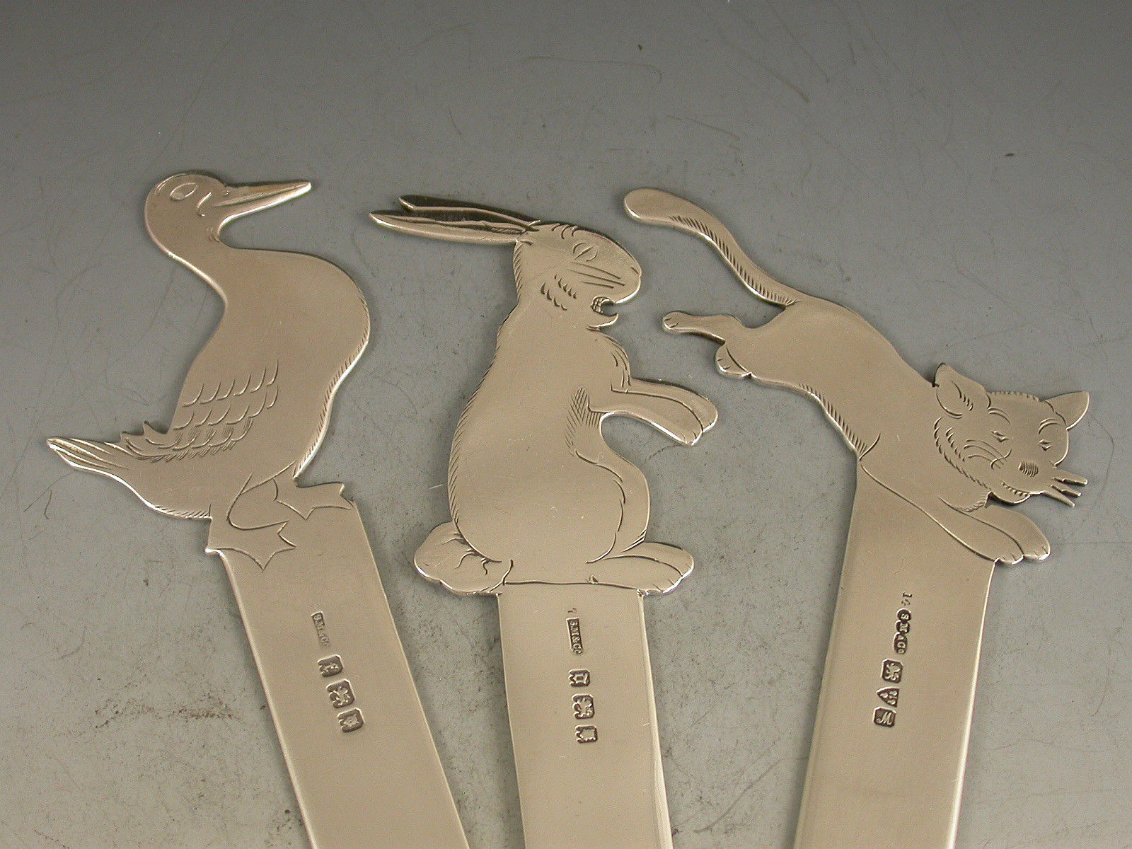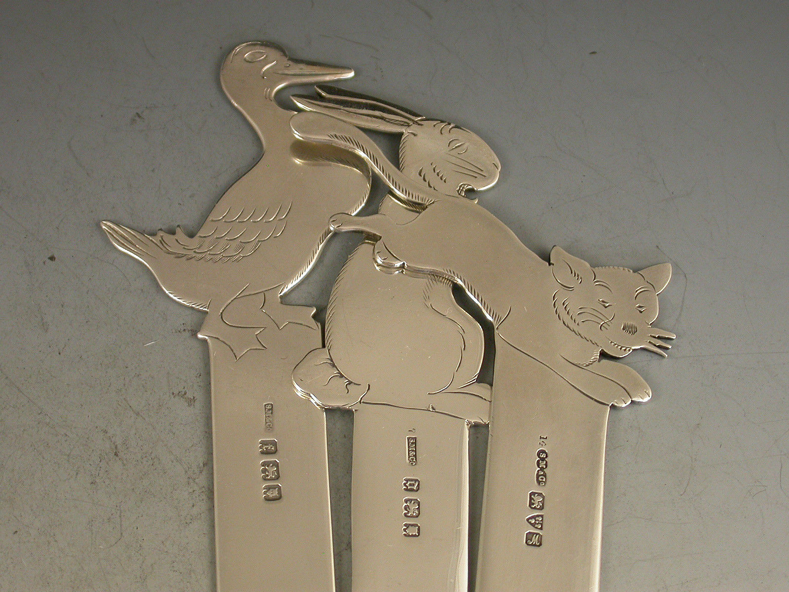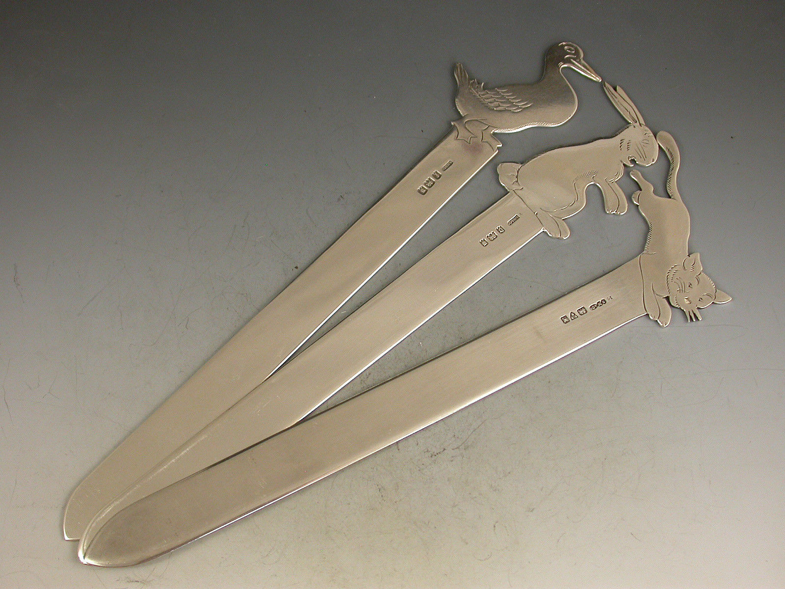 Composed Set 3 George V Novelty Silver Animal Letter Openers - Benjamin Rabier