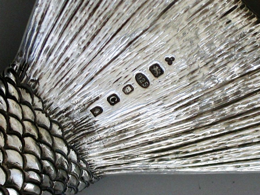 She is mainly self-taught, specialising in enamelled silverware and enjoys experimenting in different processes and finishes. Her enamelling techniques include plique-a-jour and basse taille. She makes a point of using recycled metals where ever possible.