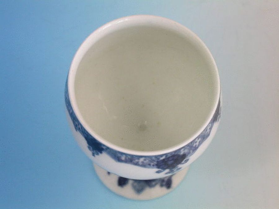A fine Dr Wall Worcester Egg Cup of plain shape with everted rim and flat base, painted in underglaze blue with the ‘Egg Cup Floral Sprays pattern’ (IE11) within a diaper and flower head border.
