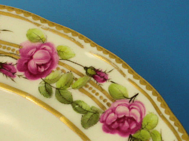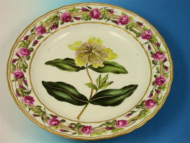 A good Duesbury Derby Botanical Plate of lobed form, painted in the central gilt lined reserve with a Large Flowered St John’s Wort, within a border of wild rose sprays, gilt dentil border.
