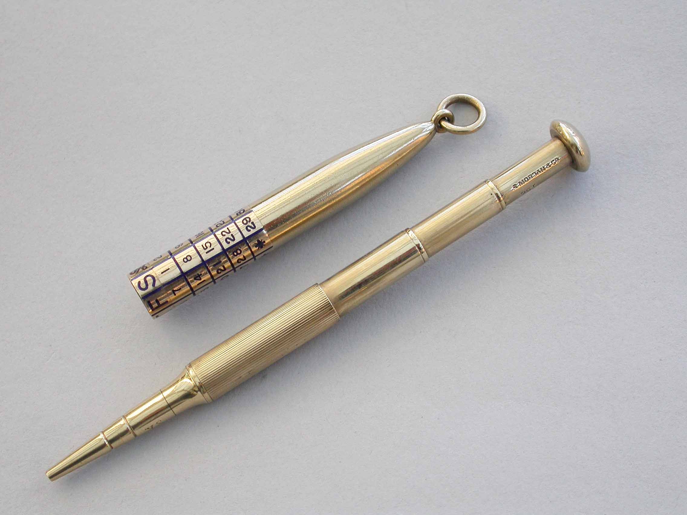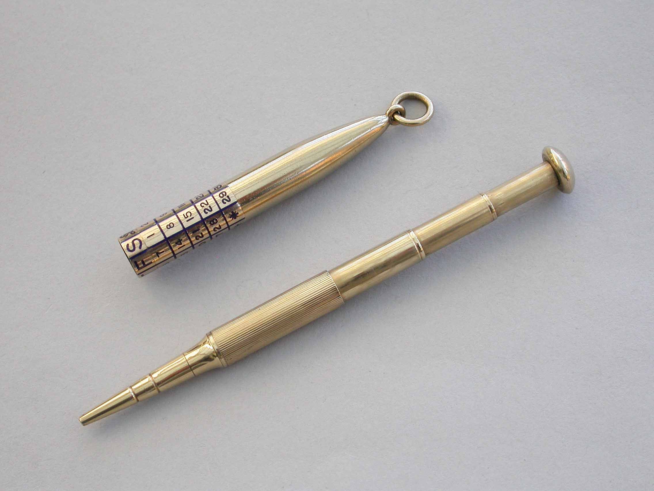 Early 20th Century 9 carat Gold & Enamel Telescopic Propelling Pencil & Perpetual Calendar