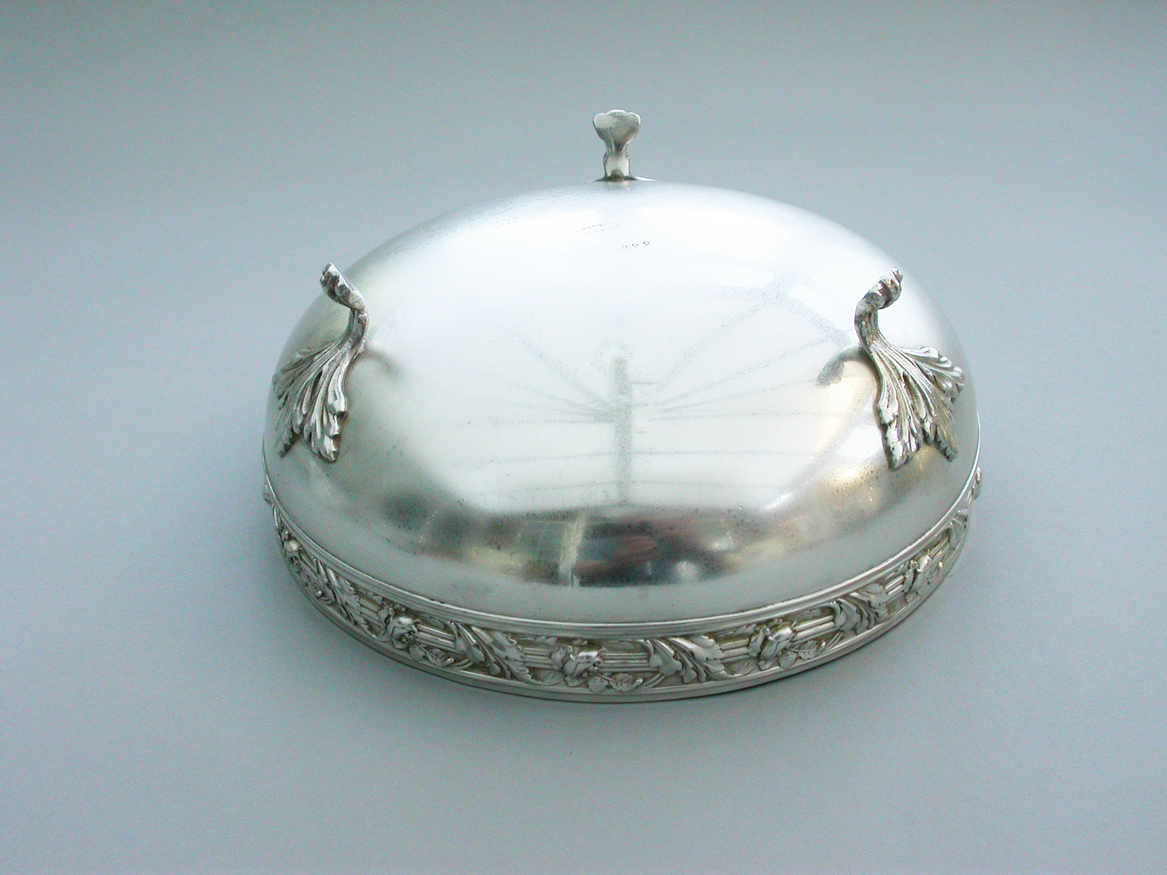 In good condition with no damage or repair, tiny shadow of one of the feet showing on interior of bowl.