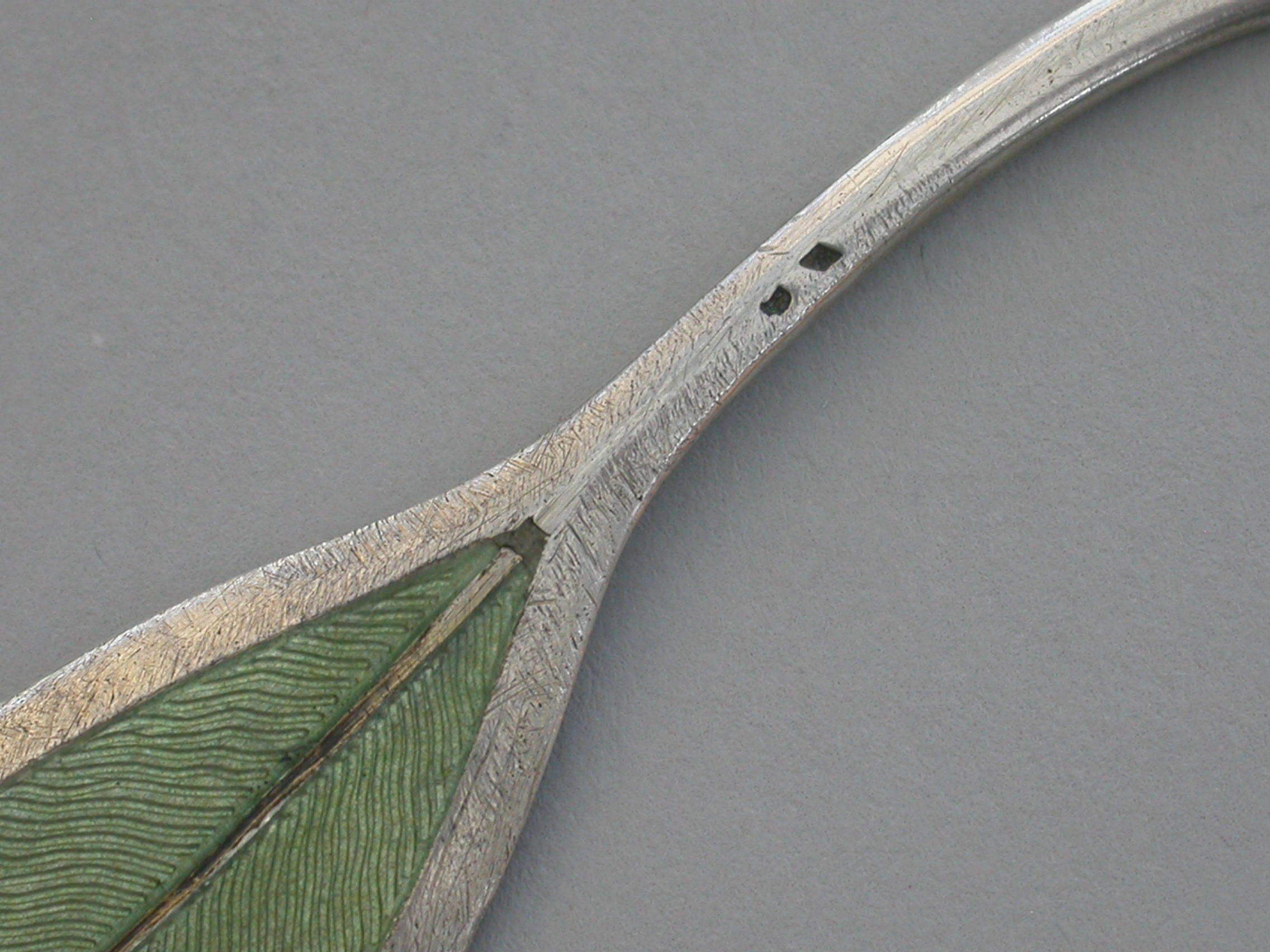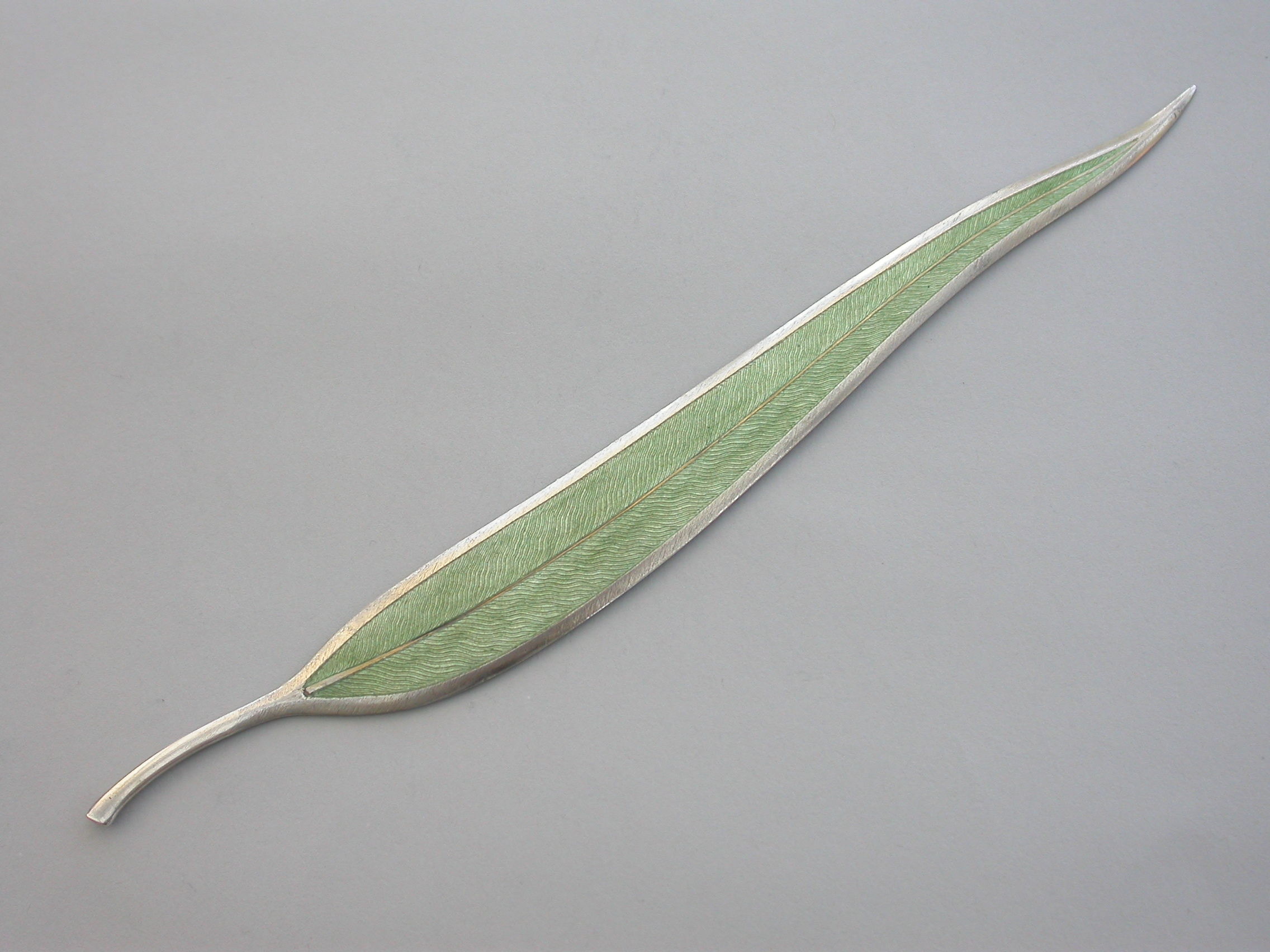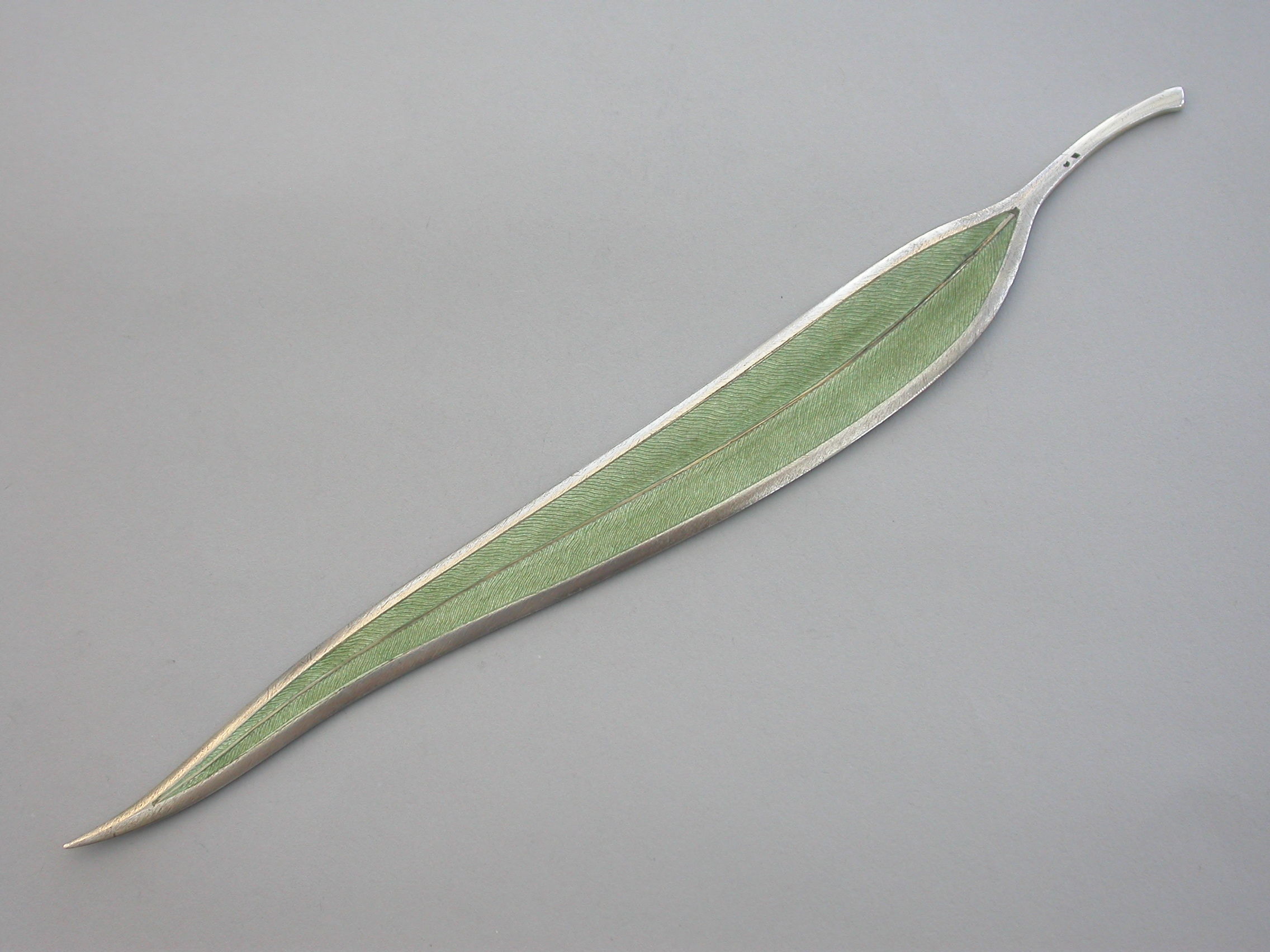 A good quality early 20th century French silver and green guilloche enamel Letter Opener, made in the form of a feather.