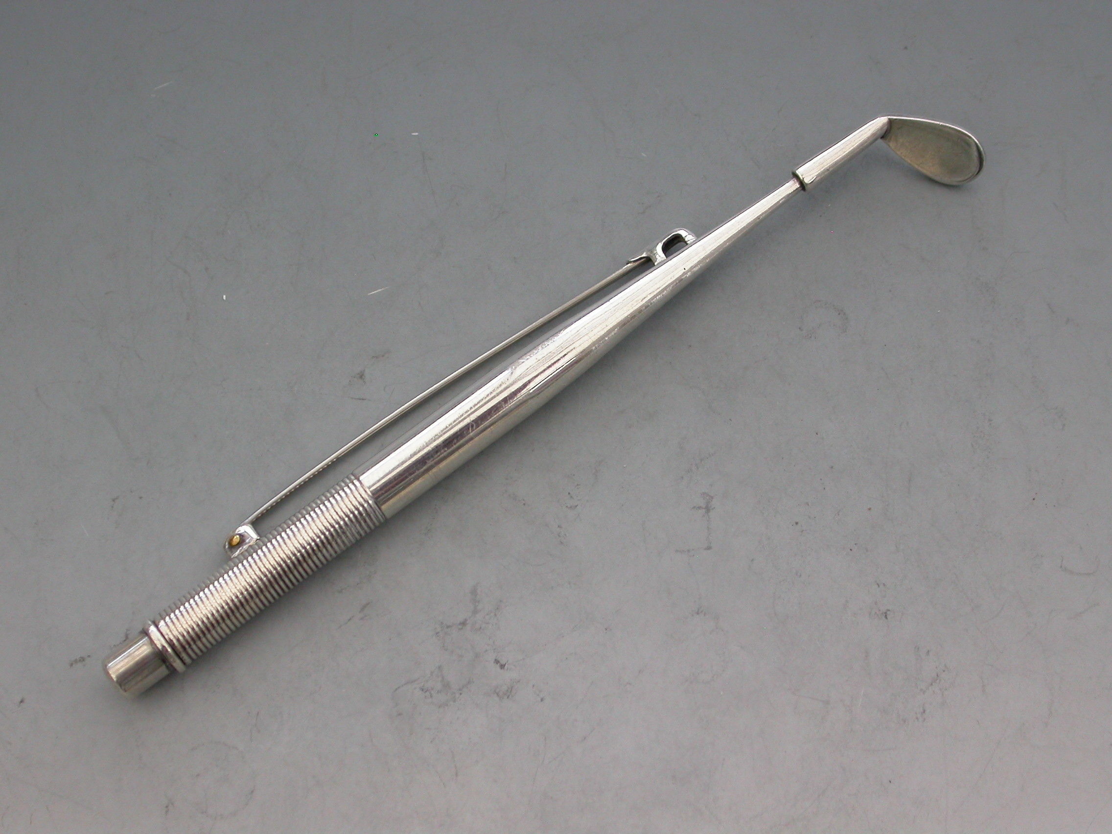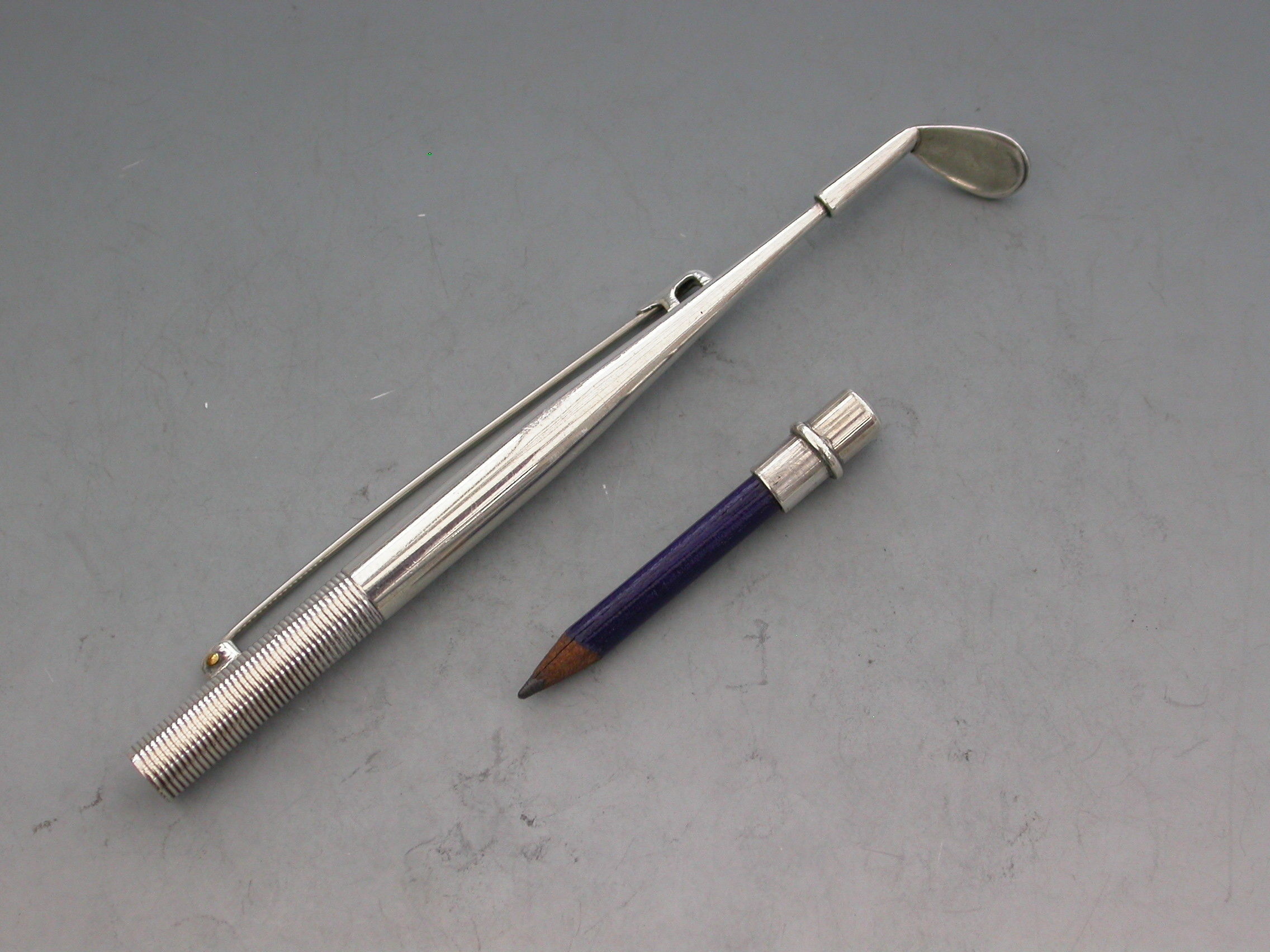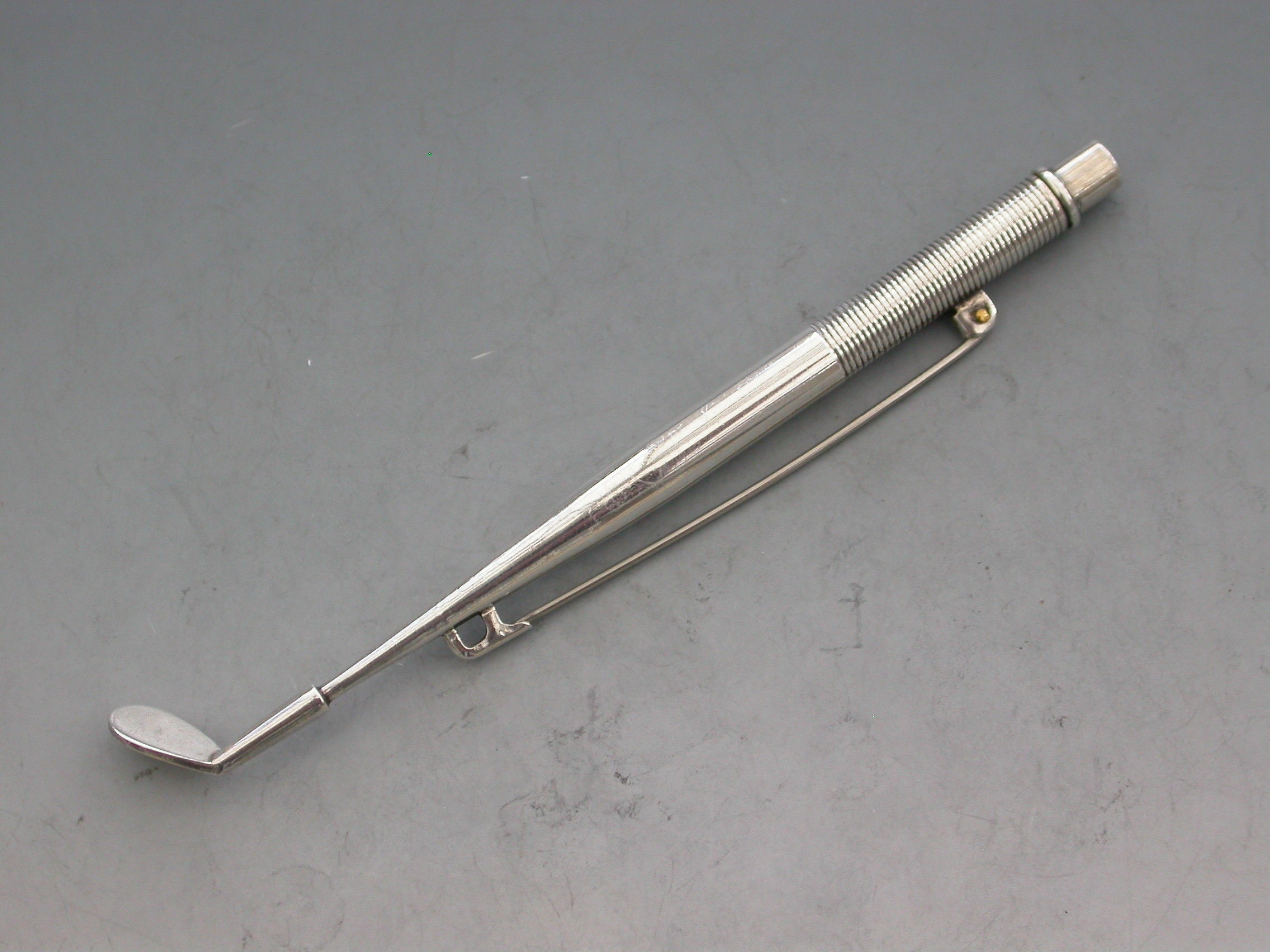 Early 20th Century Novelty Silver Golf Club Pencil / Brooch