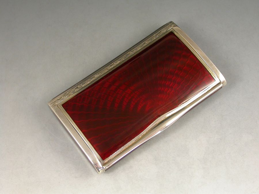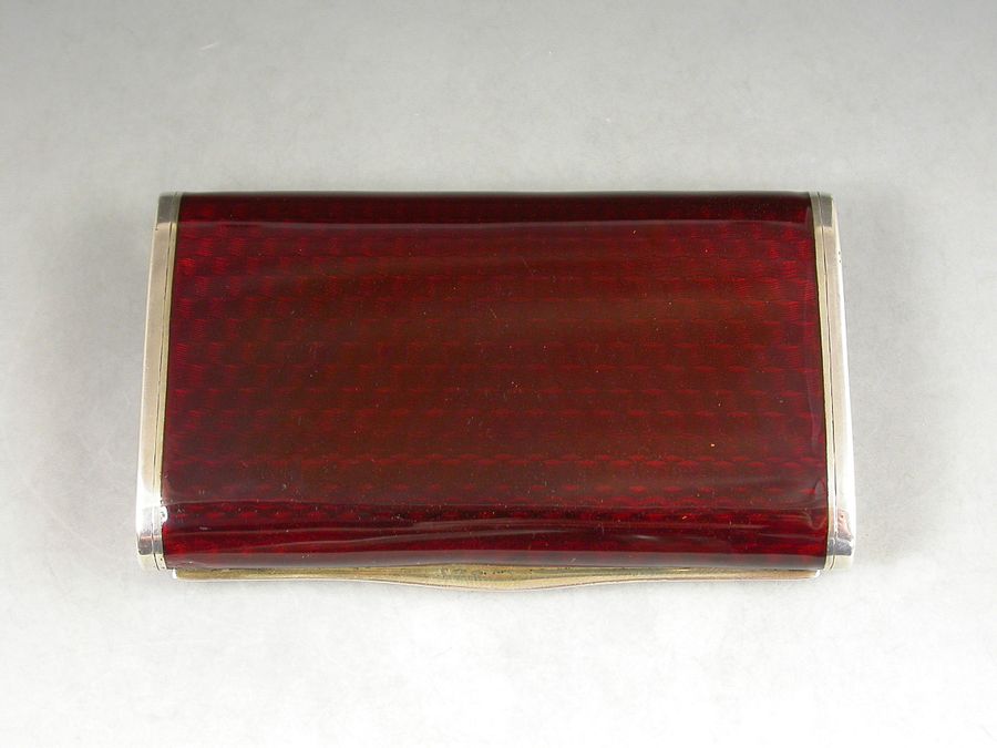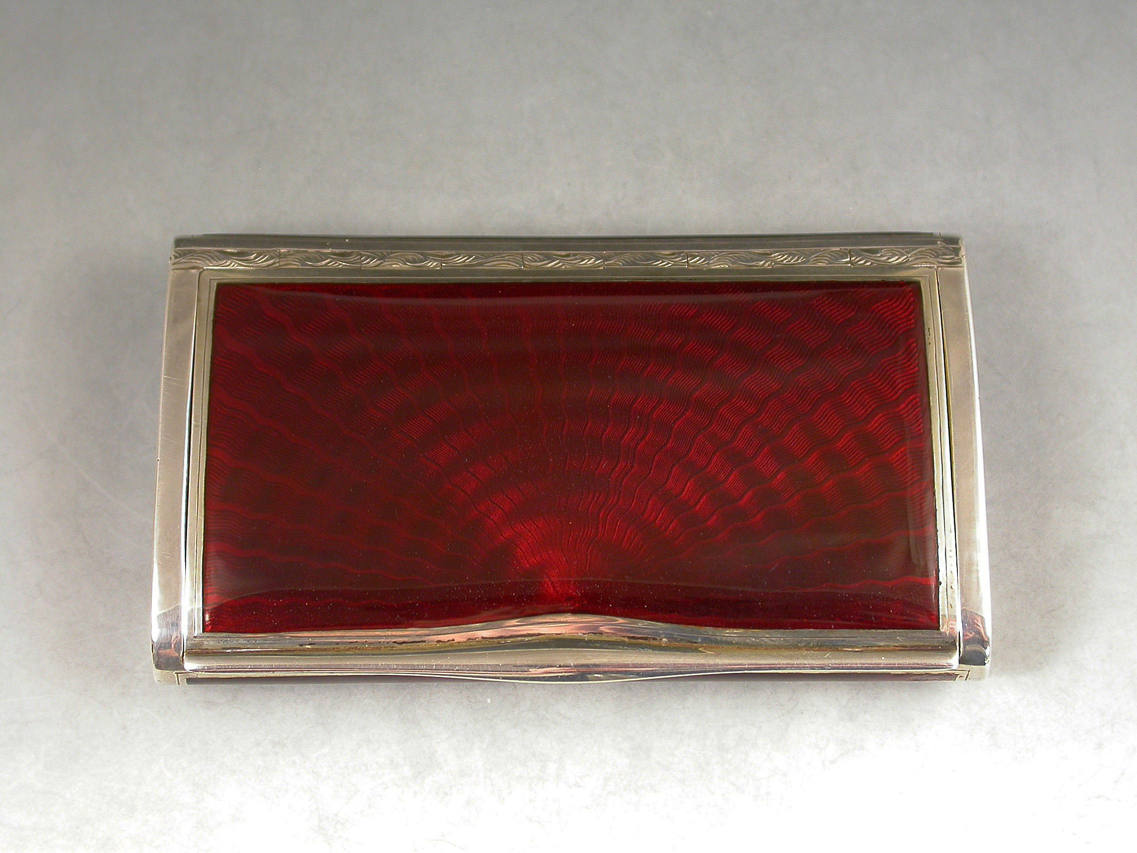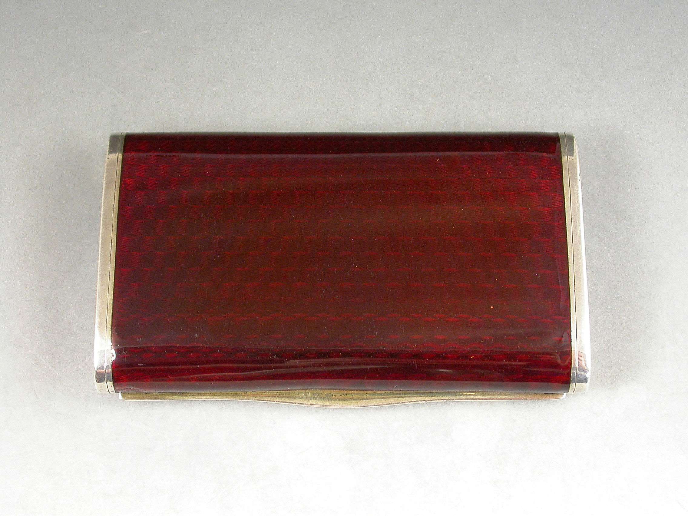 Early 20th Century Silver & Burgundy Champleve Enamel Snuff Box