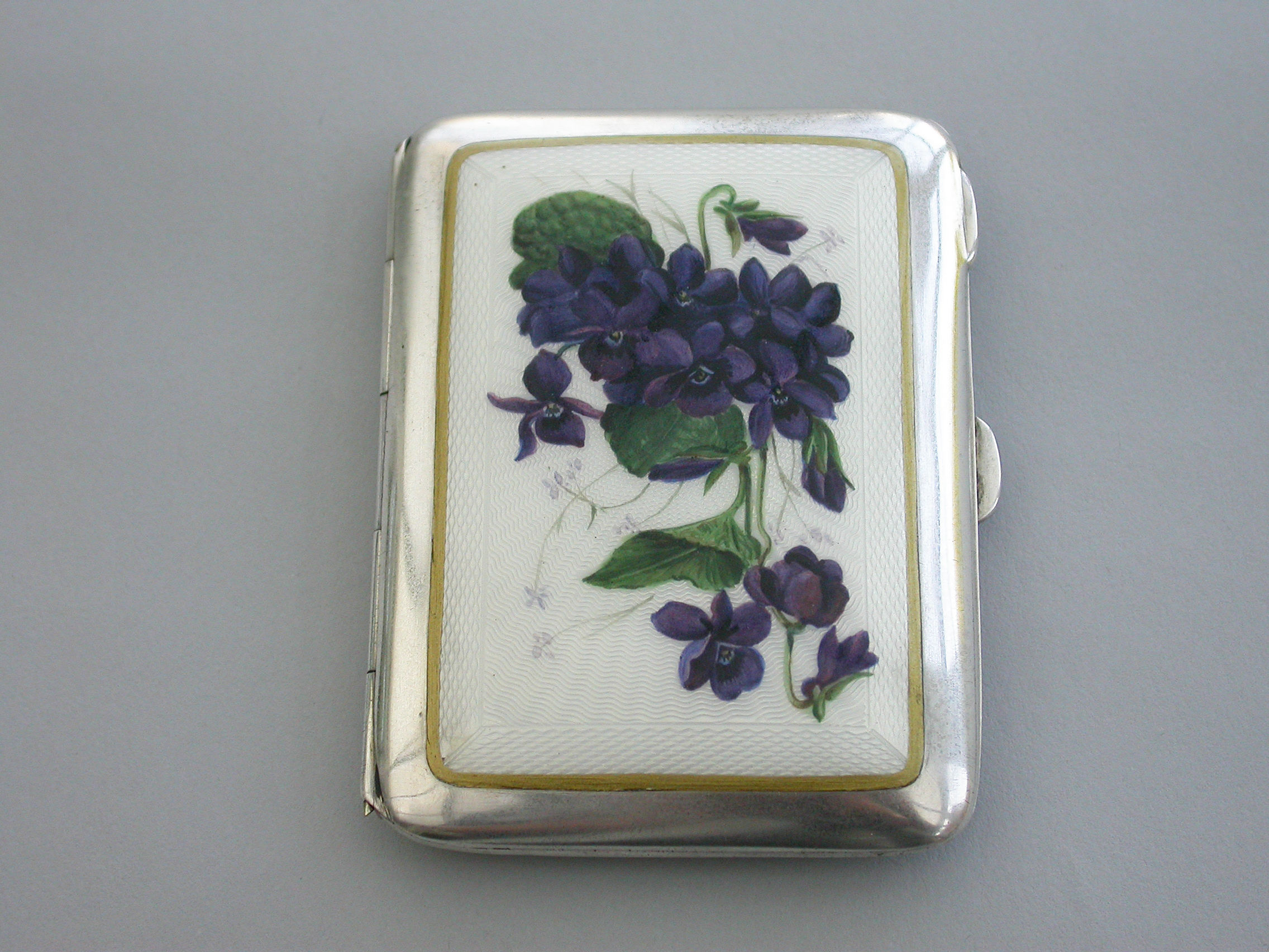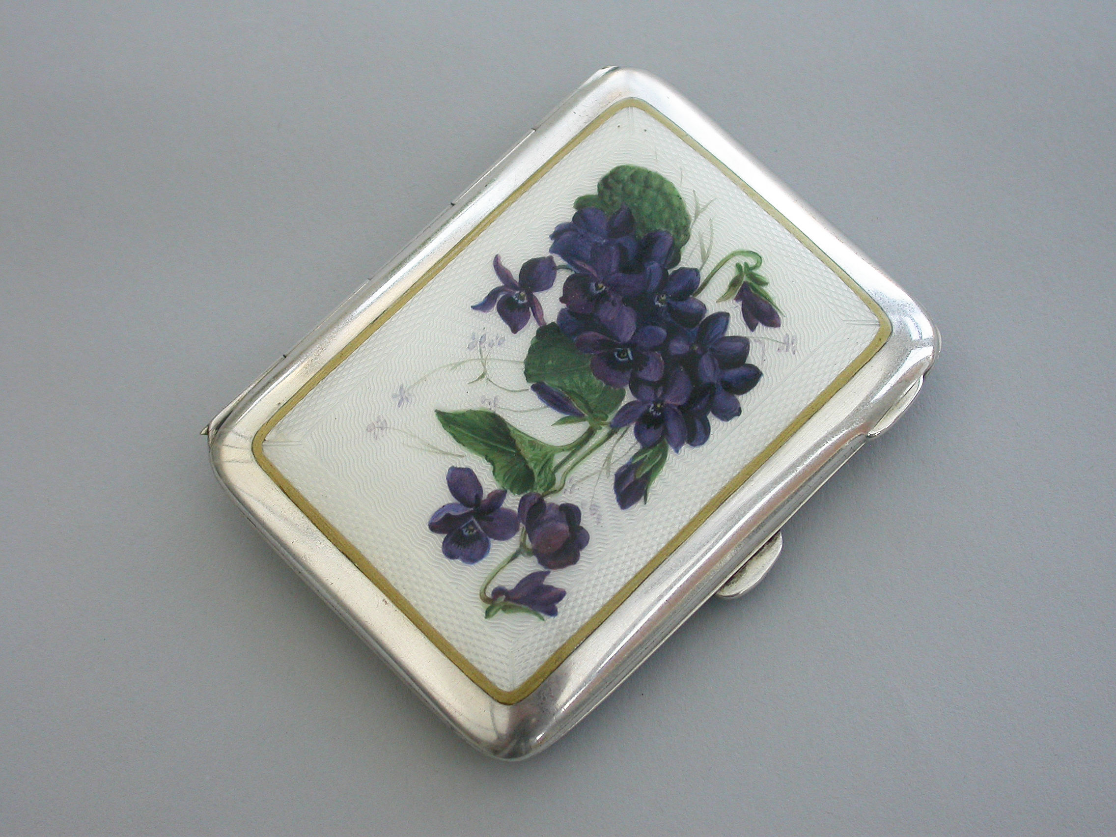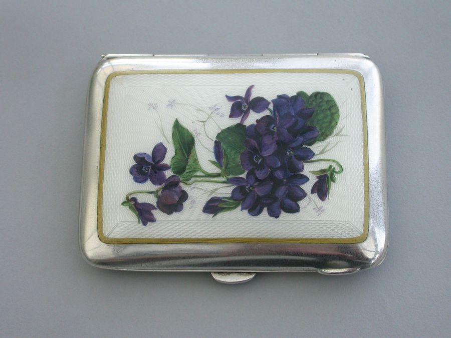 Early 20th Century Silver & Guilloche Enamel 'Violets' Cigarette Case