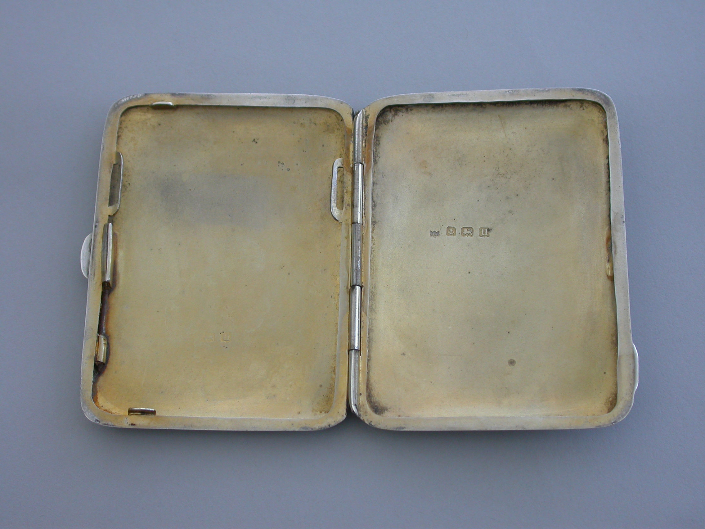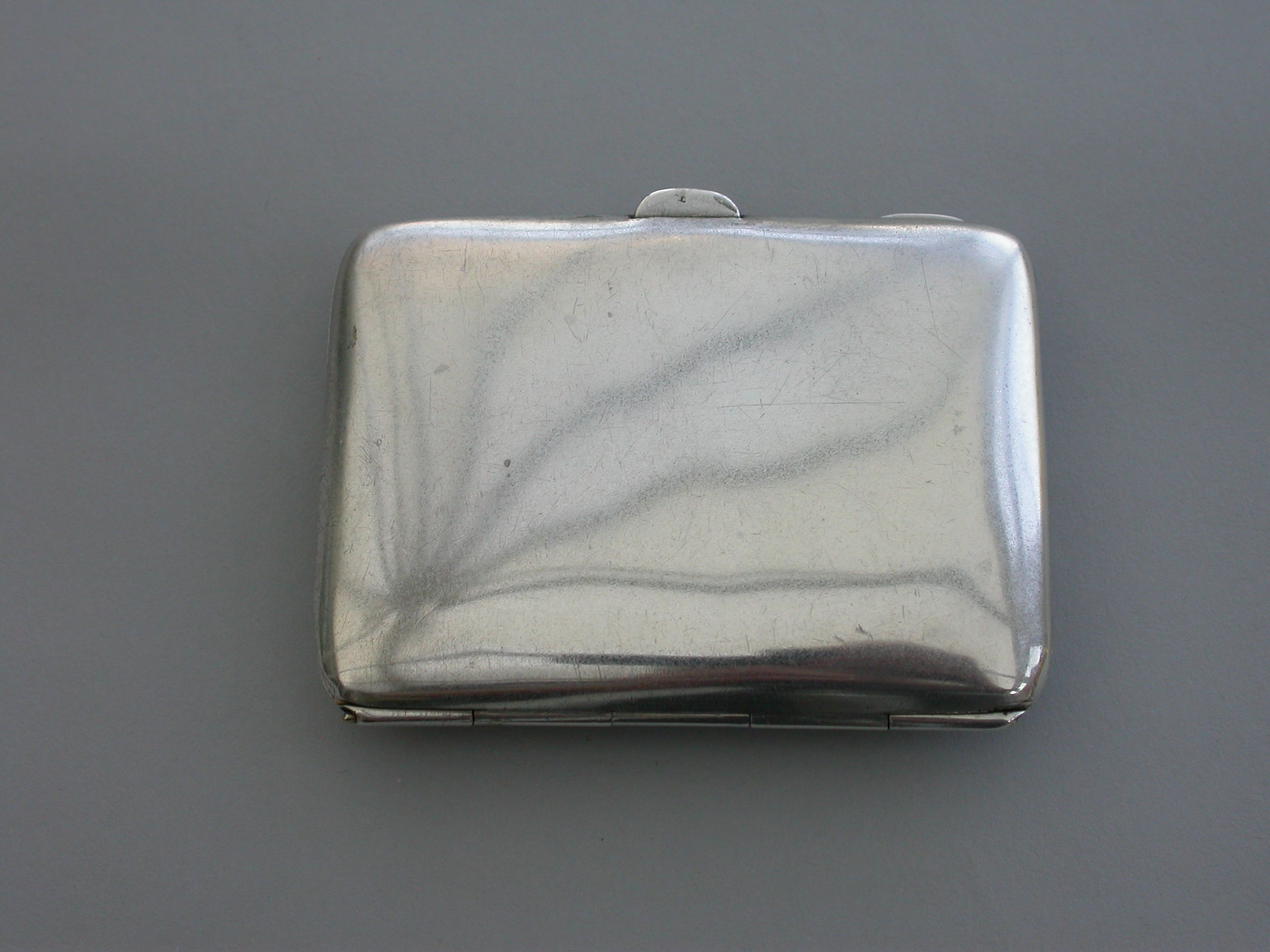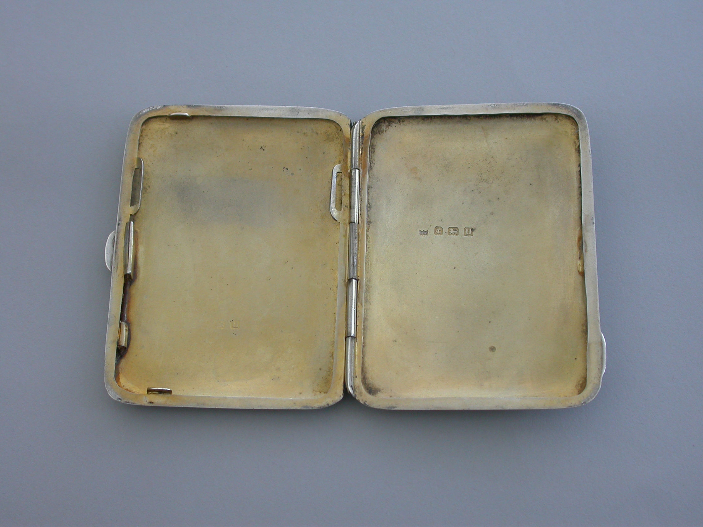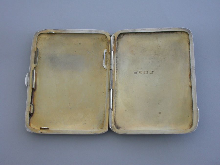 An early 20th silver Cigarette Case of curved rectangular form, the lid with inset guilloche enamel panel painted with sprays and violets. Silver gilt interior.