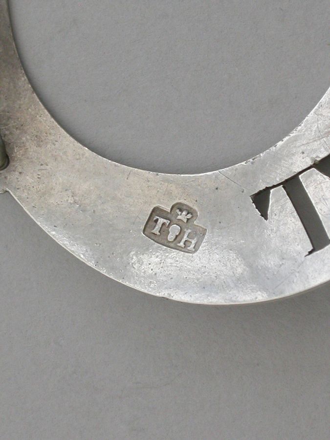 A rare early George III silver Wine Label of large plain crescent form with ""ears"", pierced for Port.