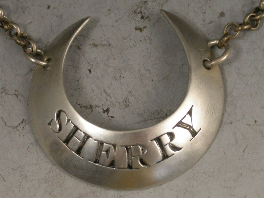 Early Victorian Antique Silver Crescent Wine Label 'Sherry'