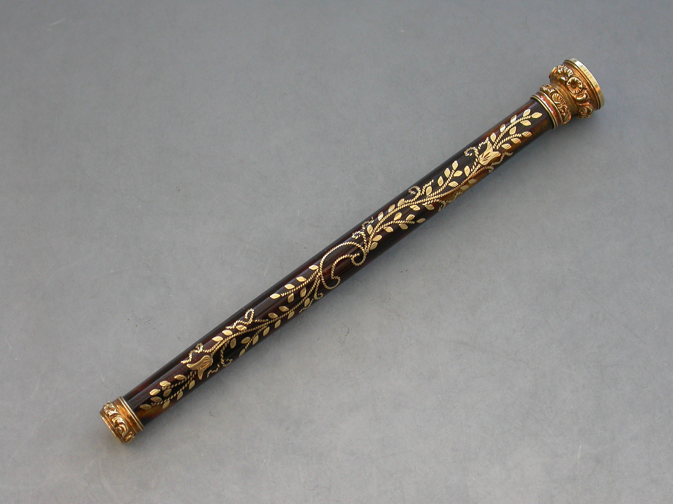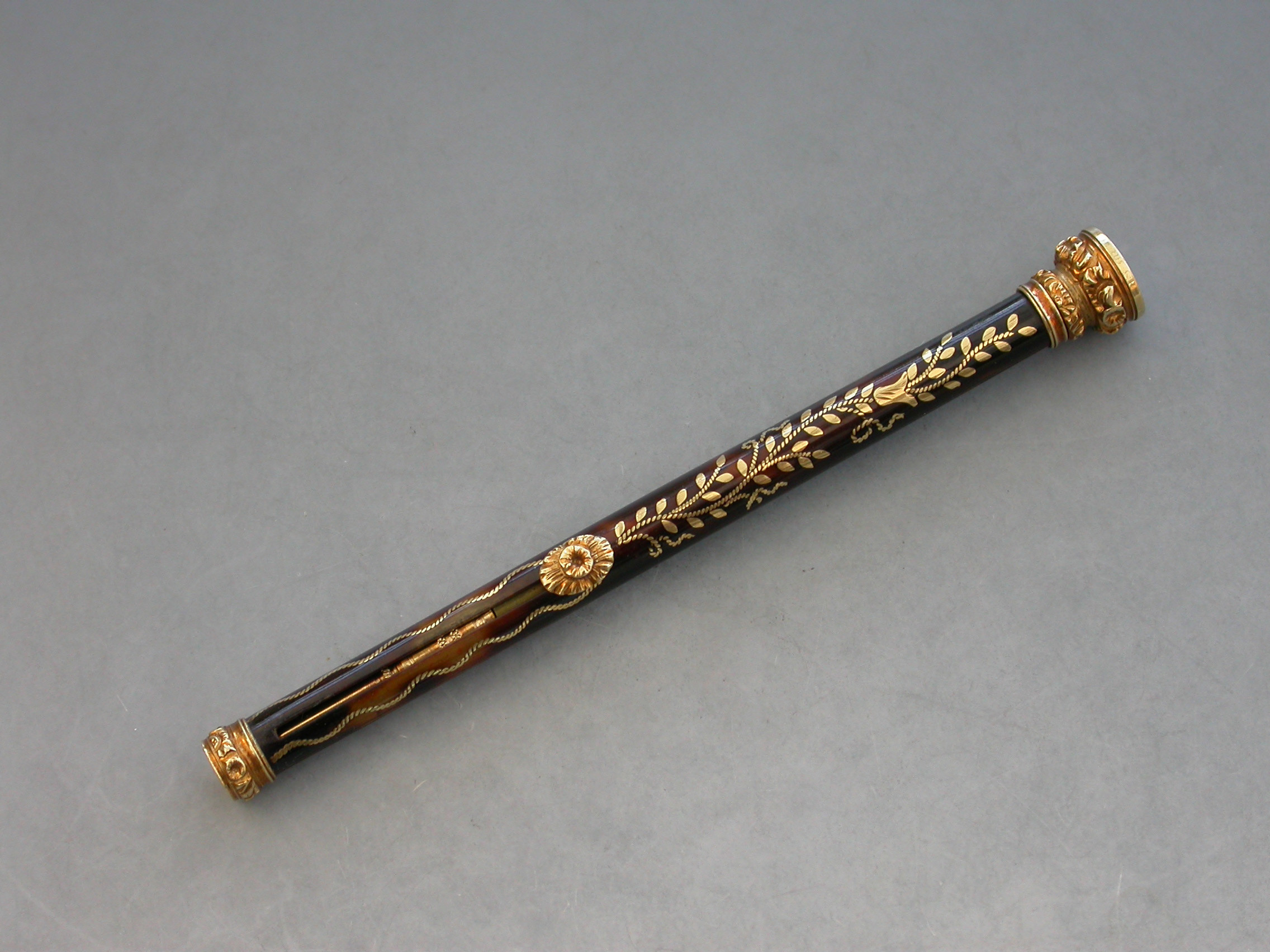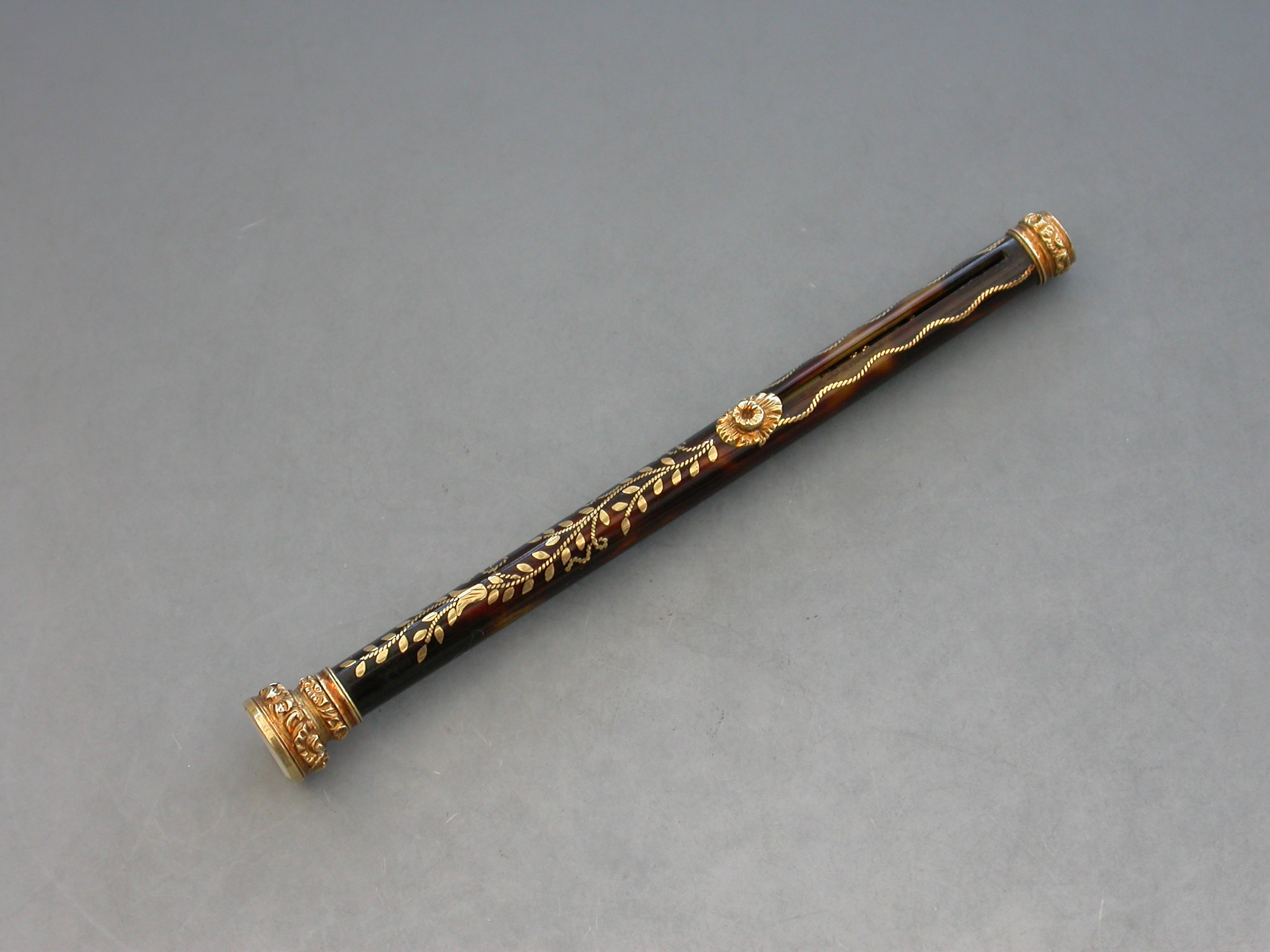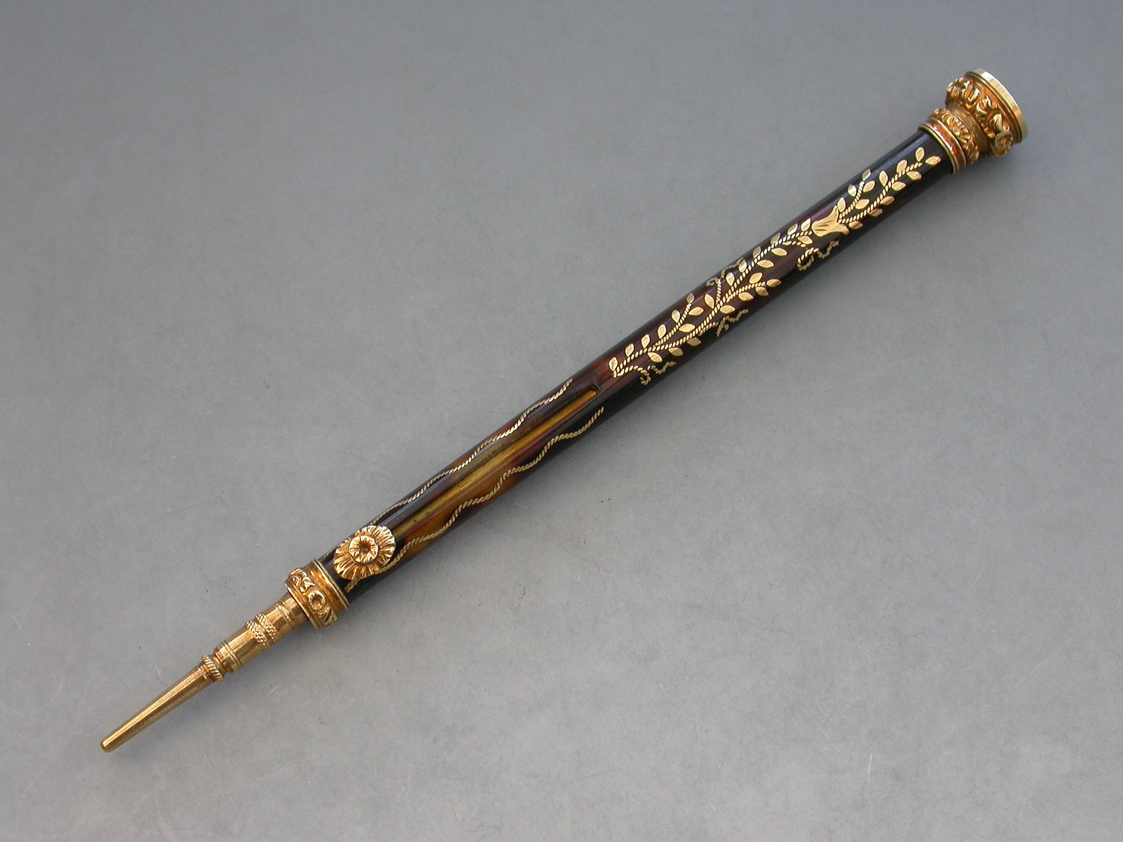 Early Victorian Tortoiseshell & Gold Pique Sliding Propelling Pencil