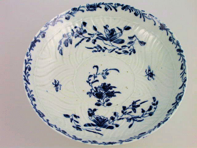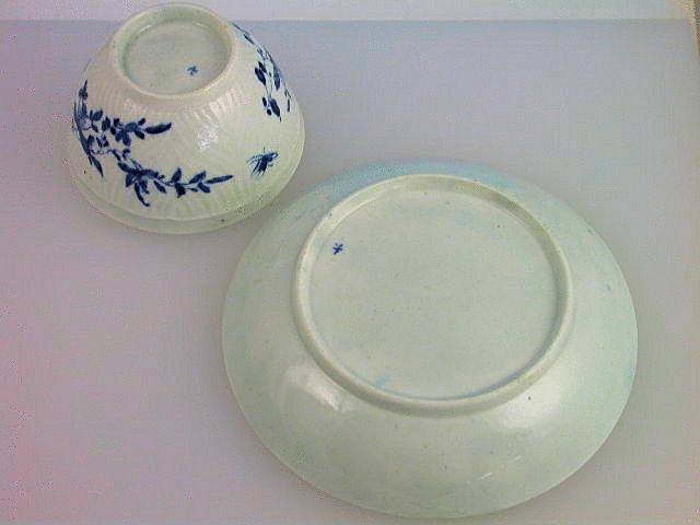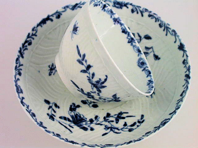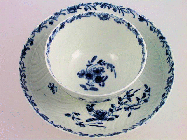 Early Worcester Teabowl & Saucer Feather Mould Floral