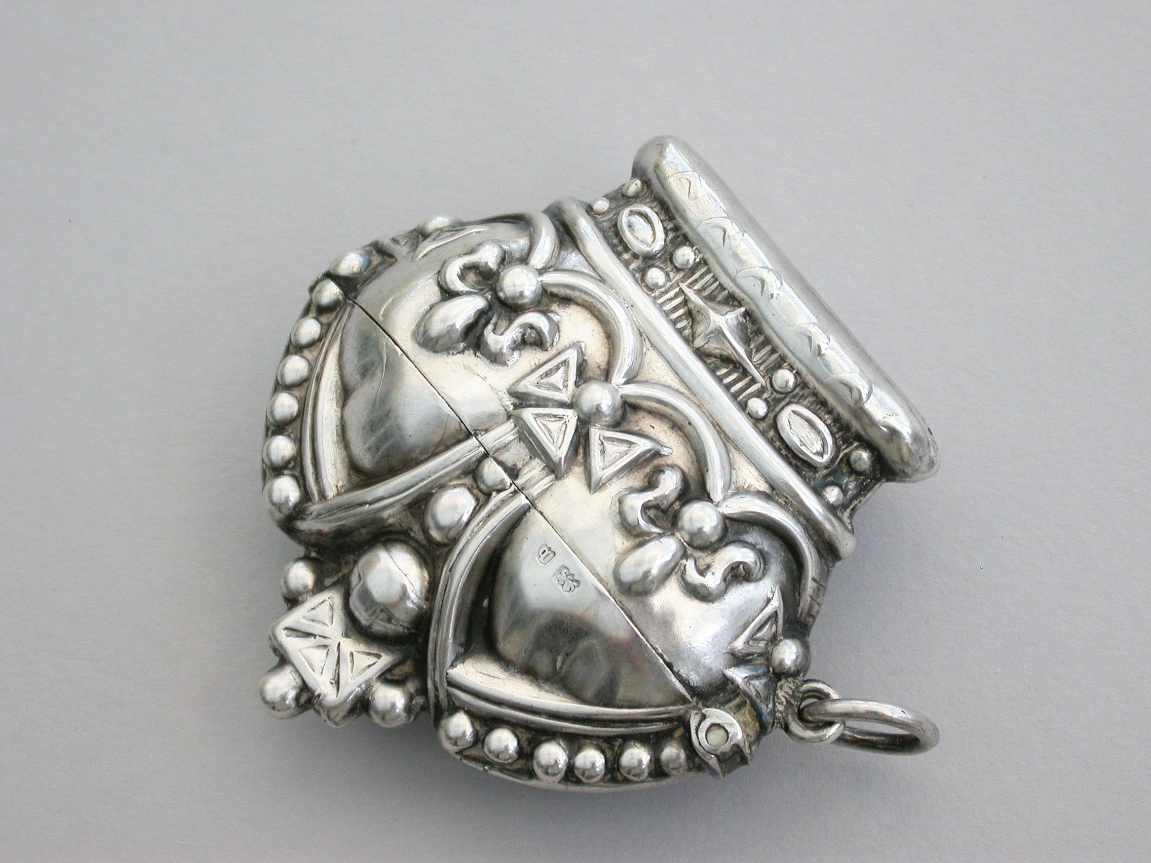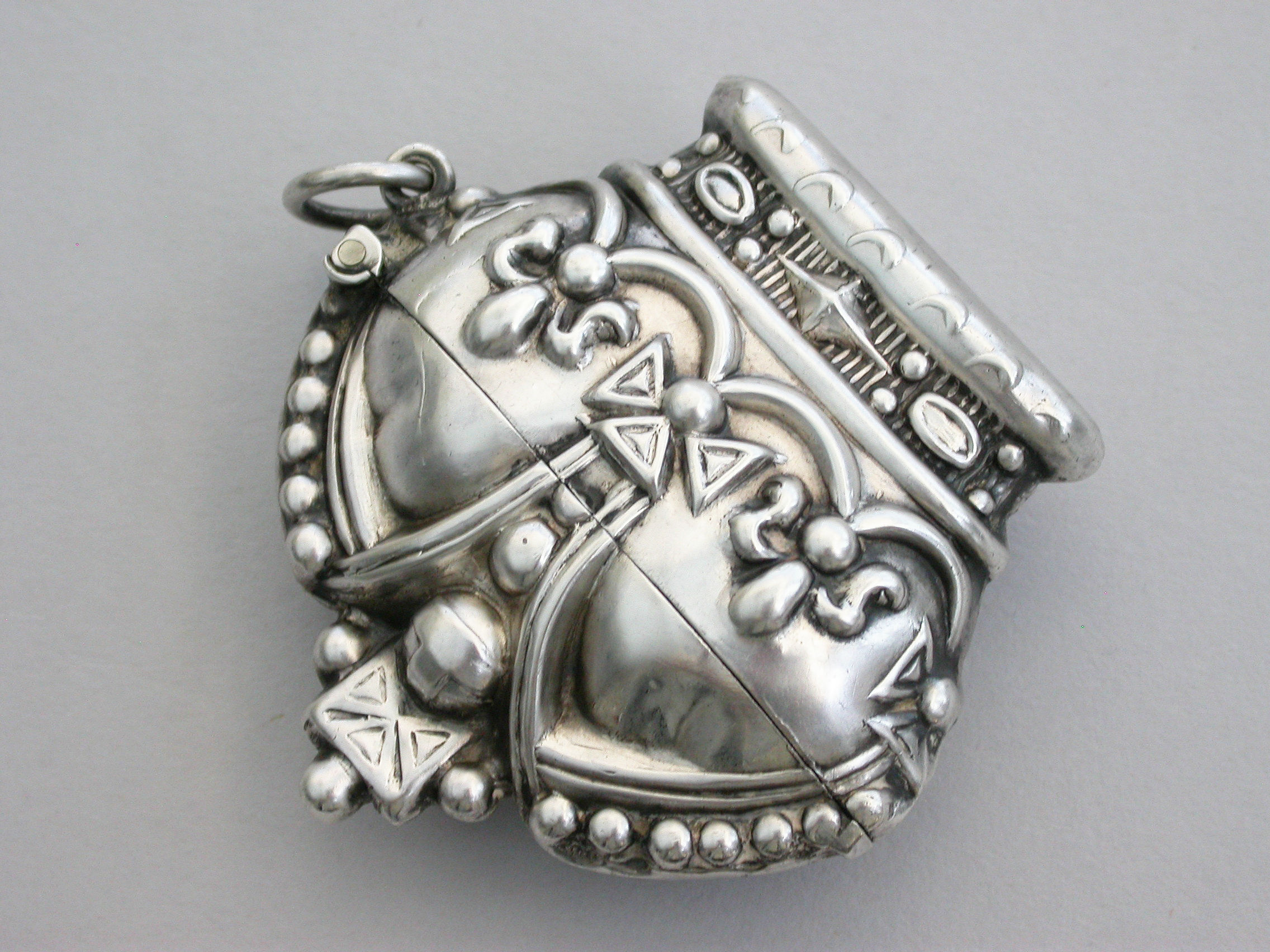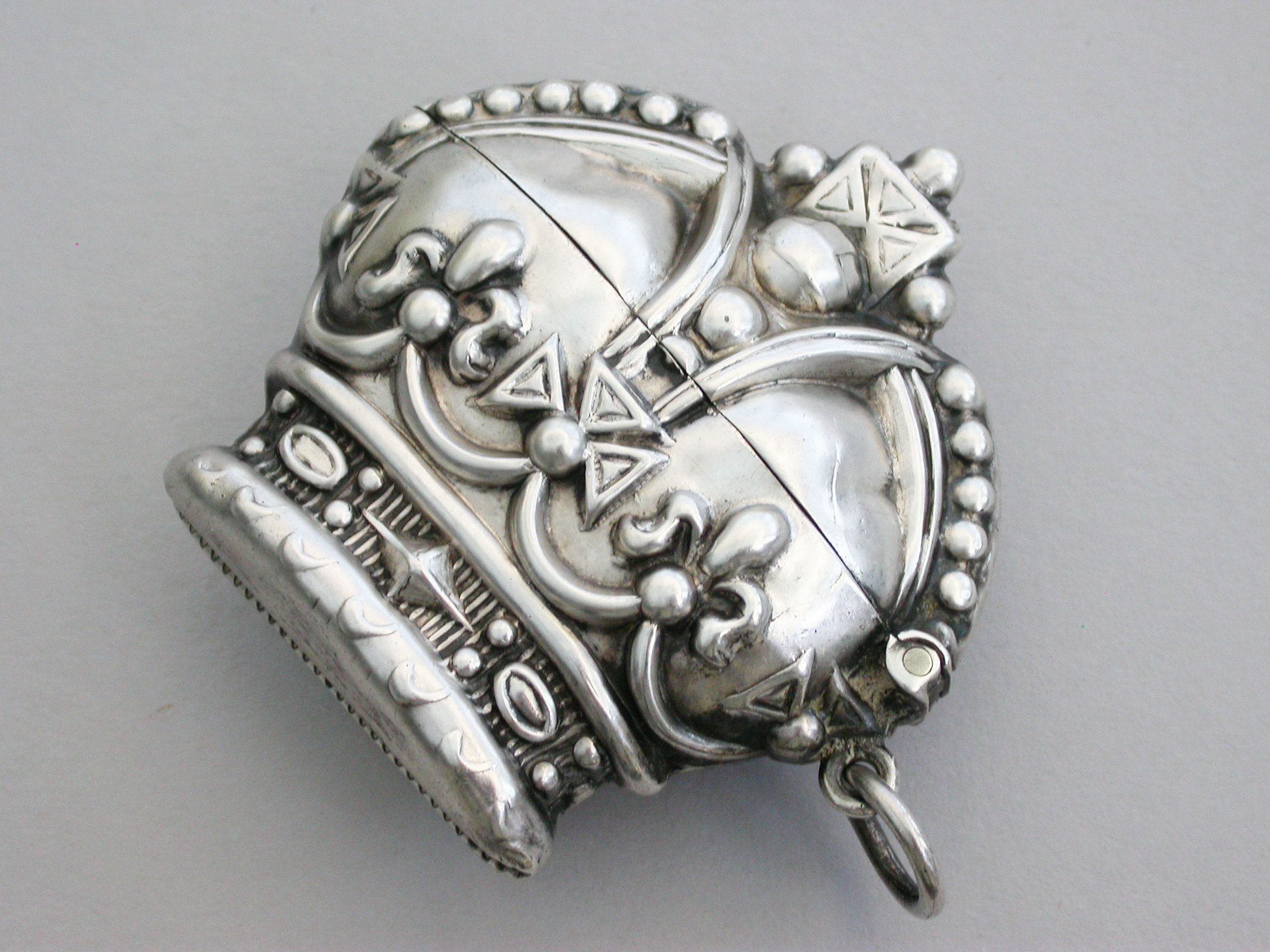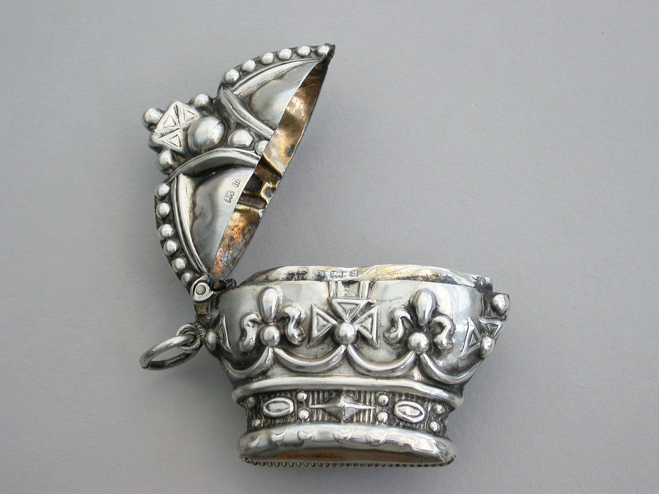 A rare early Edwardian novelty silver Vesta Case made in the form of 'St Edwards Crown' to commemorate the Coronation of Edward VII in 1901, with sprung hinged lid and attached suspension ring.