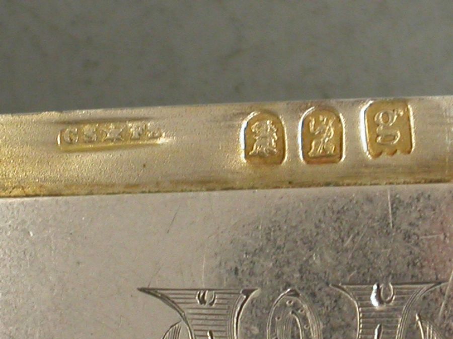 A rare Edwardian silver Vesta Case of standard rounded rectangular form with hinged flip top lid and attached suspension ring. Unusually made from the higher Britannia Standard of silver (95.84%). The face engraved with contemporary initials 'MW'.