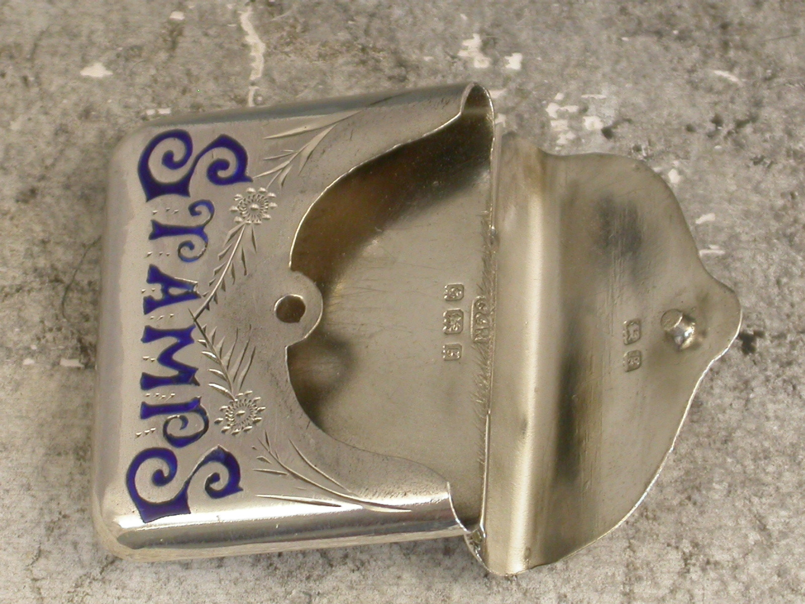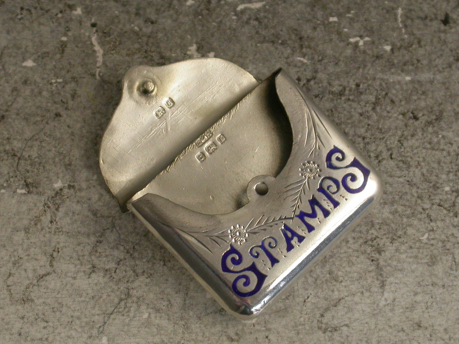 Edwardian Antique Silver & Enamel Envelope Stamp Case