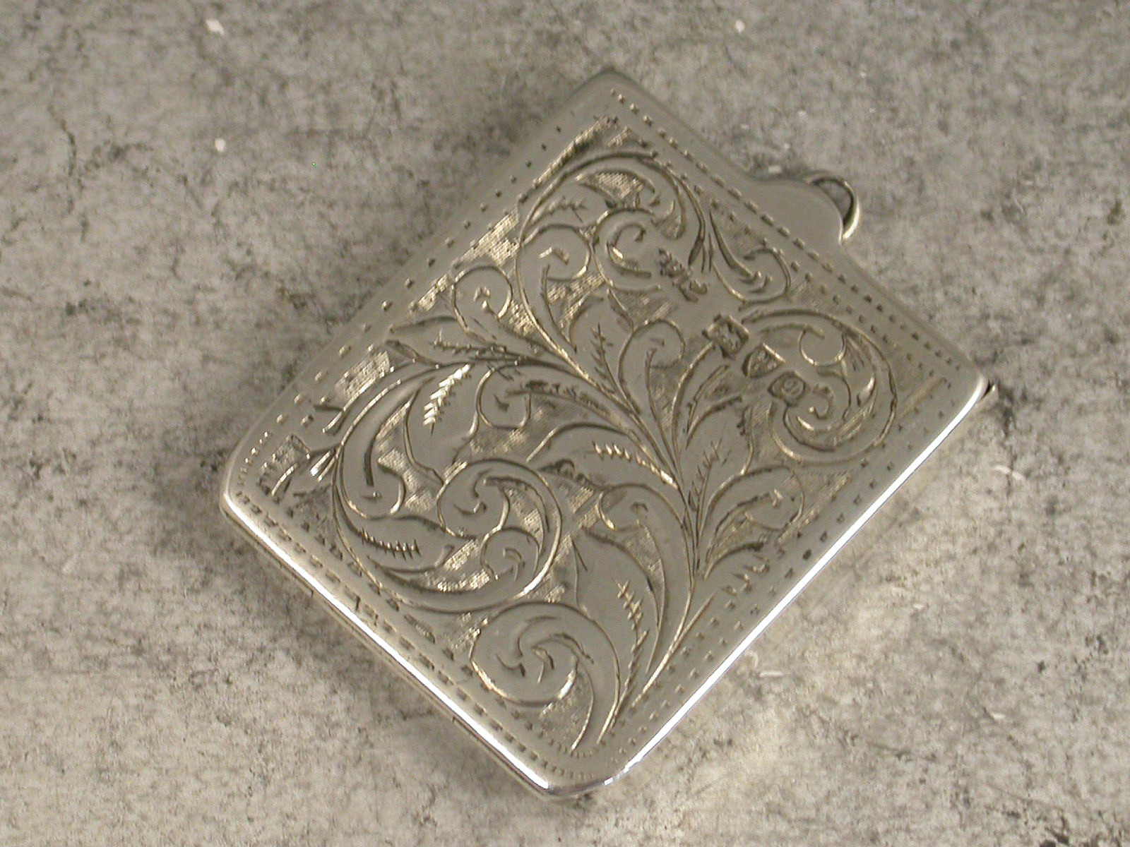 Edwardian Antique Silver Foliate Scroll Engraved Stamp Case