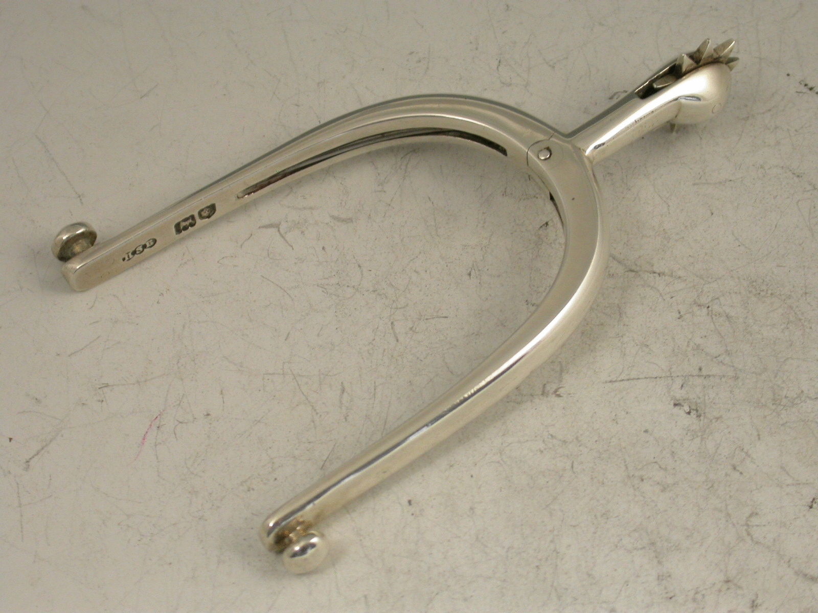 A pair of Edwardian novelty silver Sugar Tongs formed as a Spur with sprung closing mechanism and revolving spiked wheel.