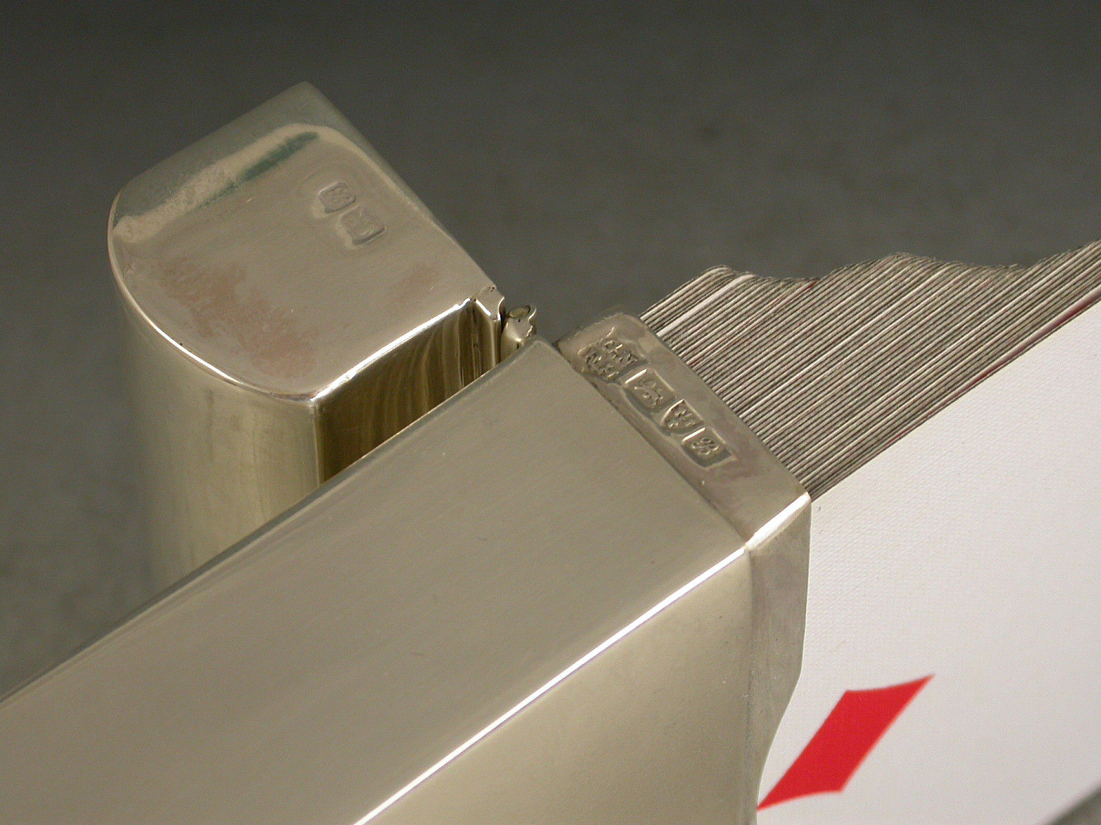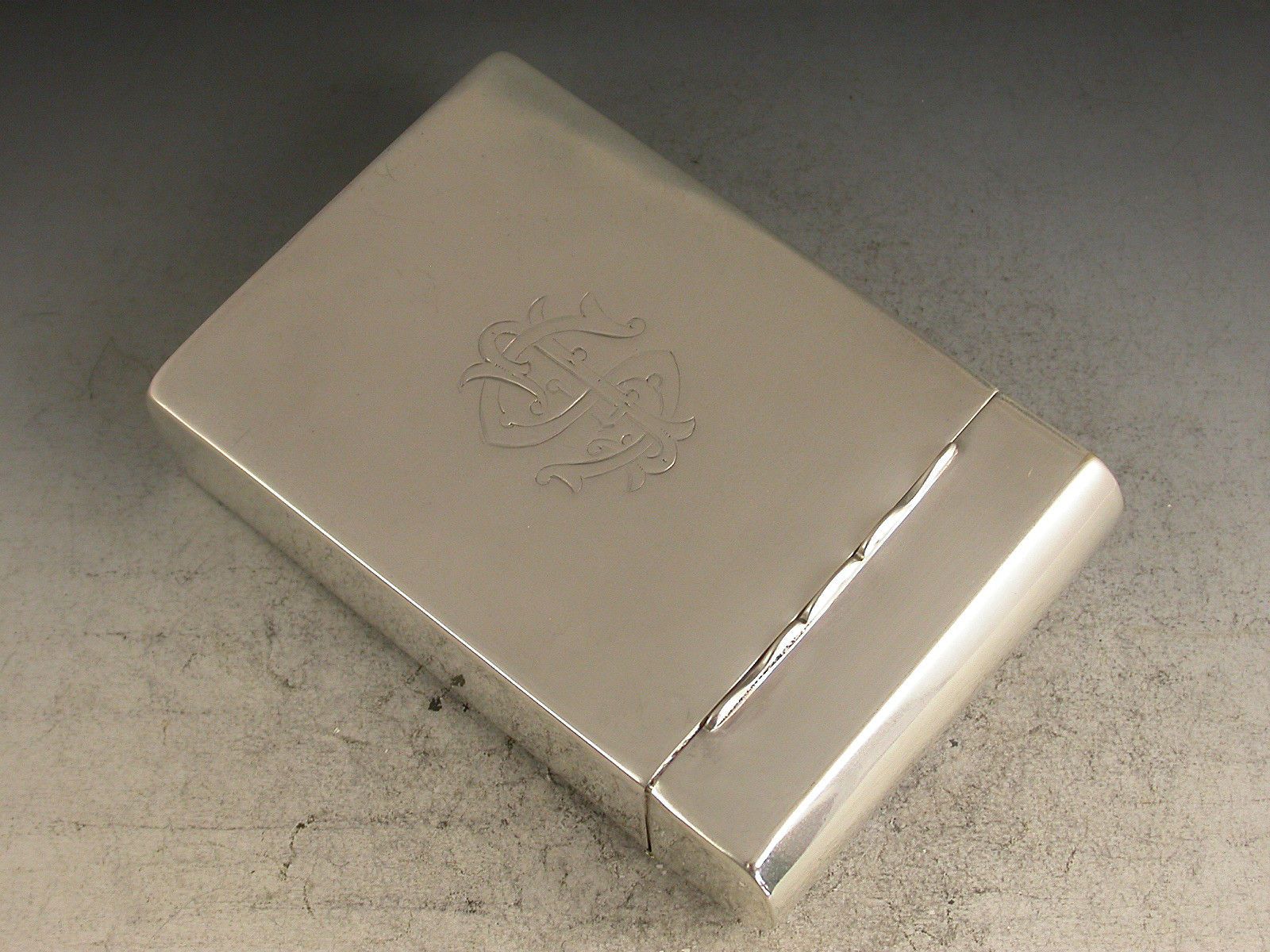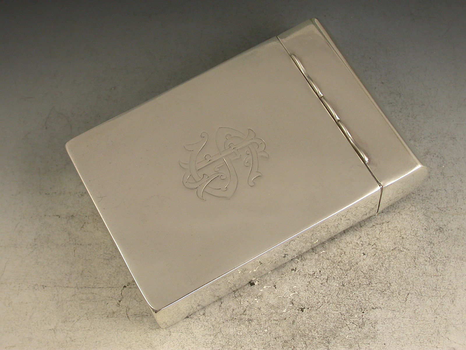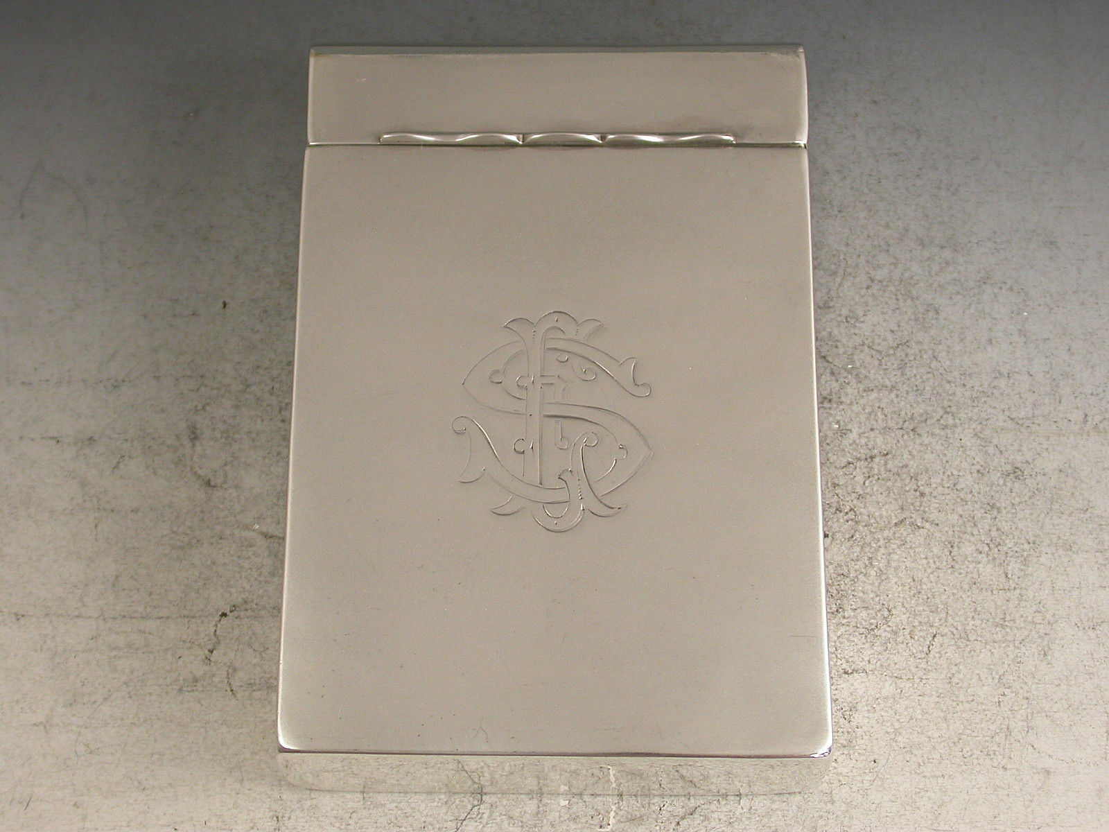 A good Edwardian silver Playing Cards Box of rounded rectangular form with hinged domed lid and raised thumb-piece, the face engraved with contemporary initials.