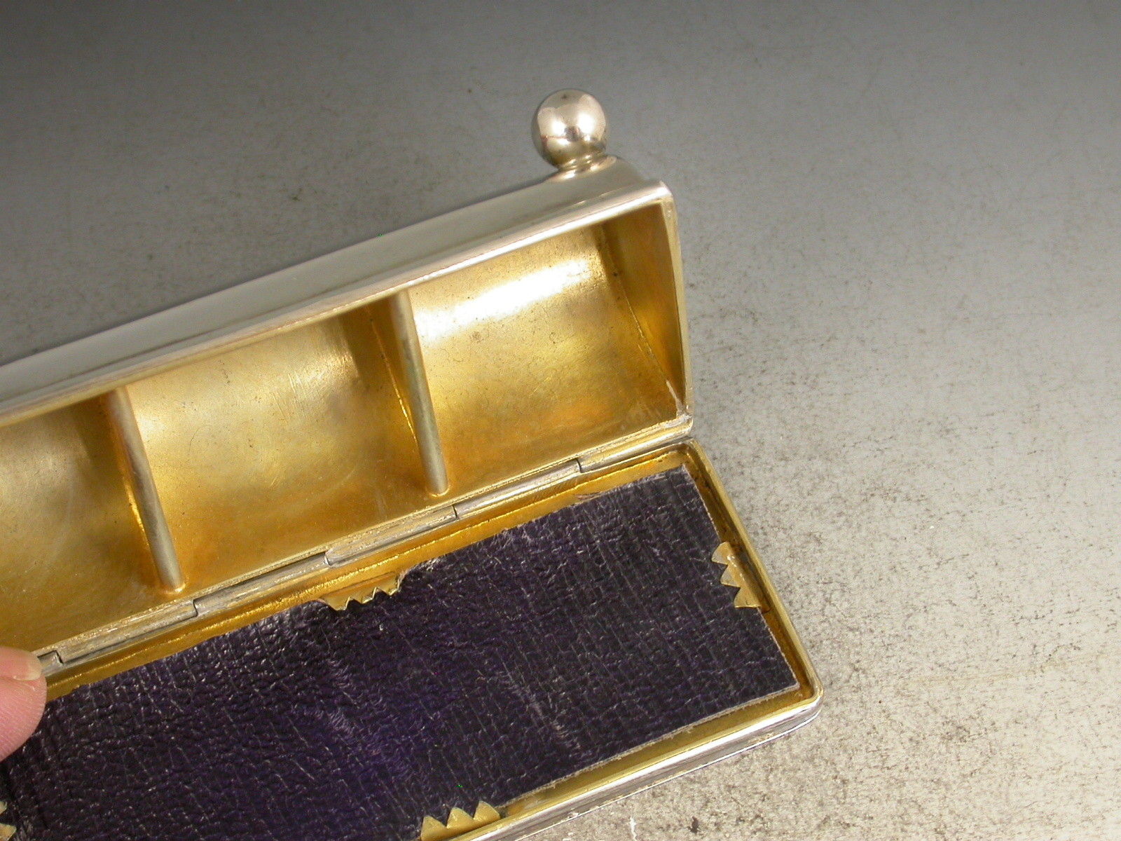 Edwardian Antique Silver Trough Shape Triple Compartment Stamp Box