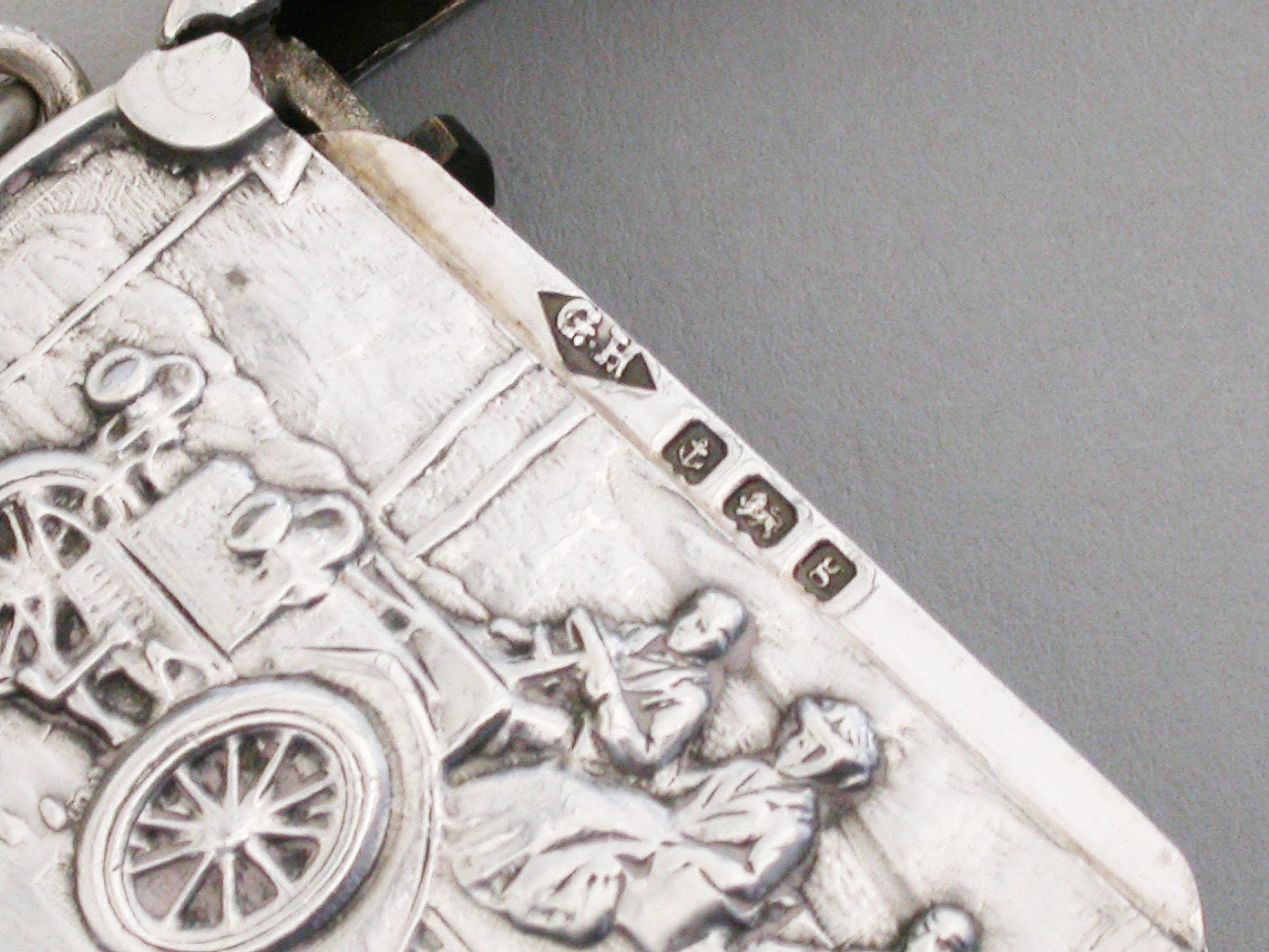 Edwardian Circular Silver Vesta Case - Vintage Car
