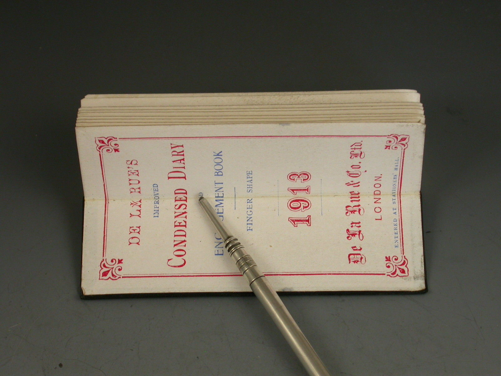 Edwardian De La Rue's Condensed Diary with Silver Case and Propelling Pencil